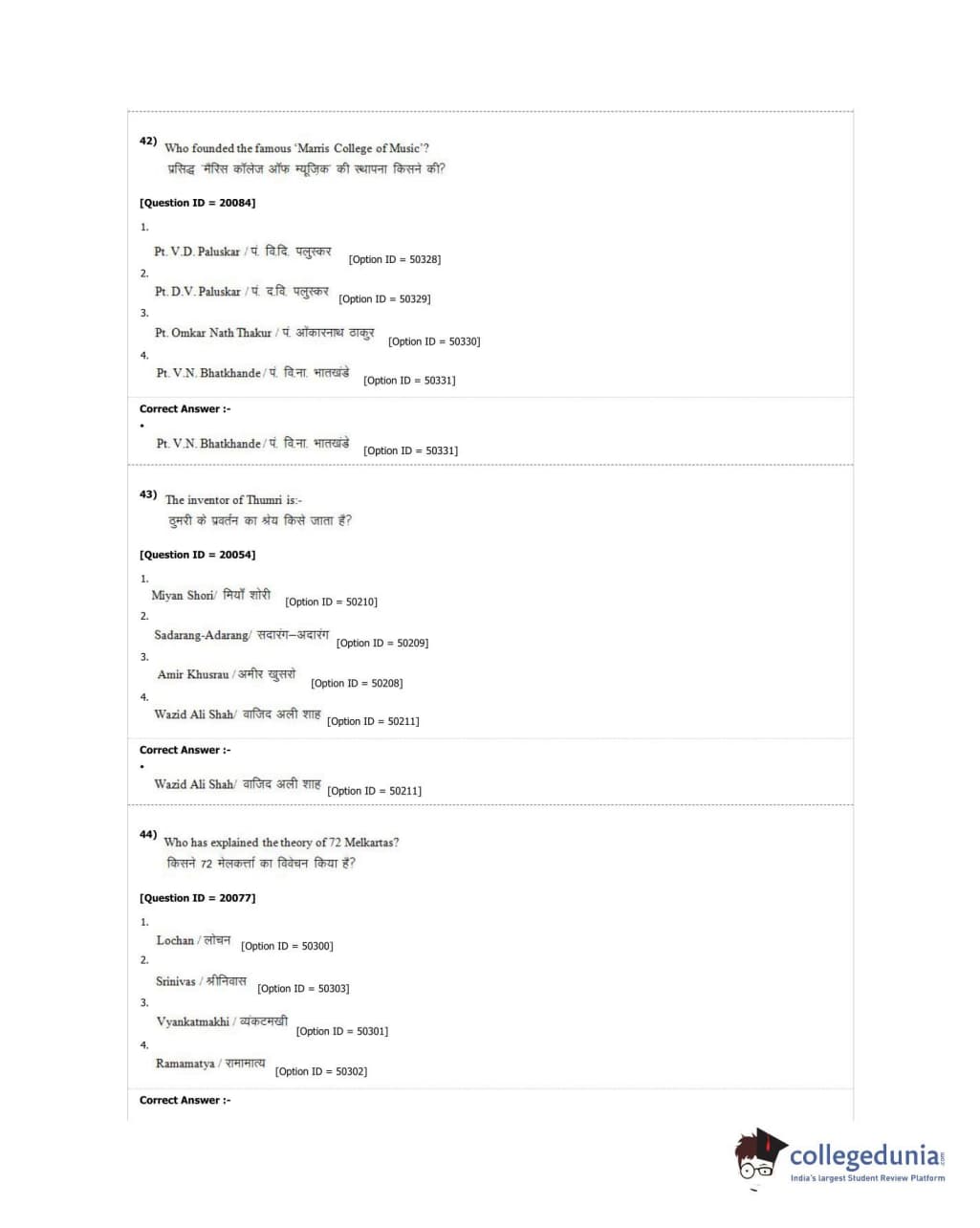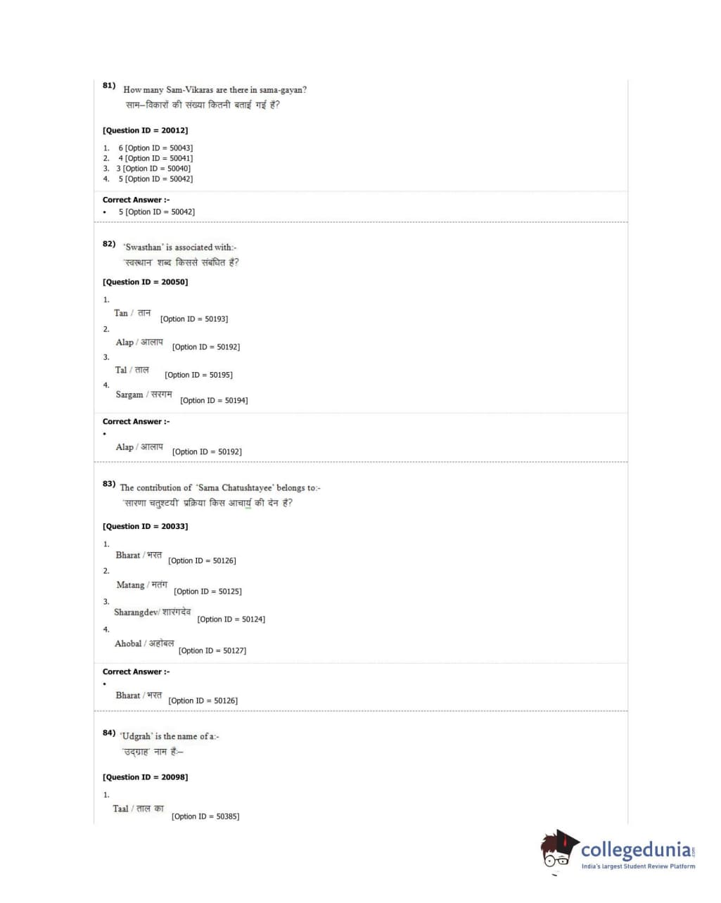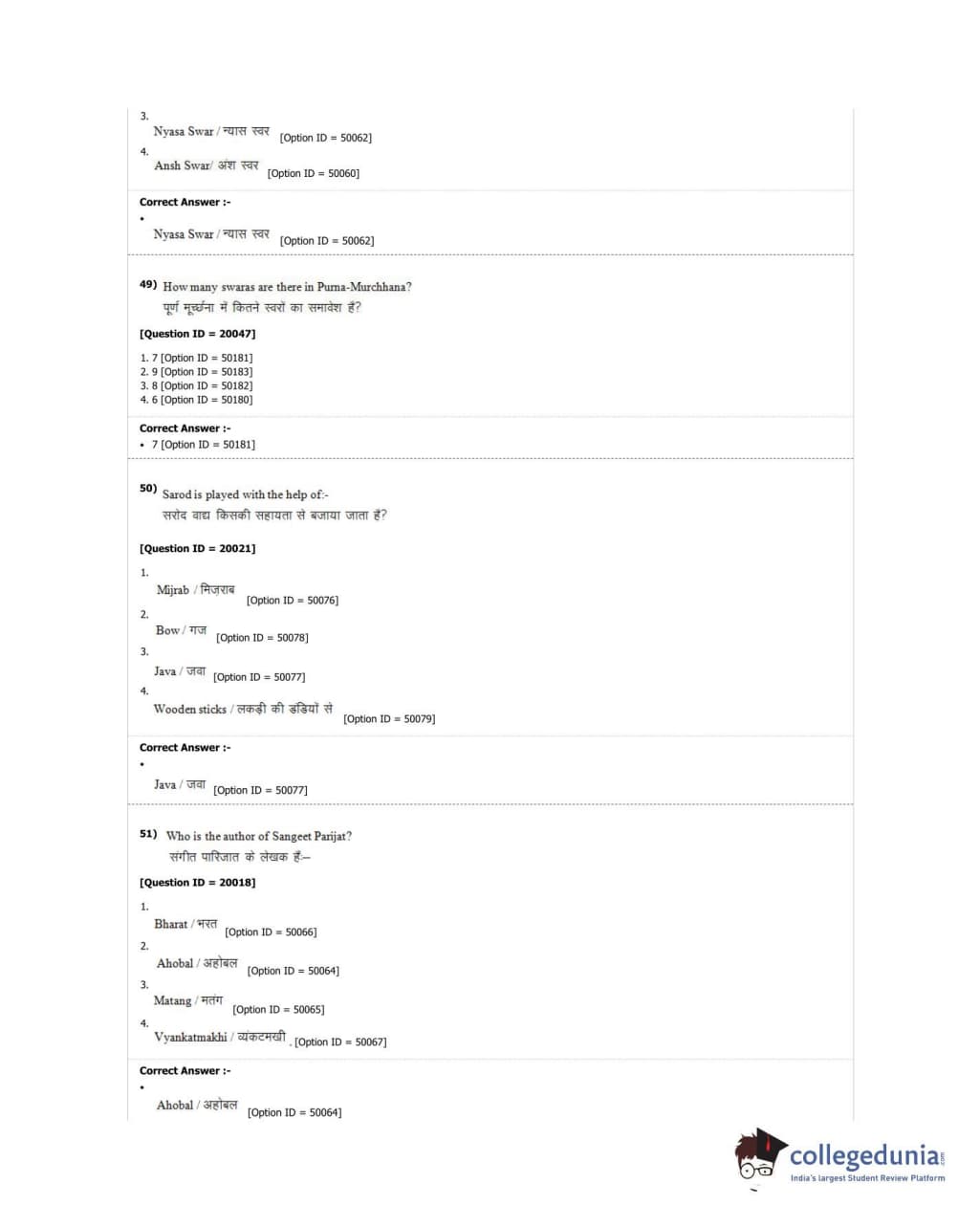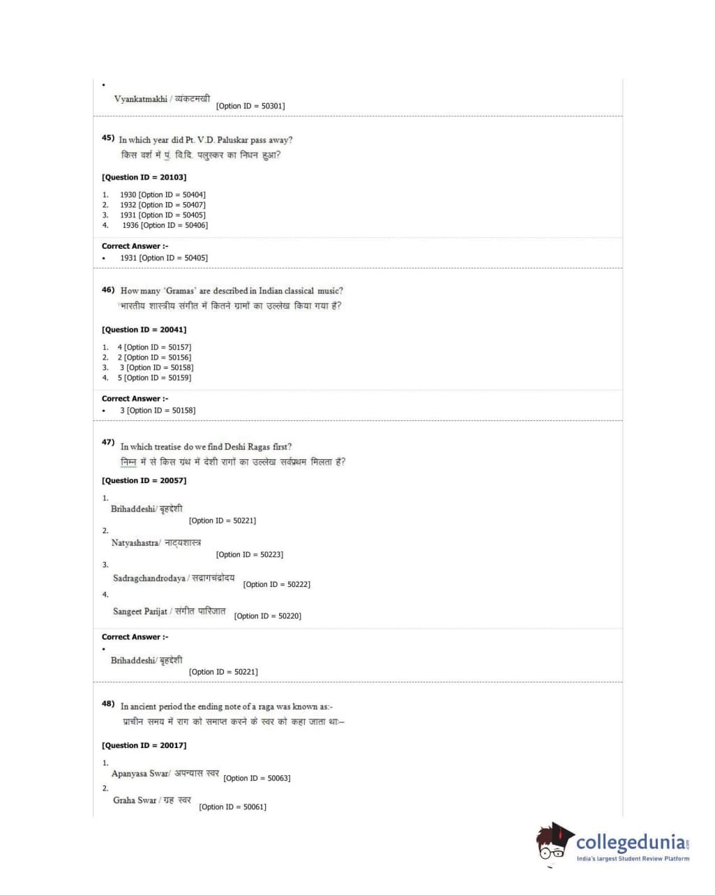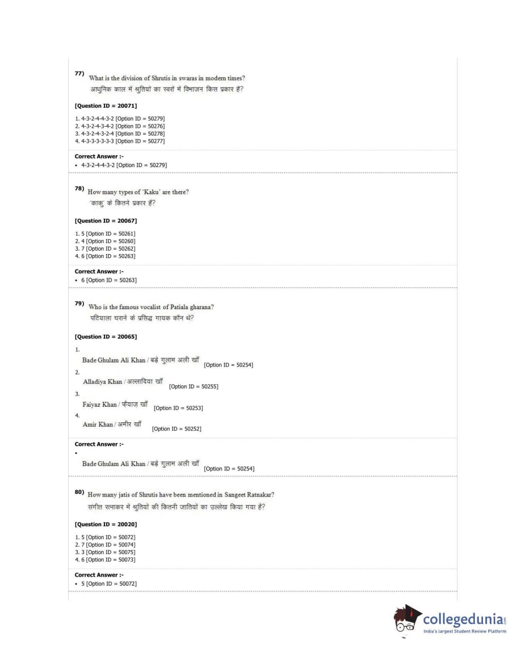 DUET 2018 M.A. Hindustani Music Question Paper with Answer Key PDF Shift 2