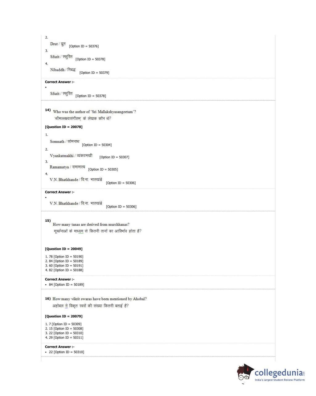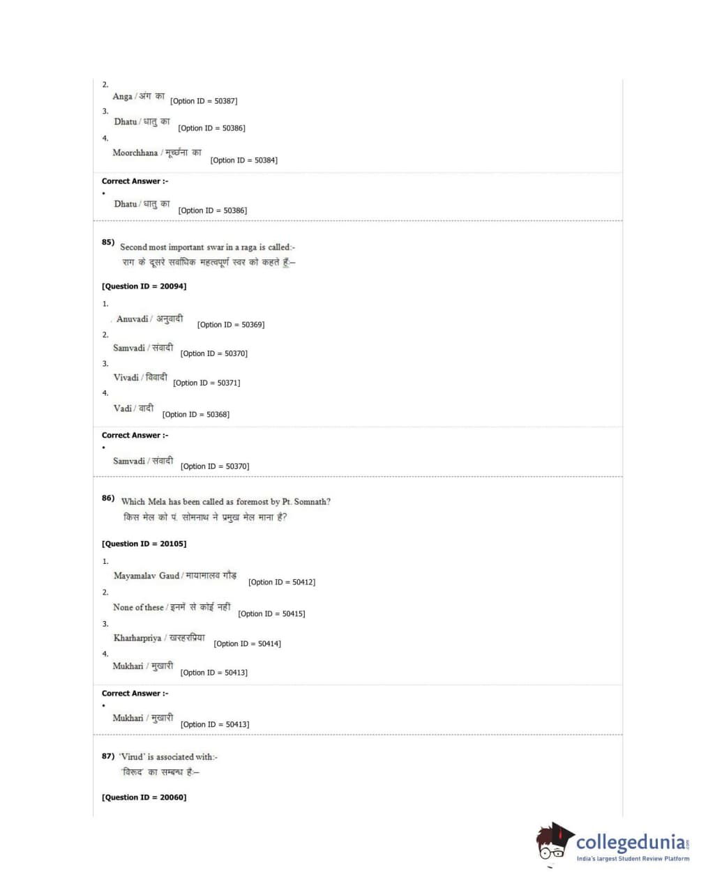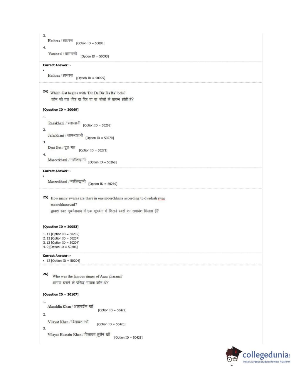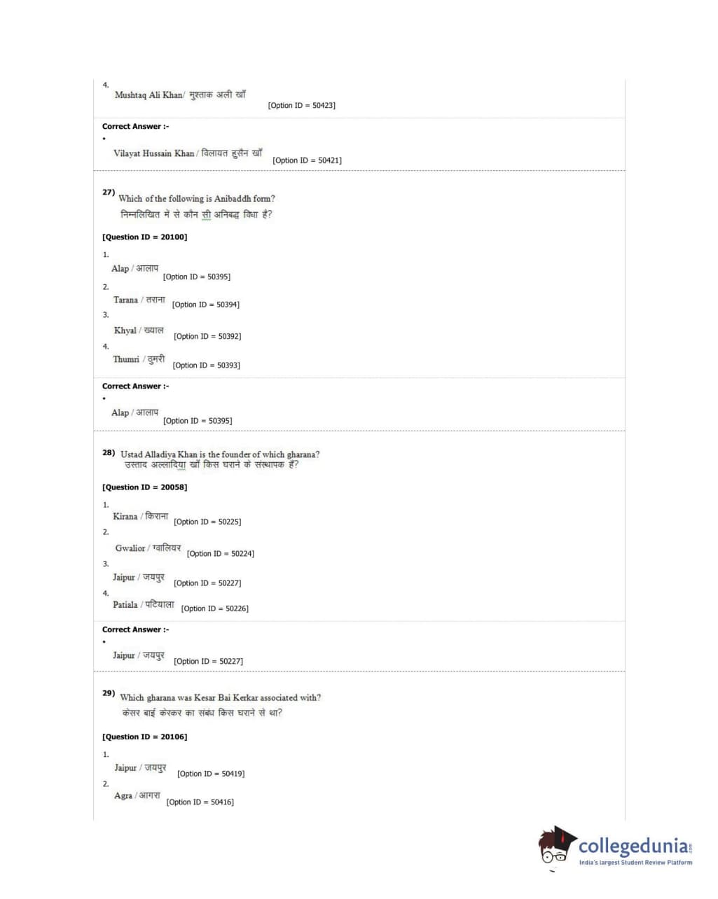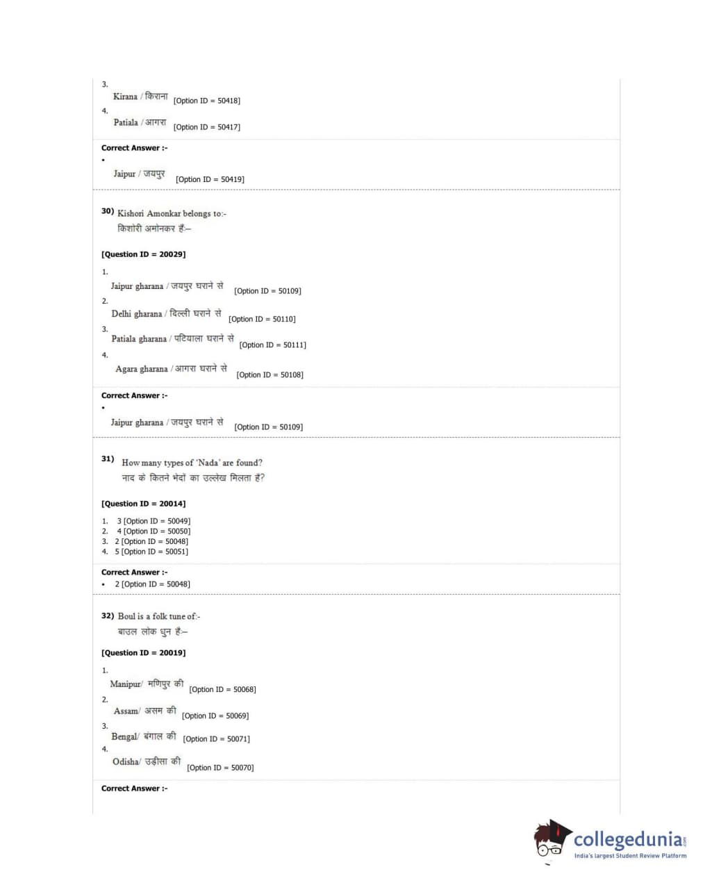 DUET 2018 M.A. Hindustani Music Question Paper with Answer Key PDF Shift 2
