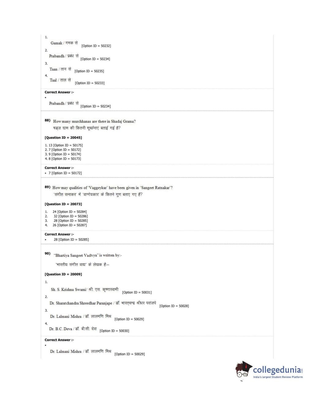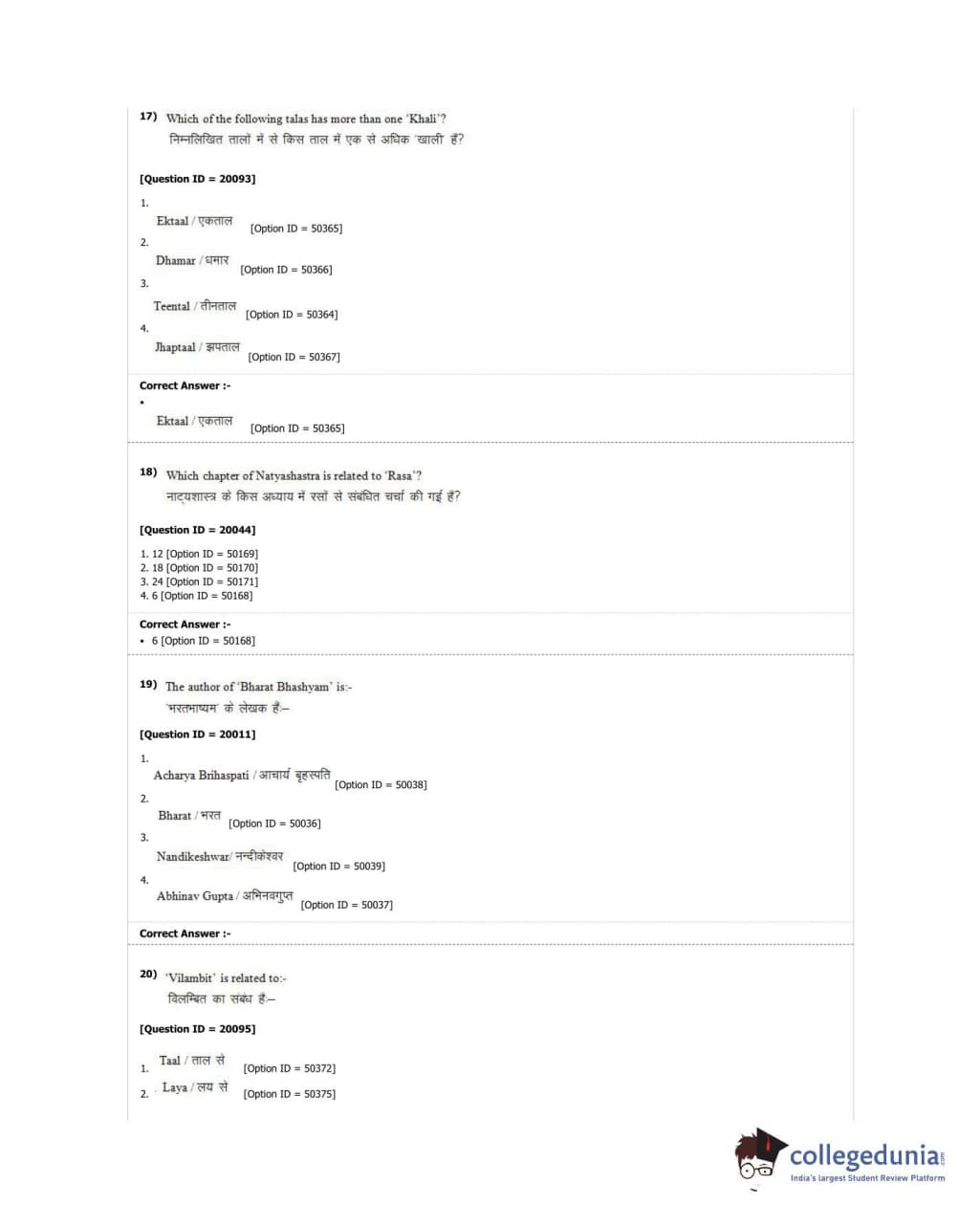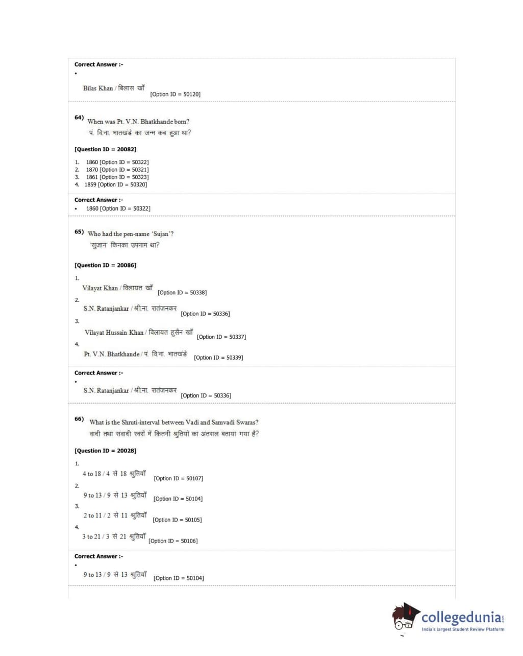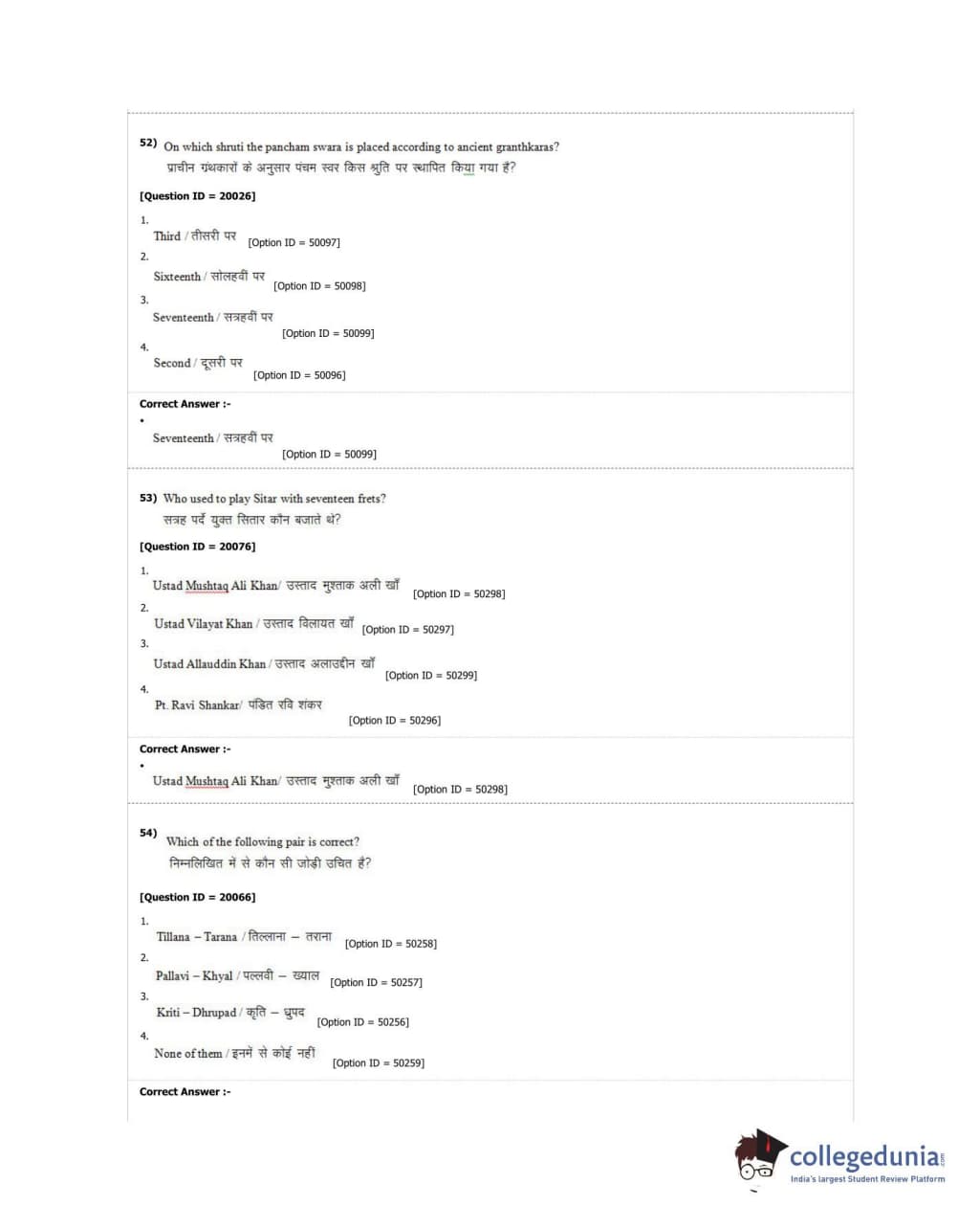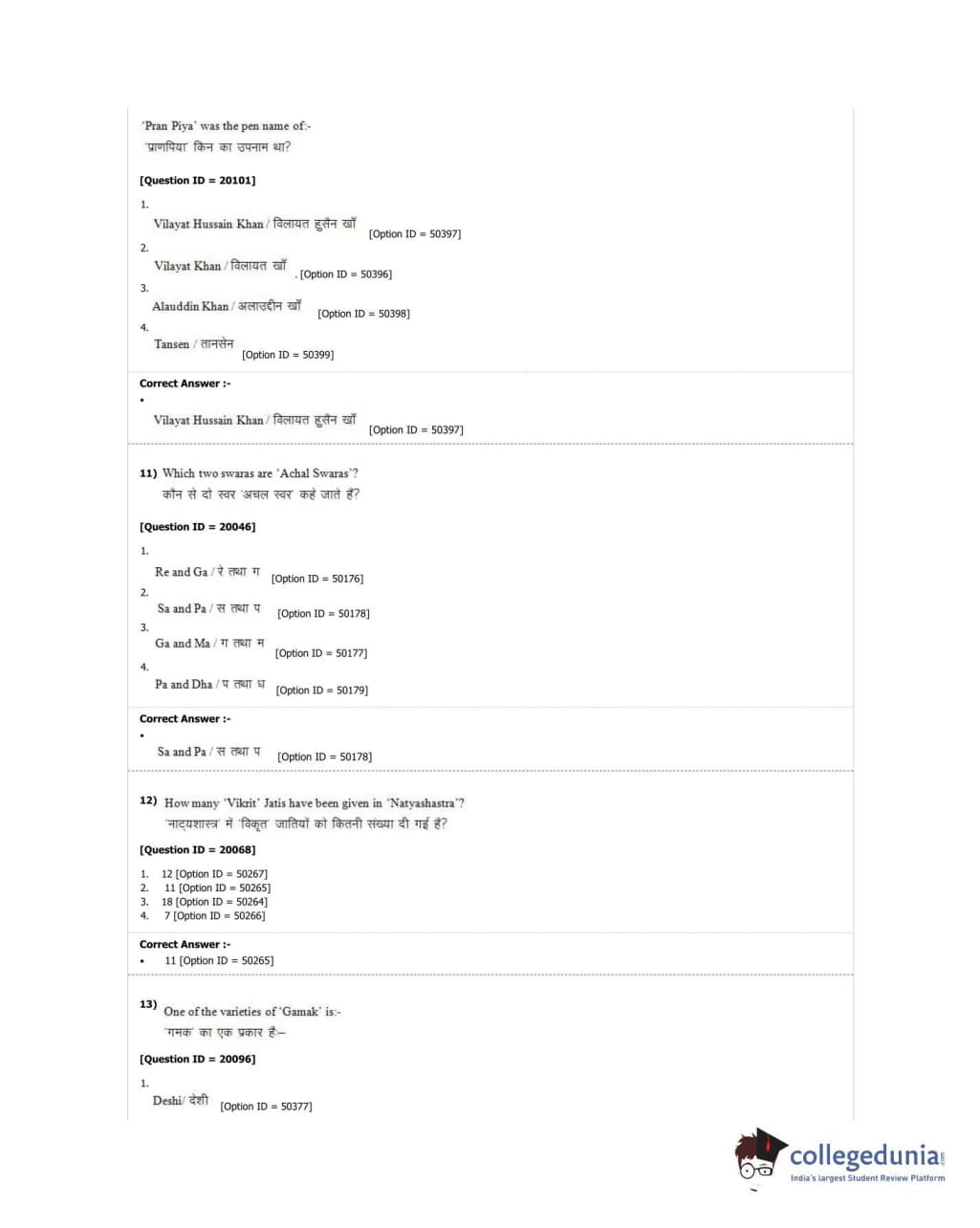 DUET 2018 M.A. Hindustani Music Question Paper with Answer Key PDF Shift 2