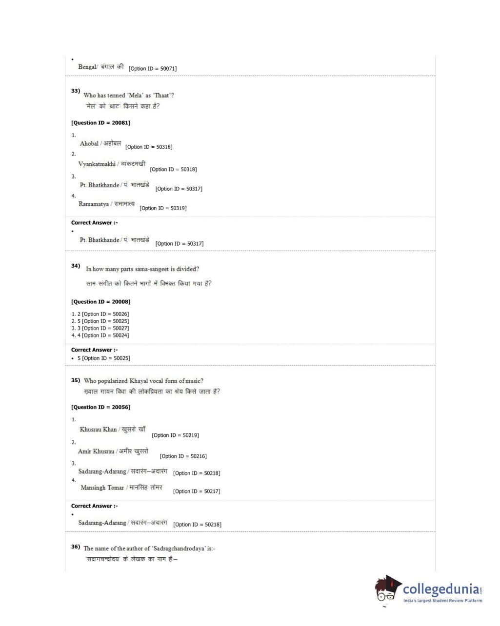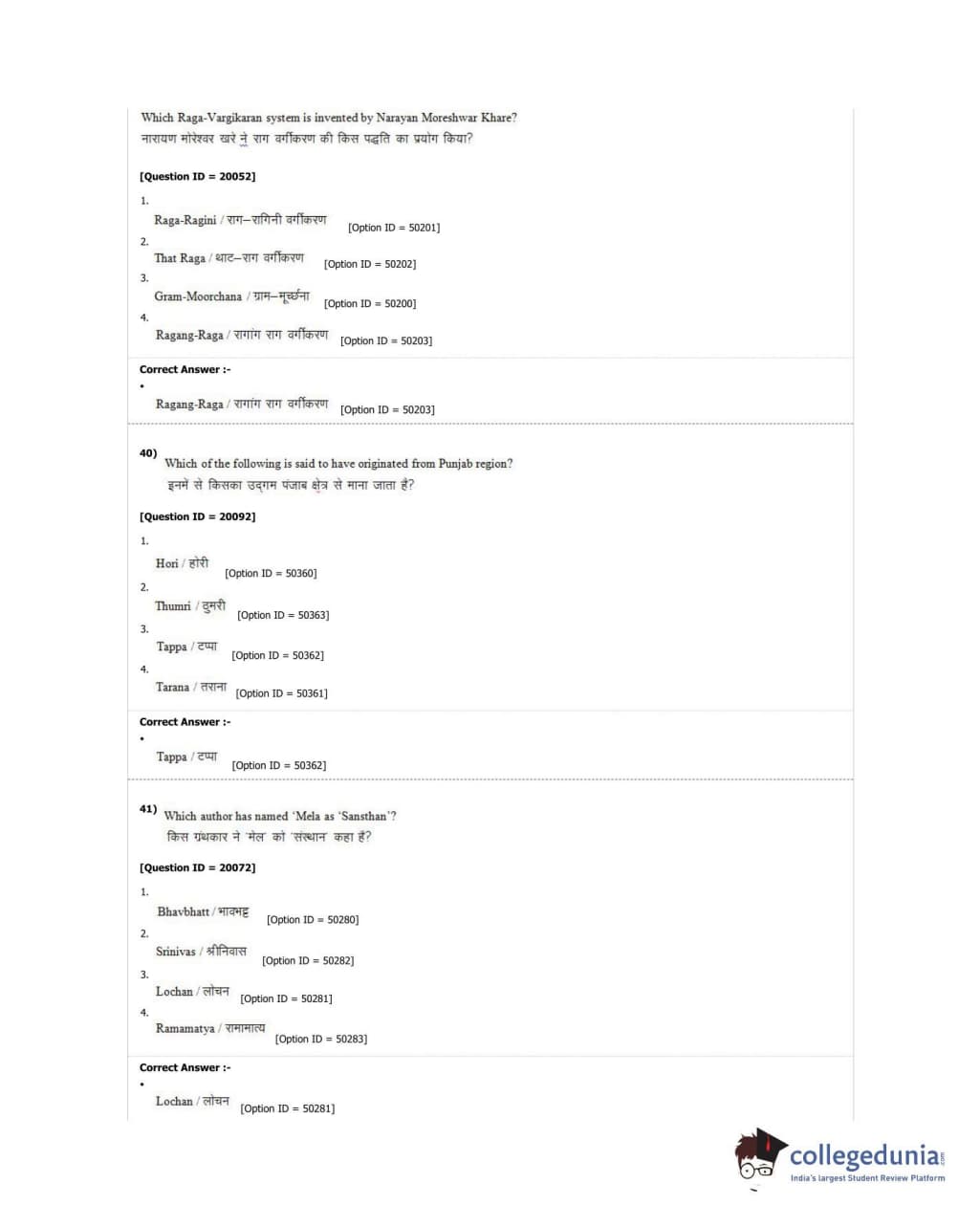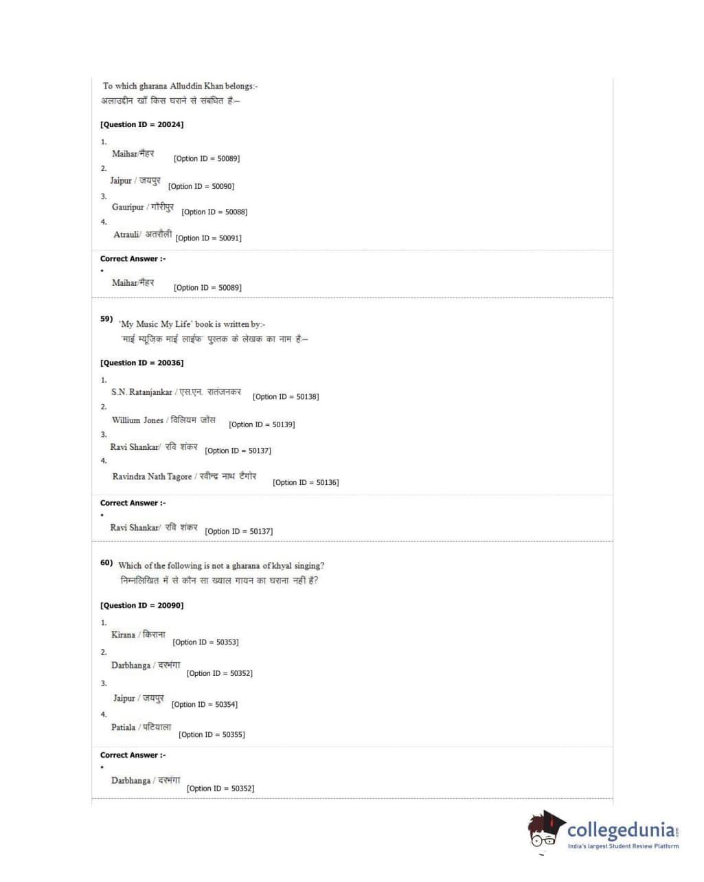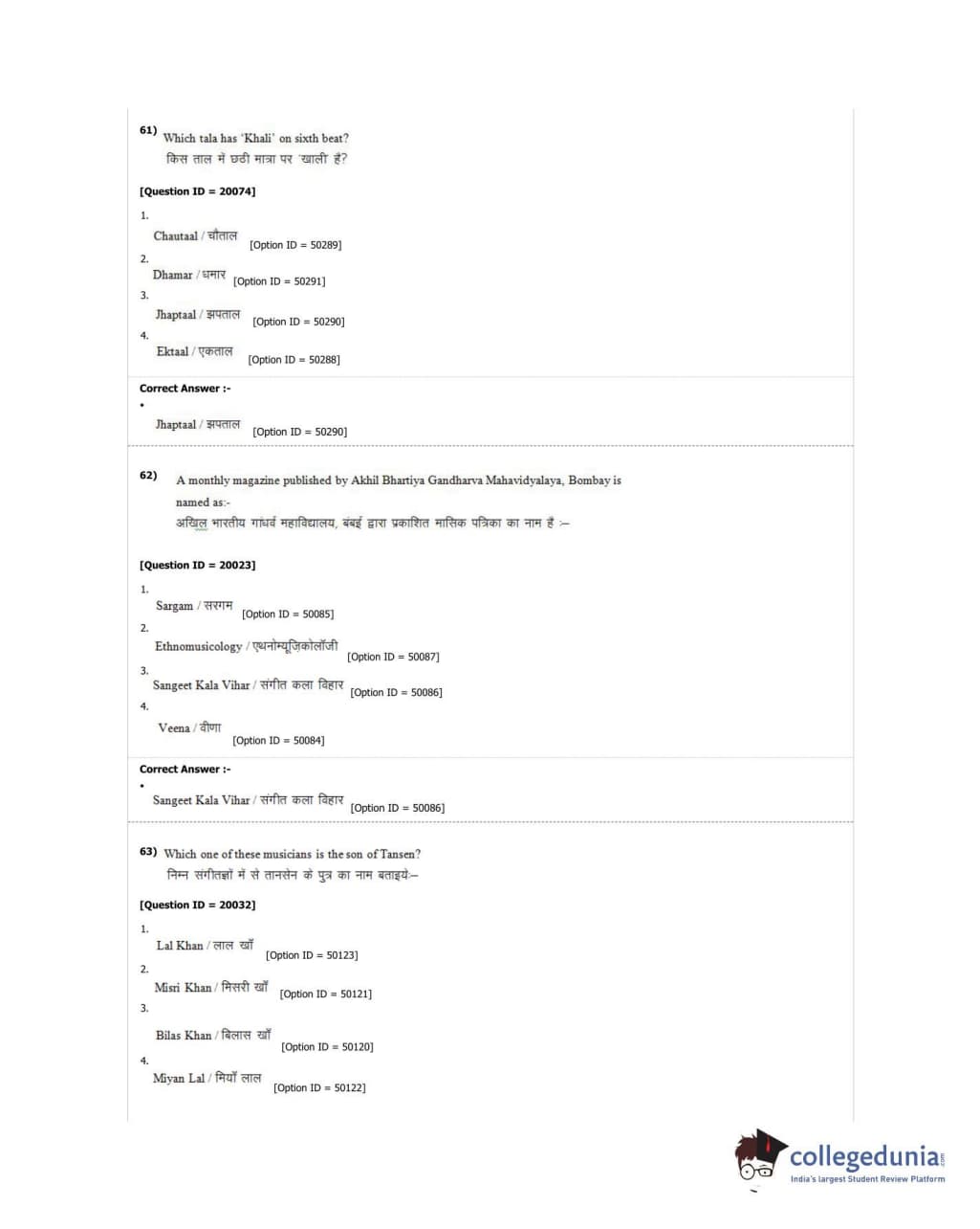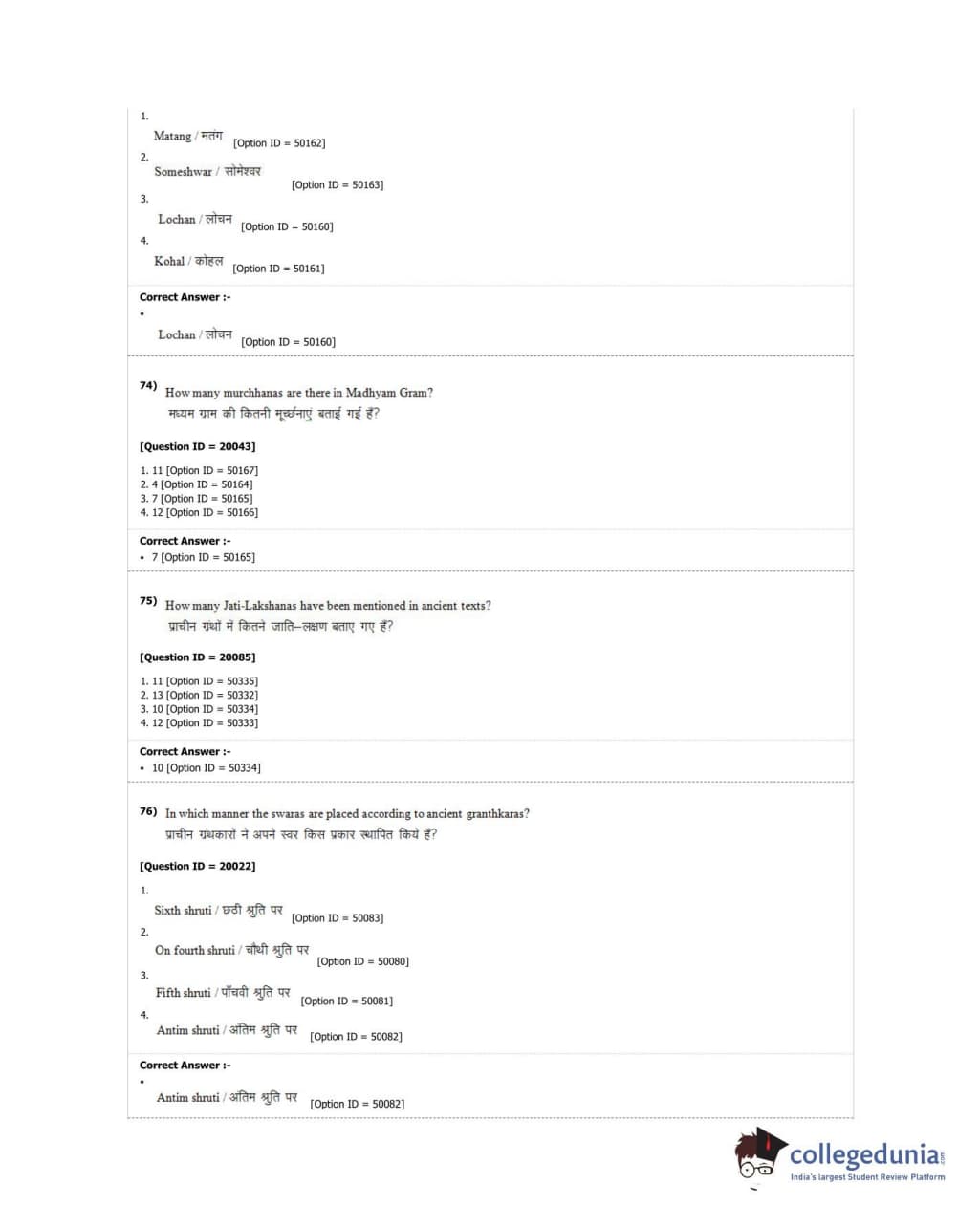 DUET 2018 M.A. Hindustani Music Question Paper with Answer Key PDF Shift 2