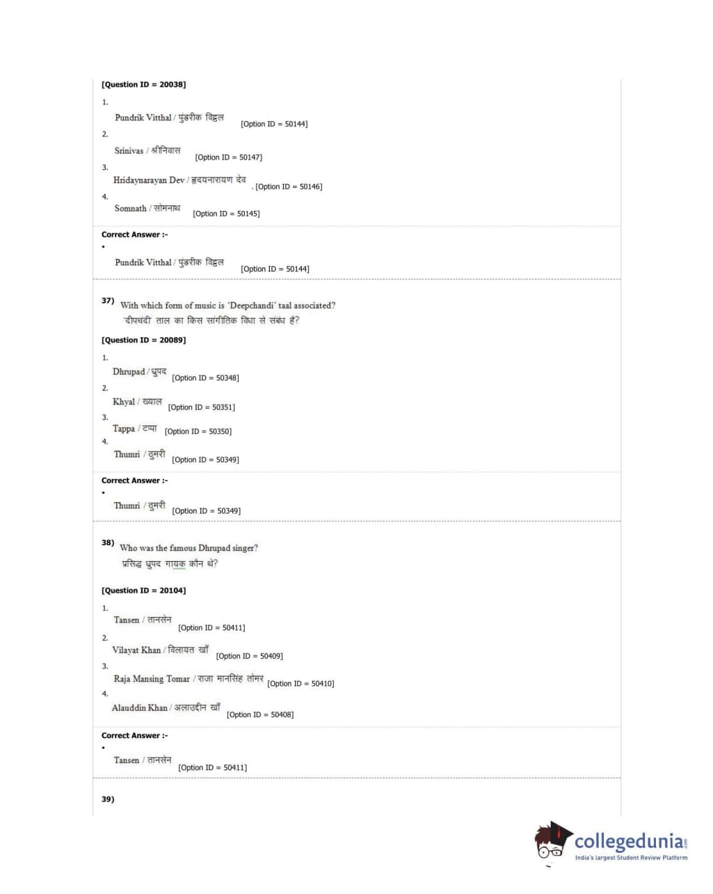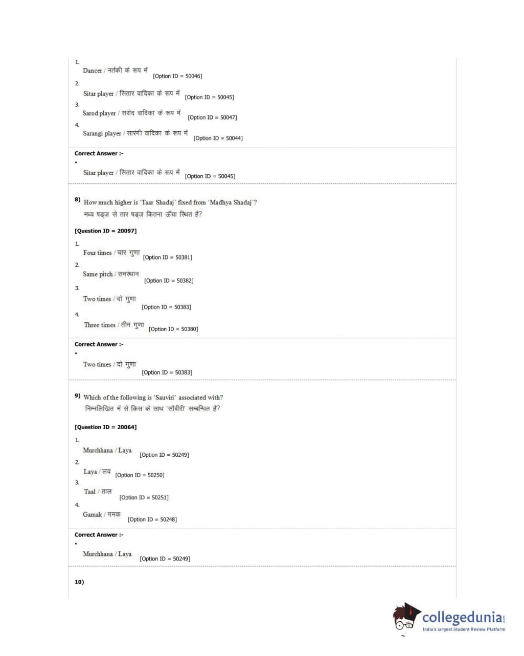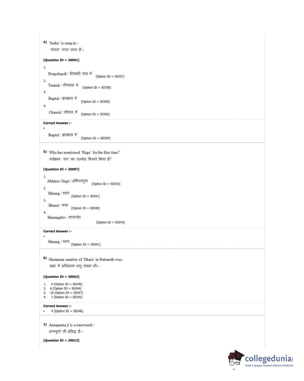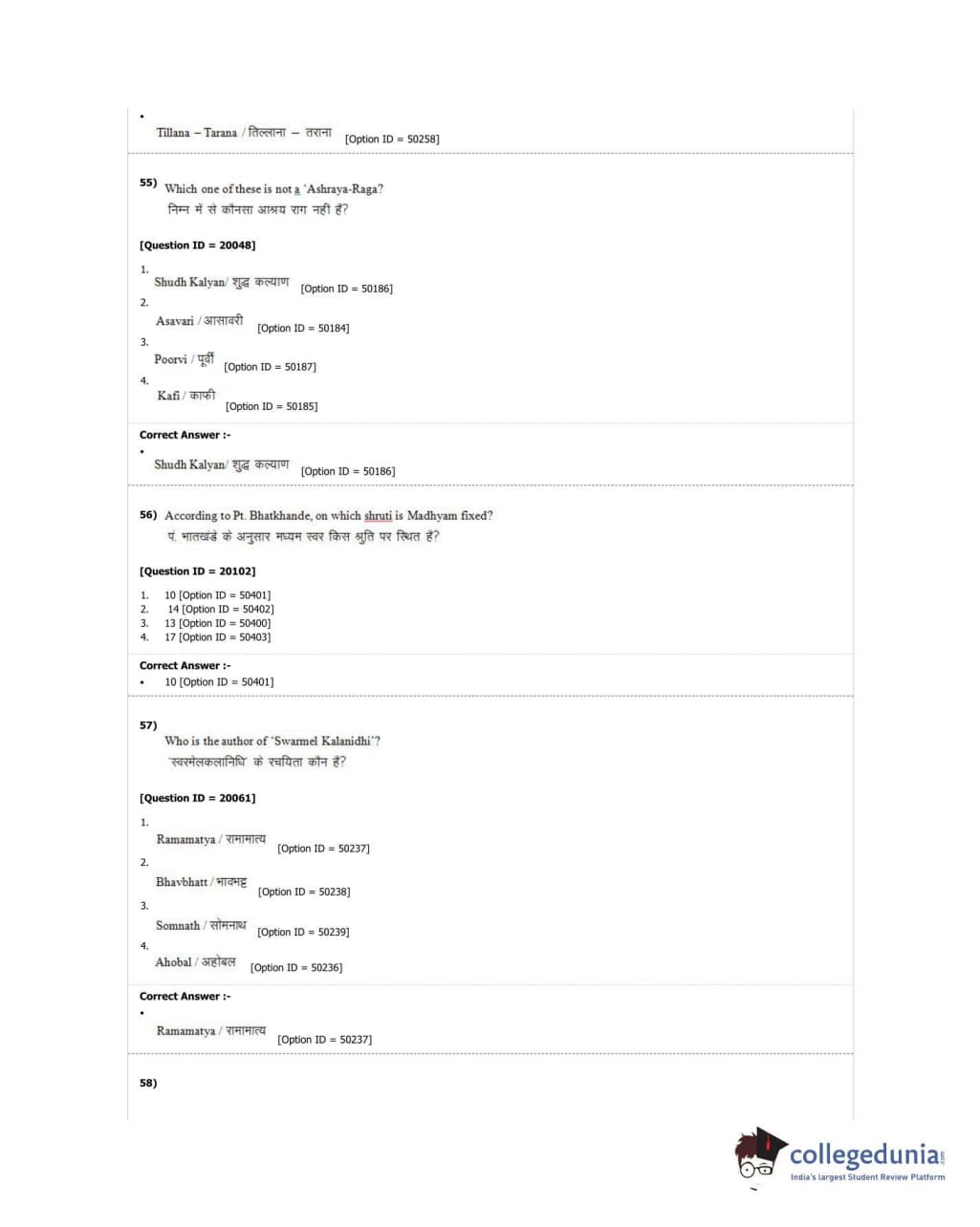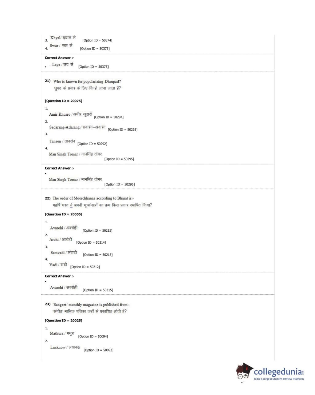 DUET 2018 M.A. Hindustani Music Question Paper with Answer Key PDF Shift 2