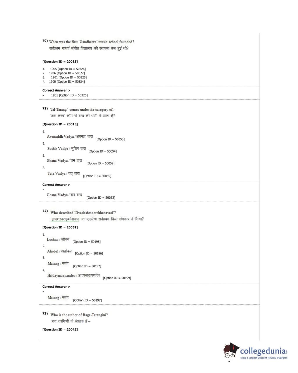 | DUET Subject | Question Paper with Answer Key PDF |