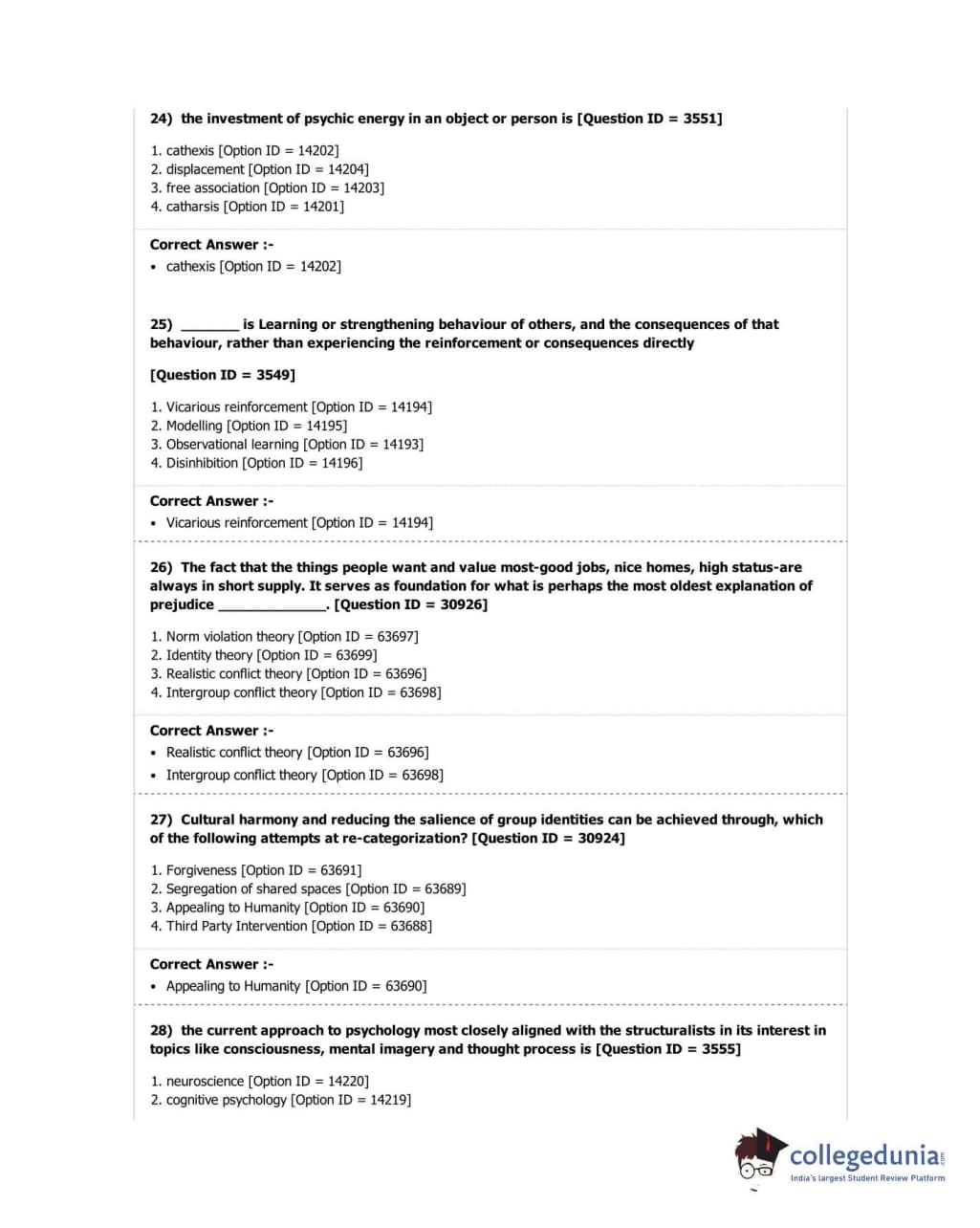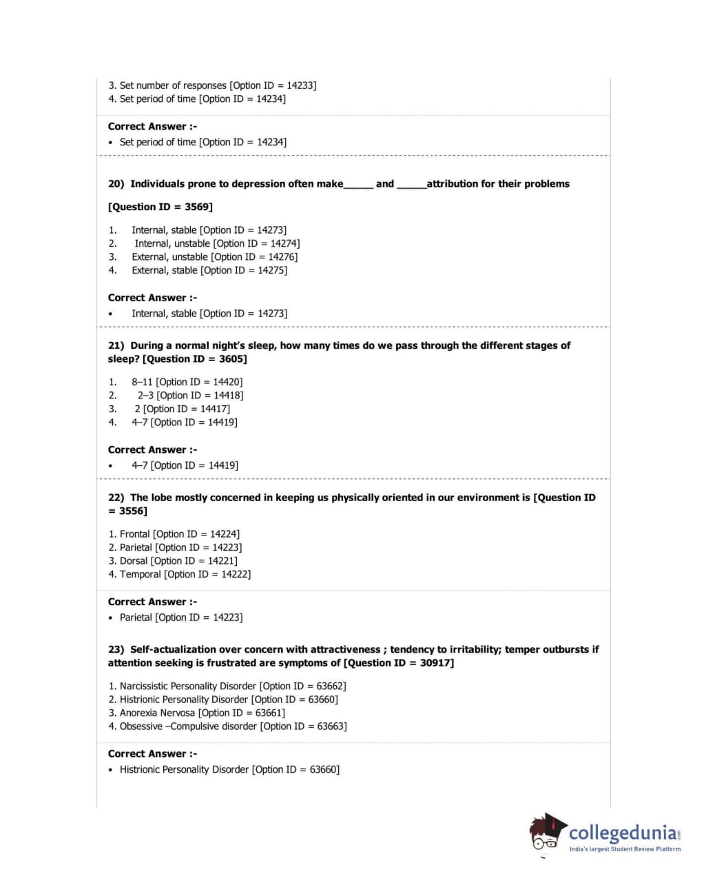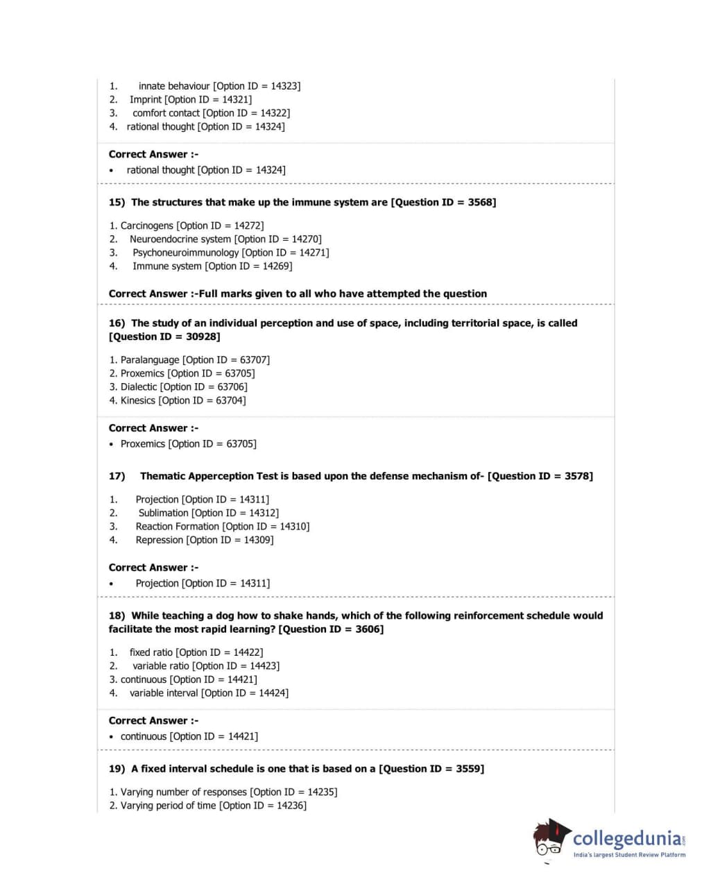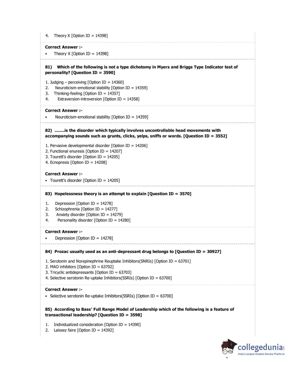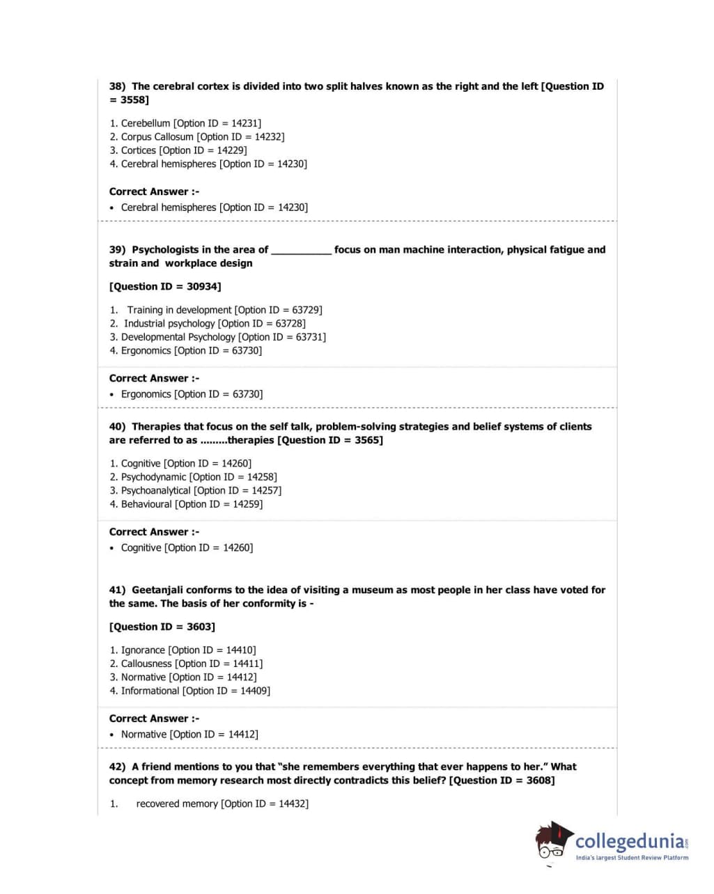 DUET 2018 M.A. in Psychology Question Paper with Answer Key PDF Shift 2