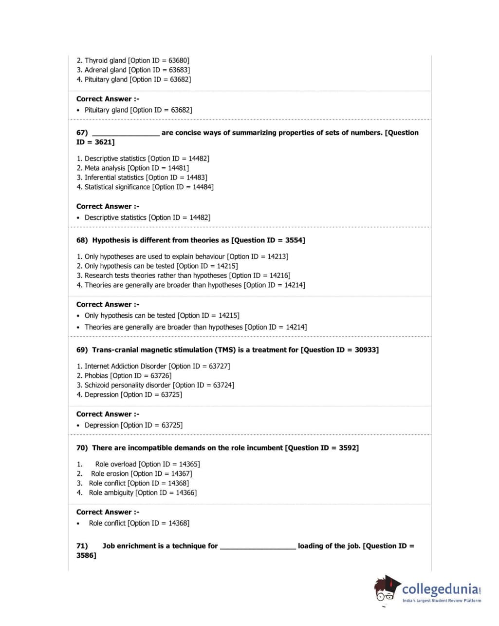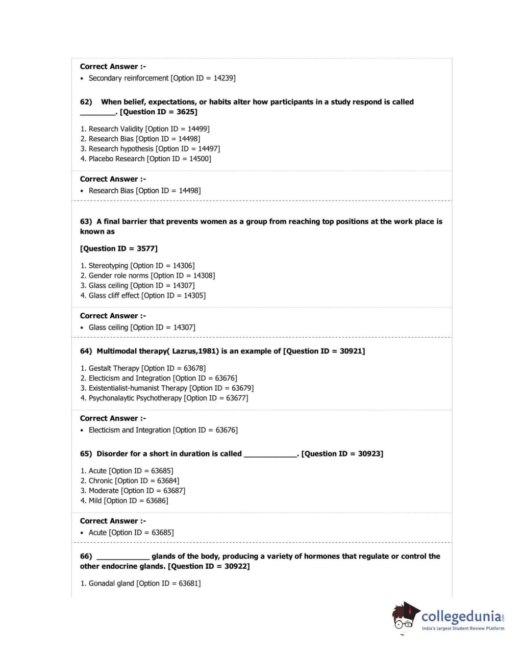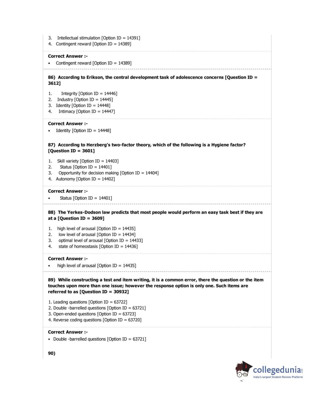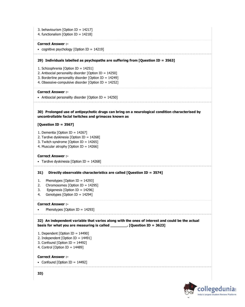 DUET 2018 M.A. in Psychology Question Paper with Answer Key PDF Shift 2
