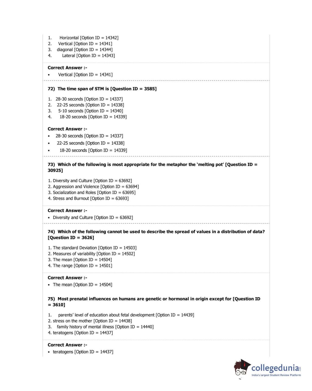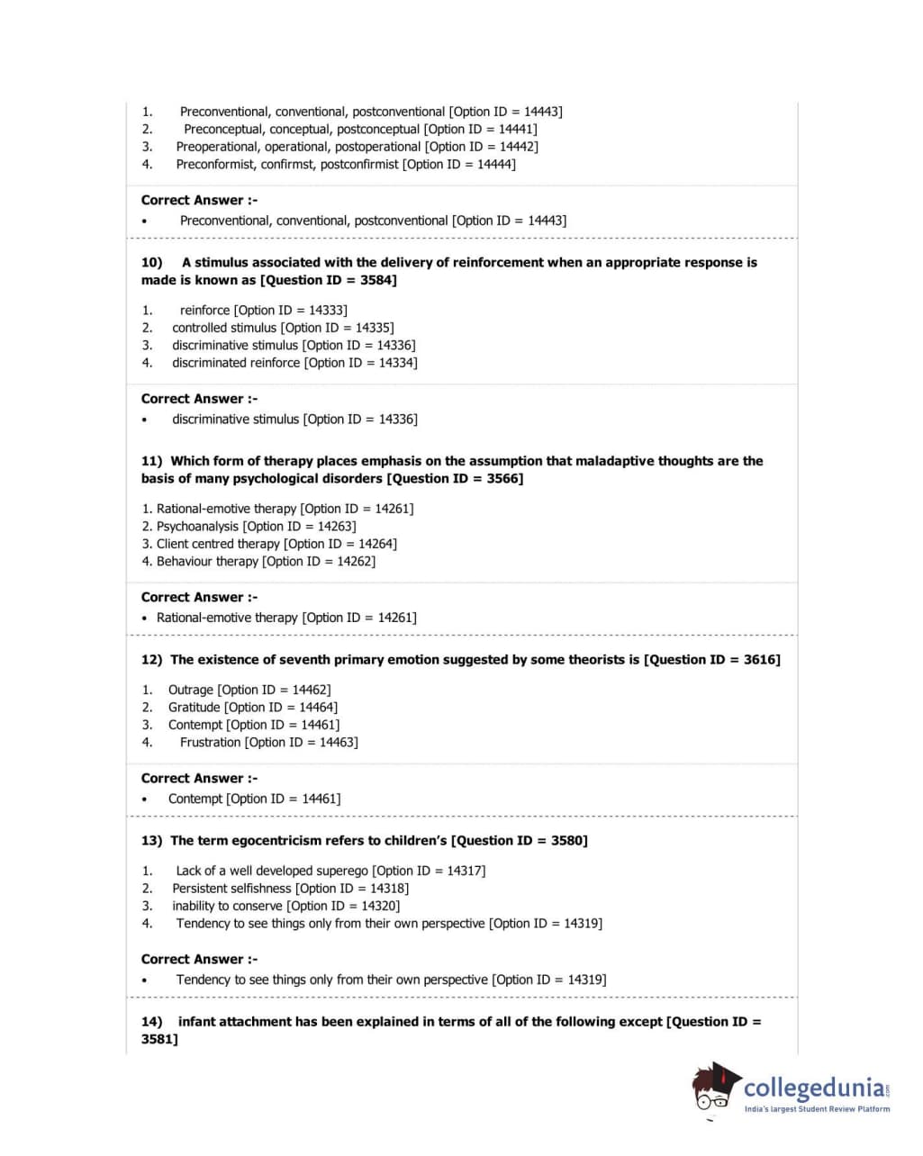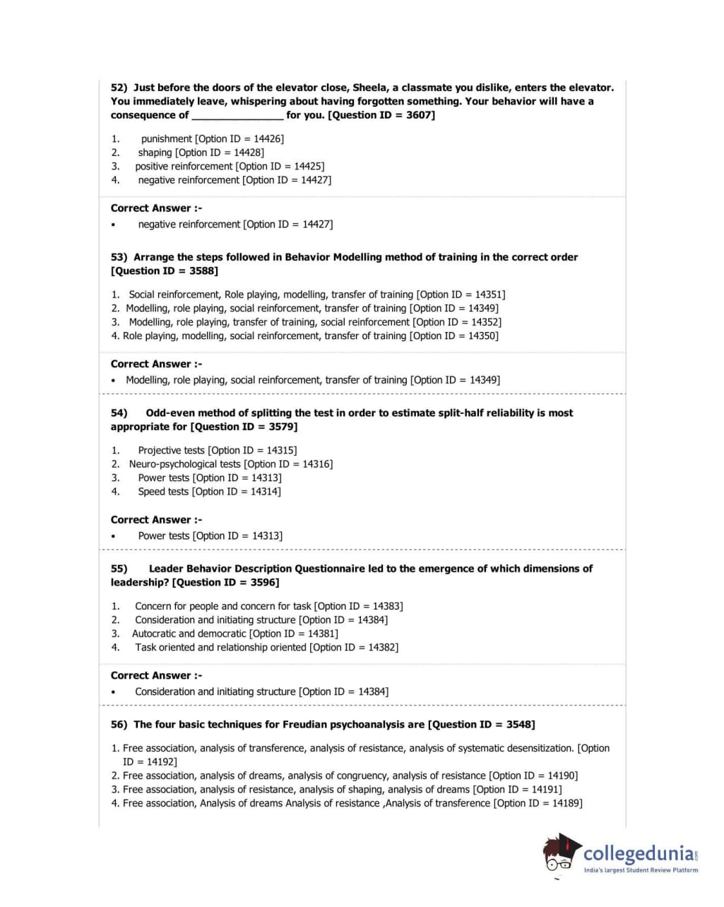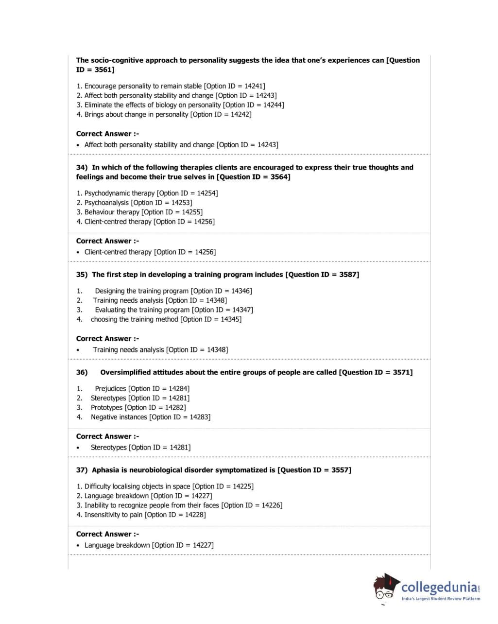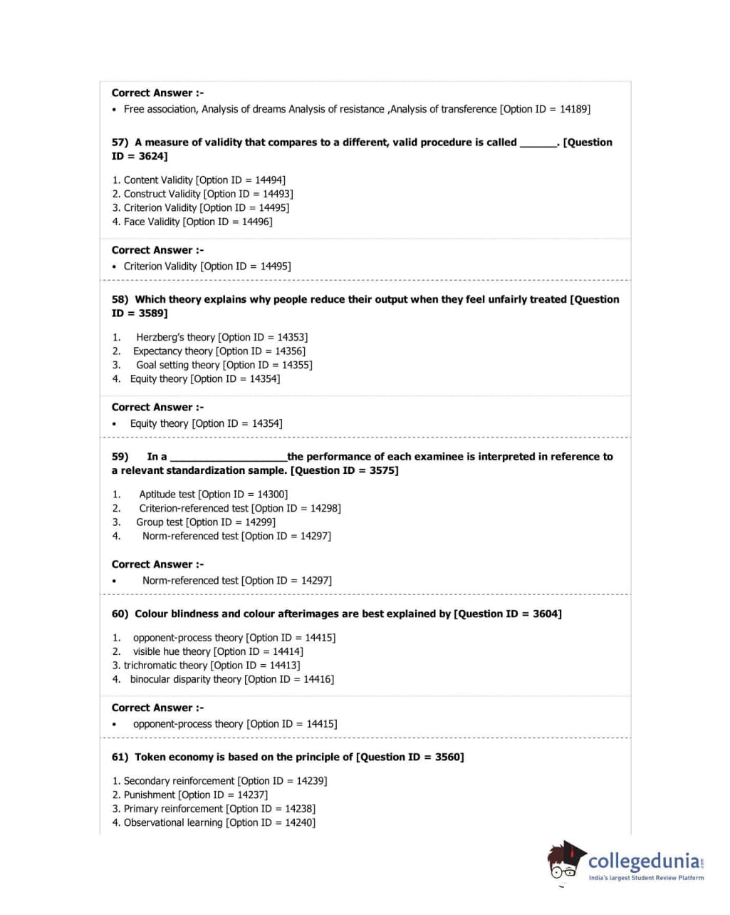 DUET 2018 M.A. in Psychology Question Paper with Answer Key PDF Shift 2