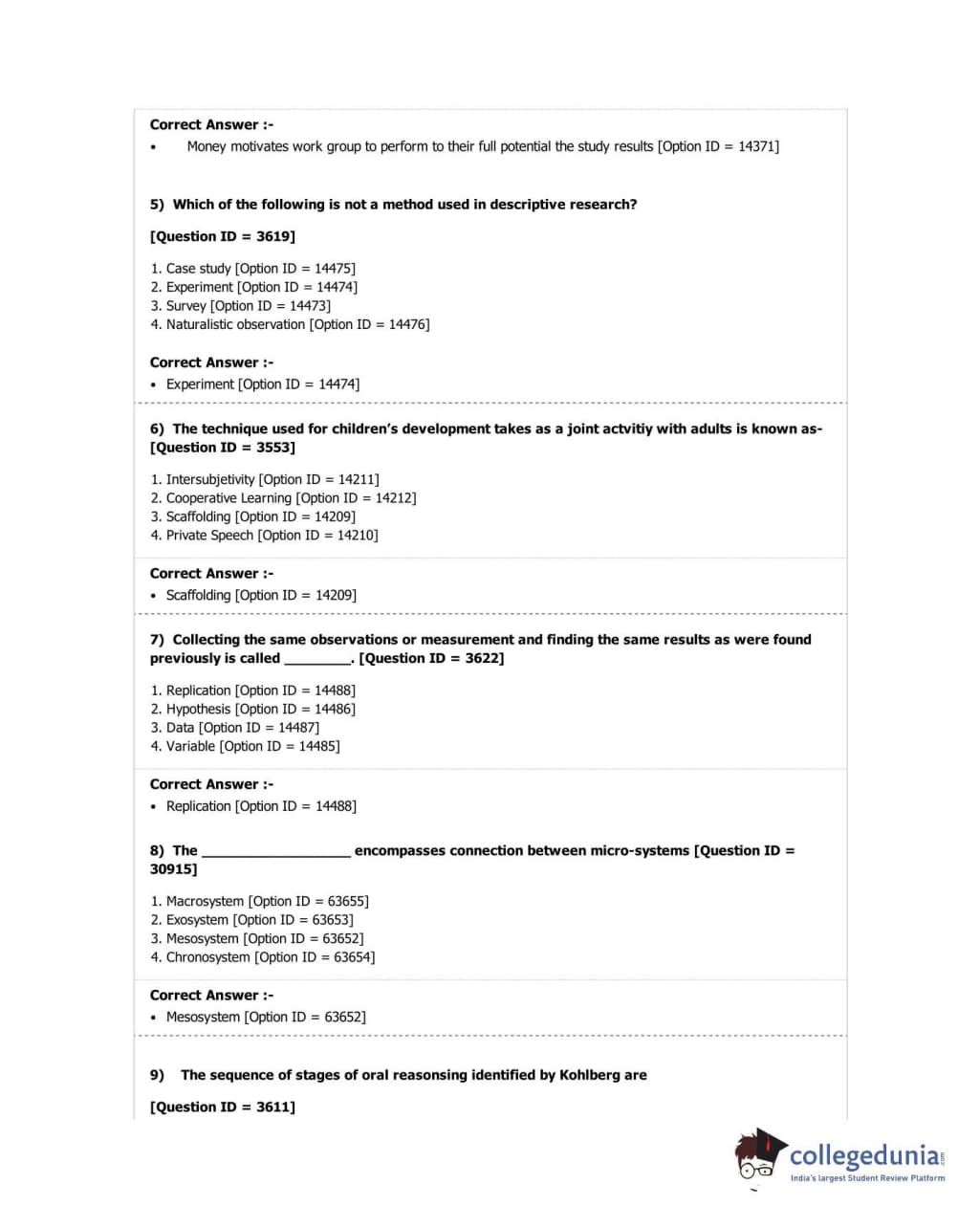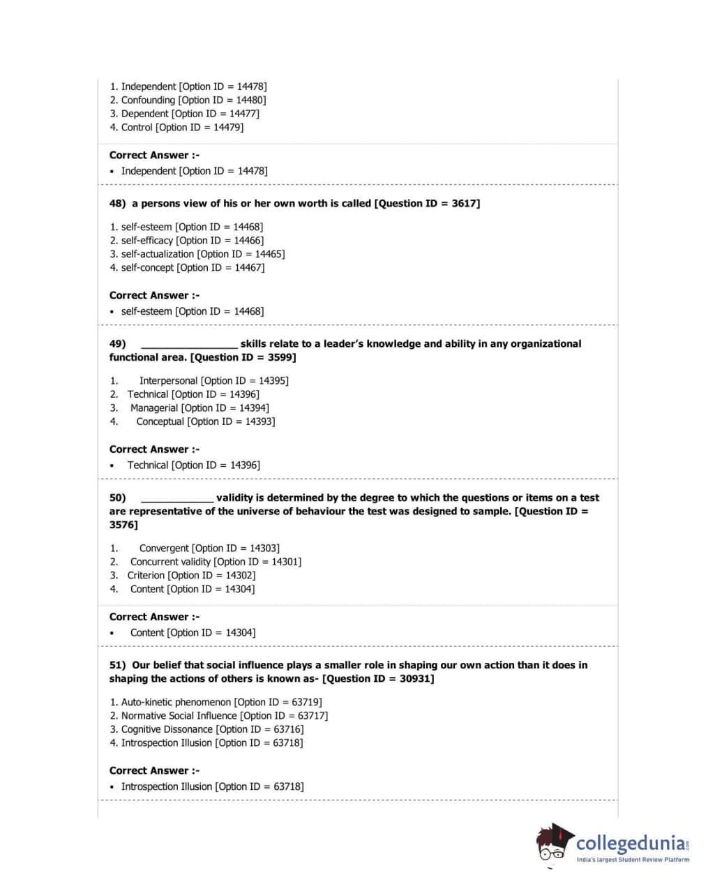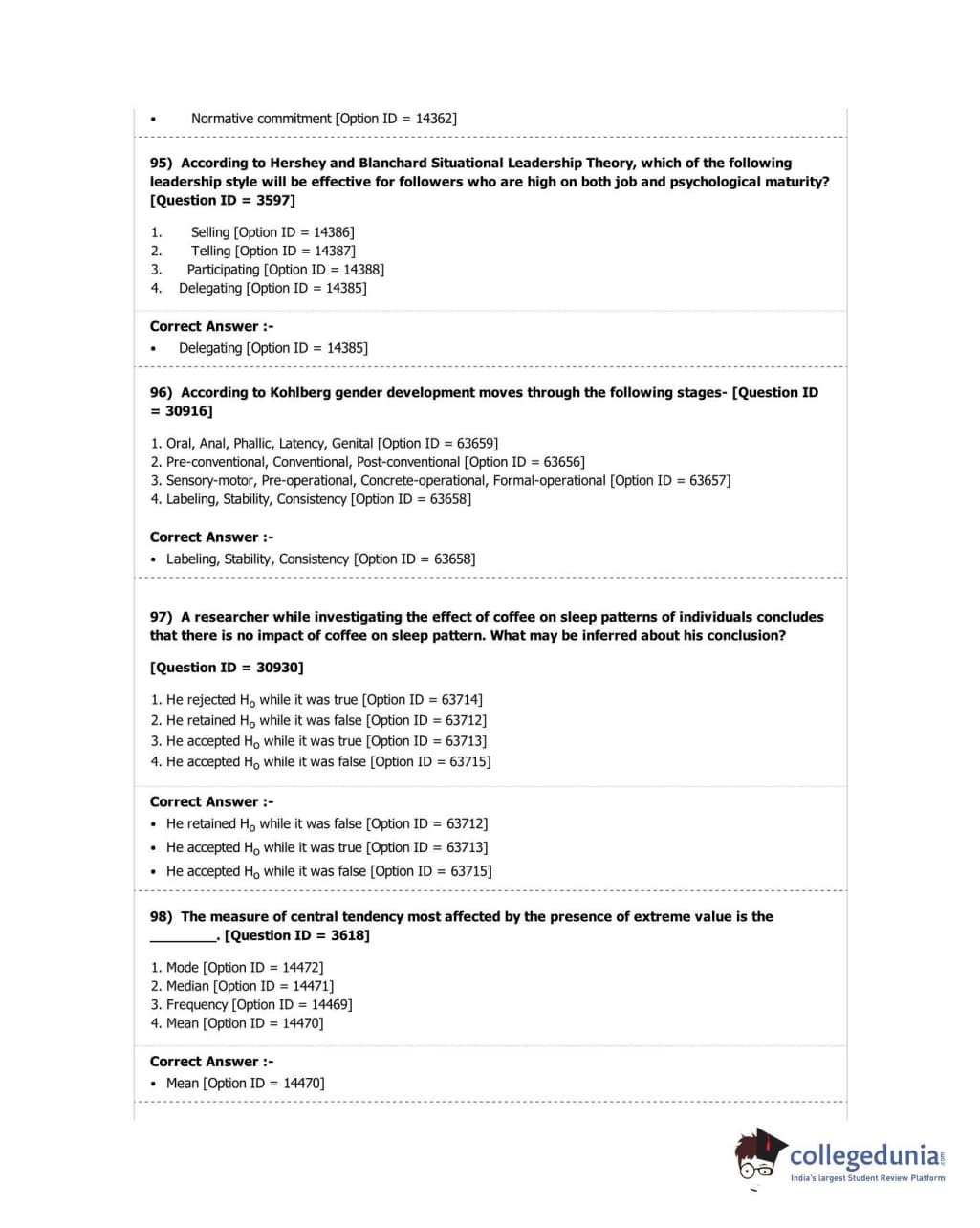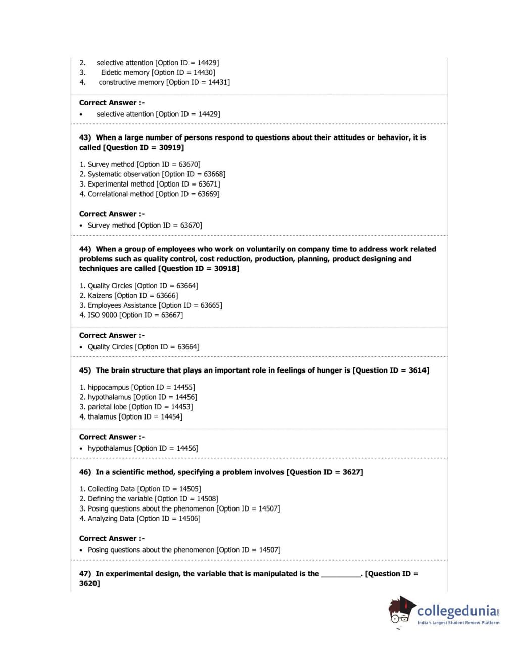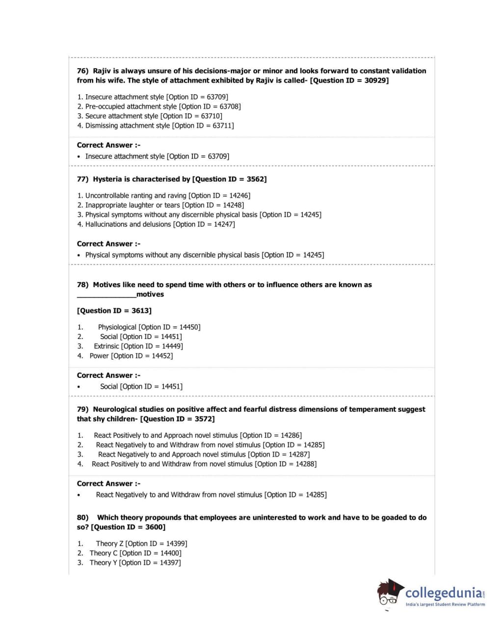 DUET 2018 M.A. in Psychology Question Paper with Answer Key PDF Shift 2