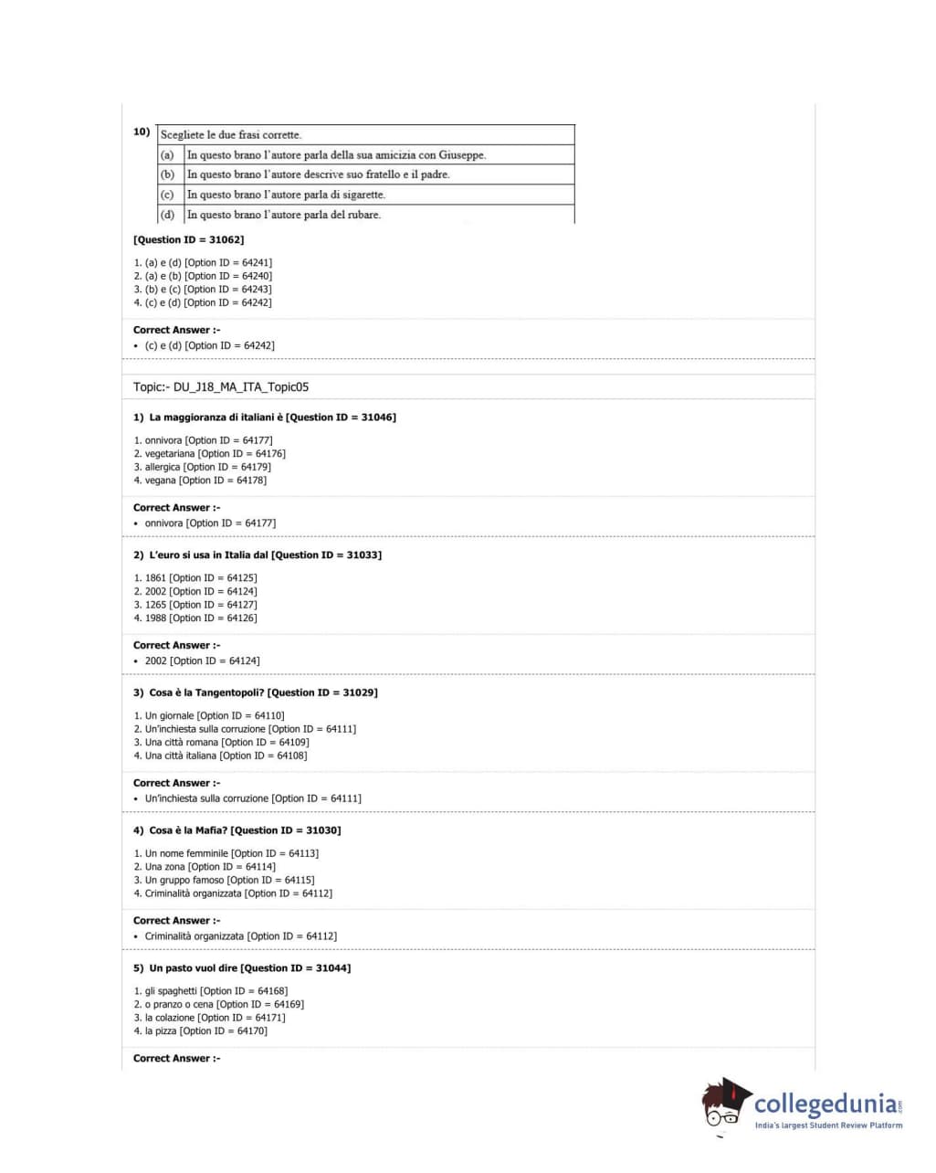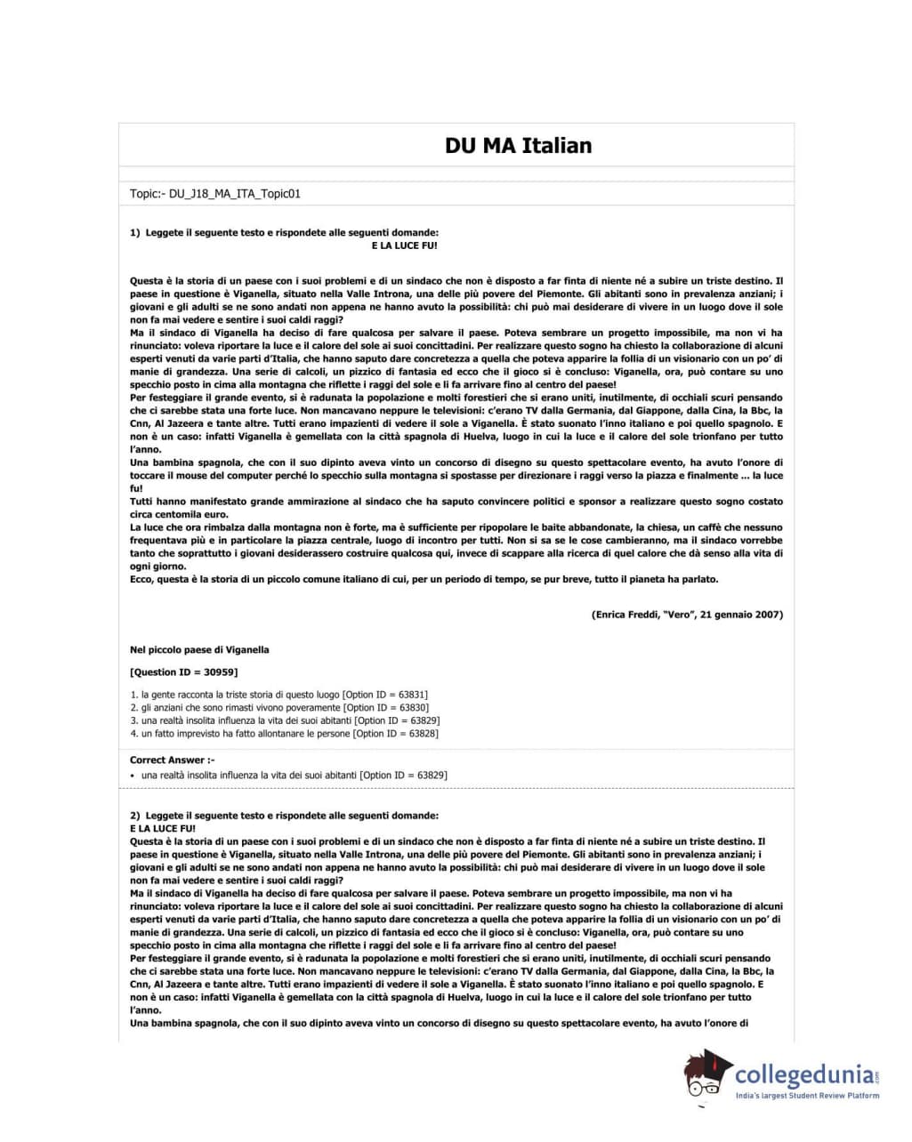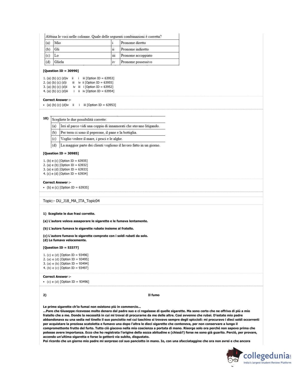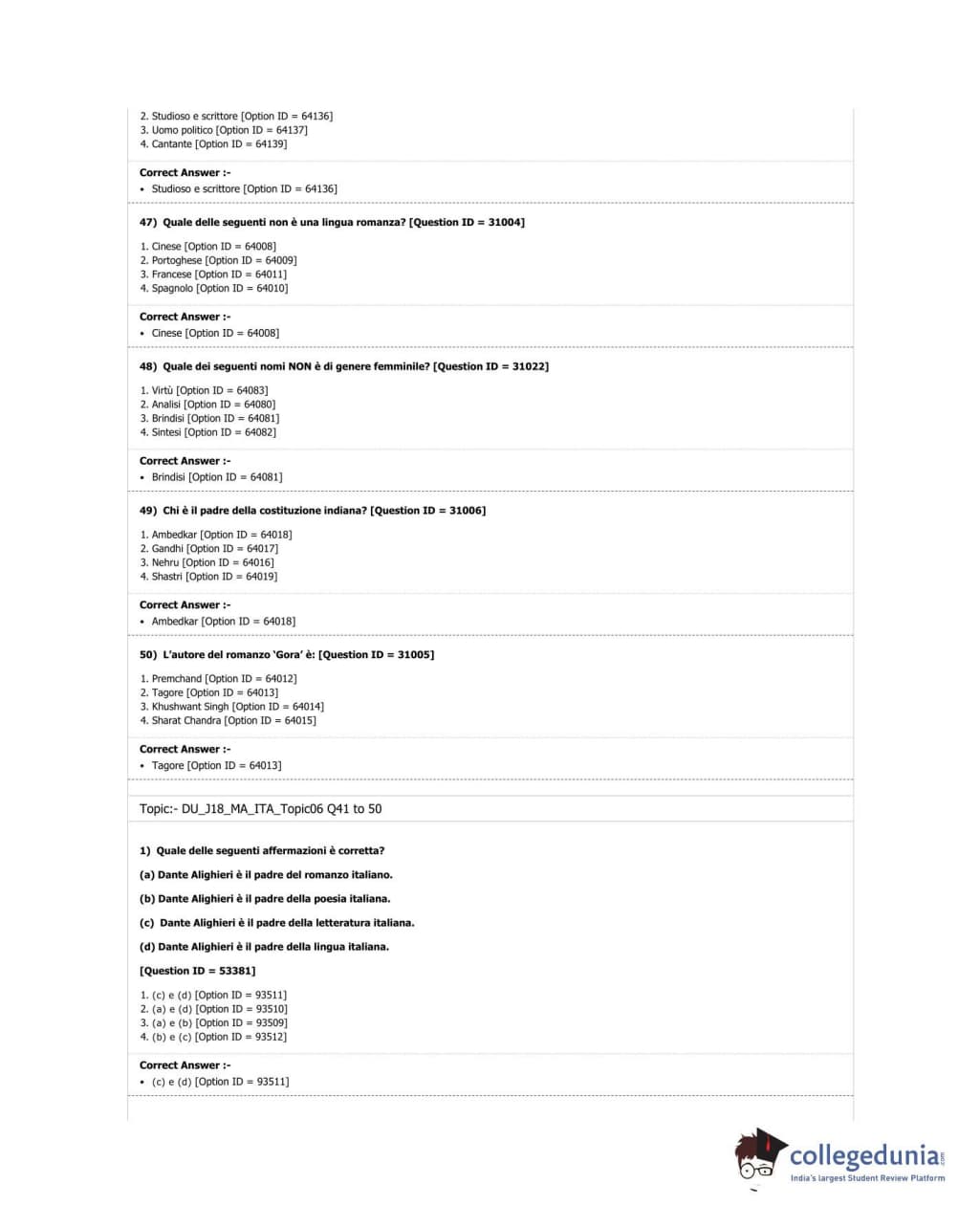 DUET 2018 M.A. Italian Question Paper with Answer Key PDF Shift 2