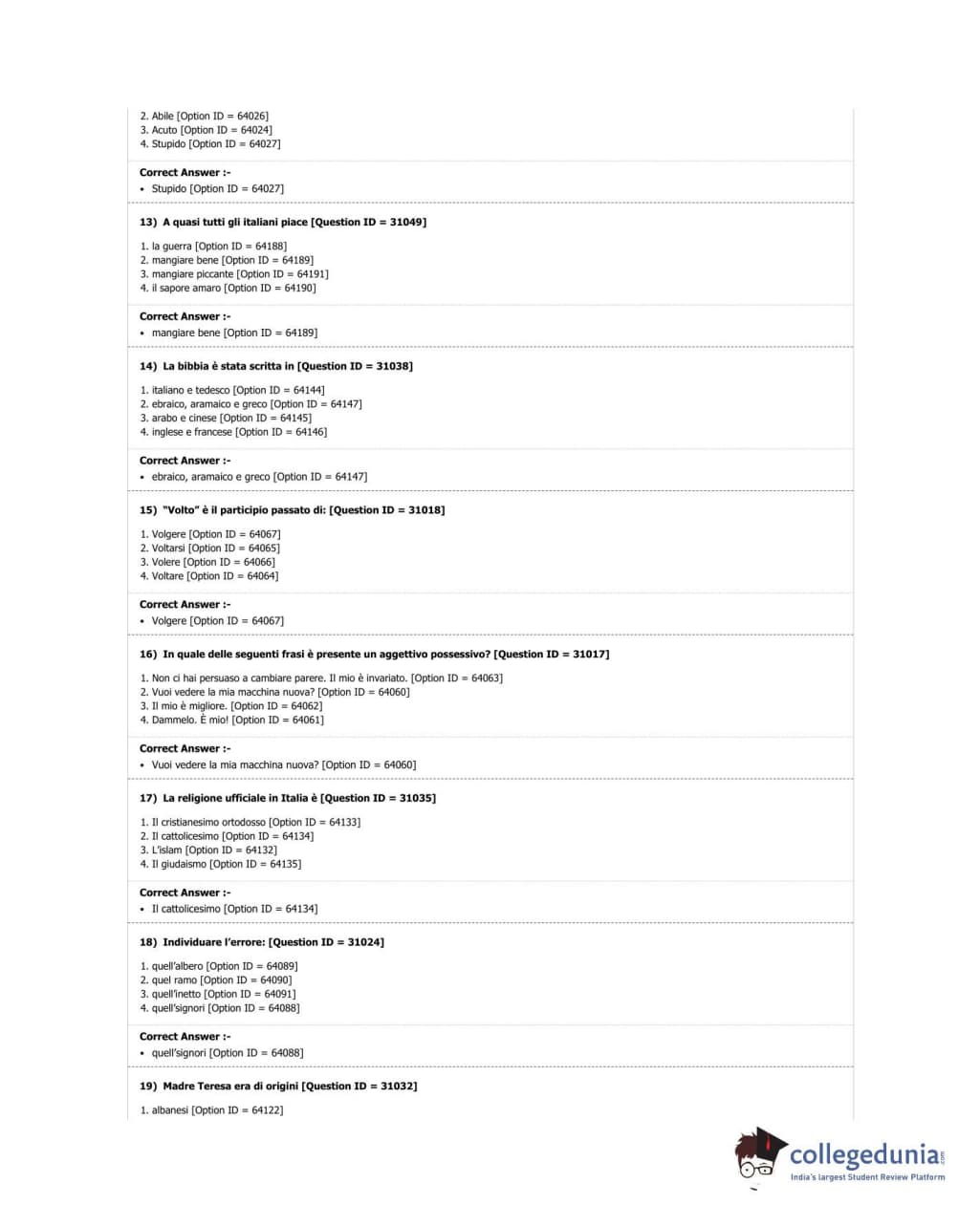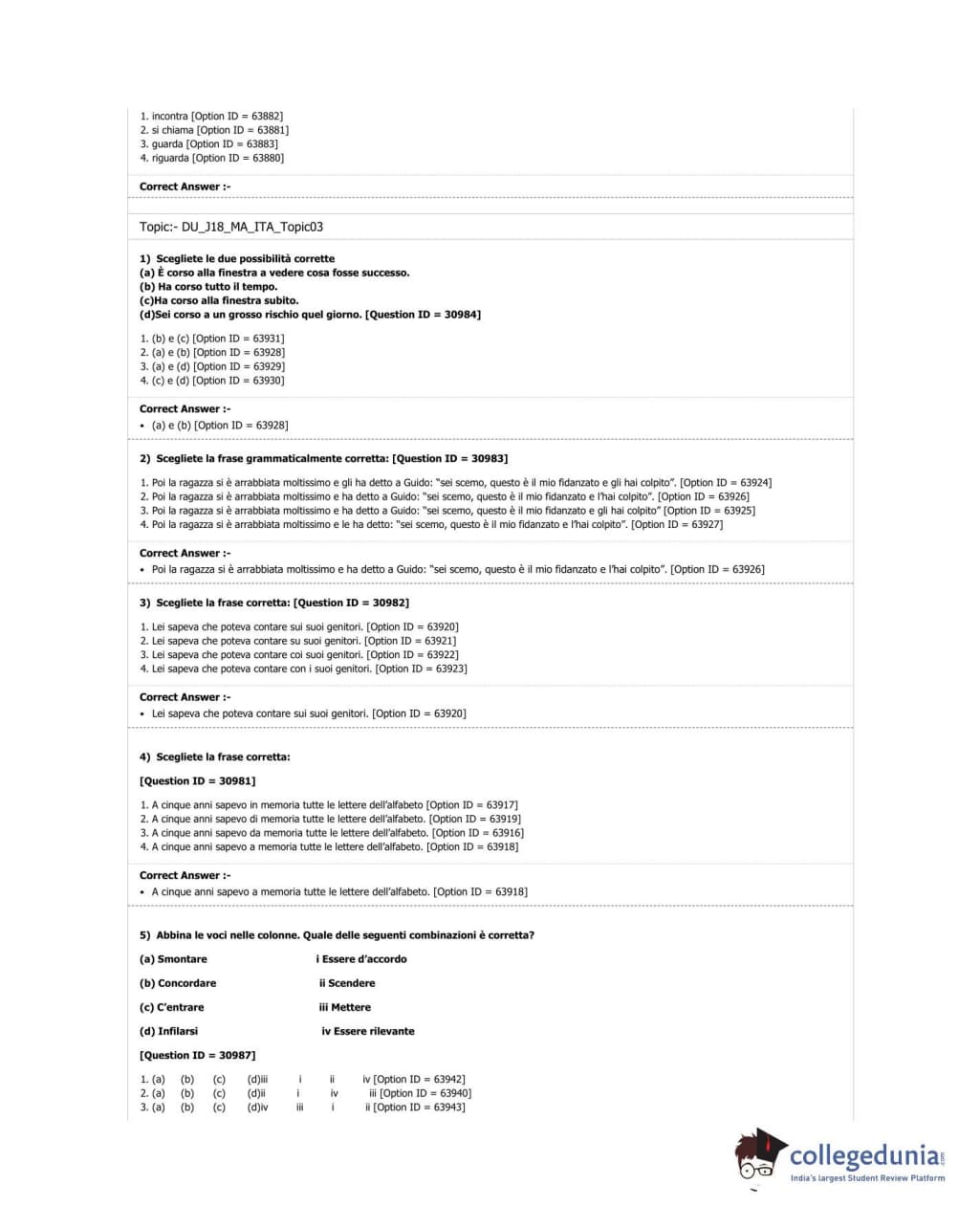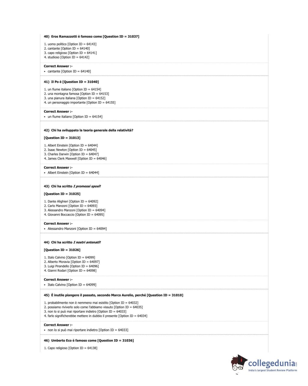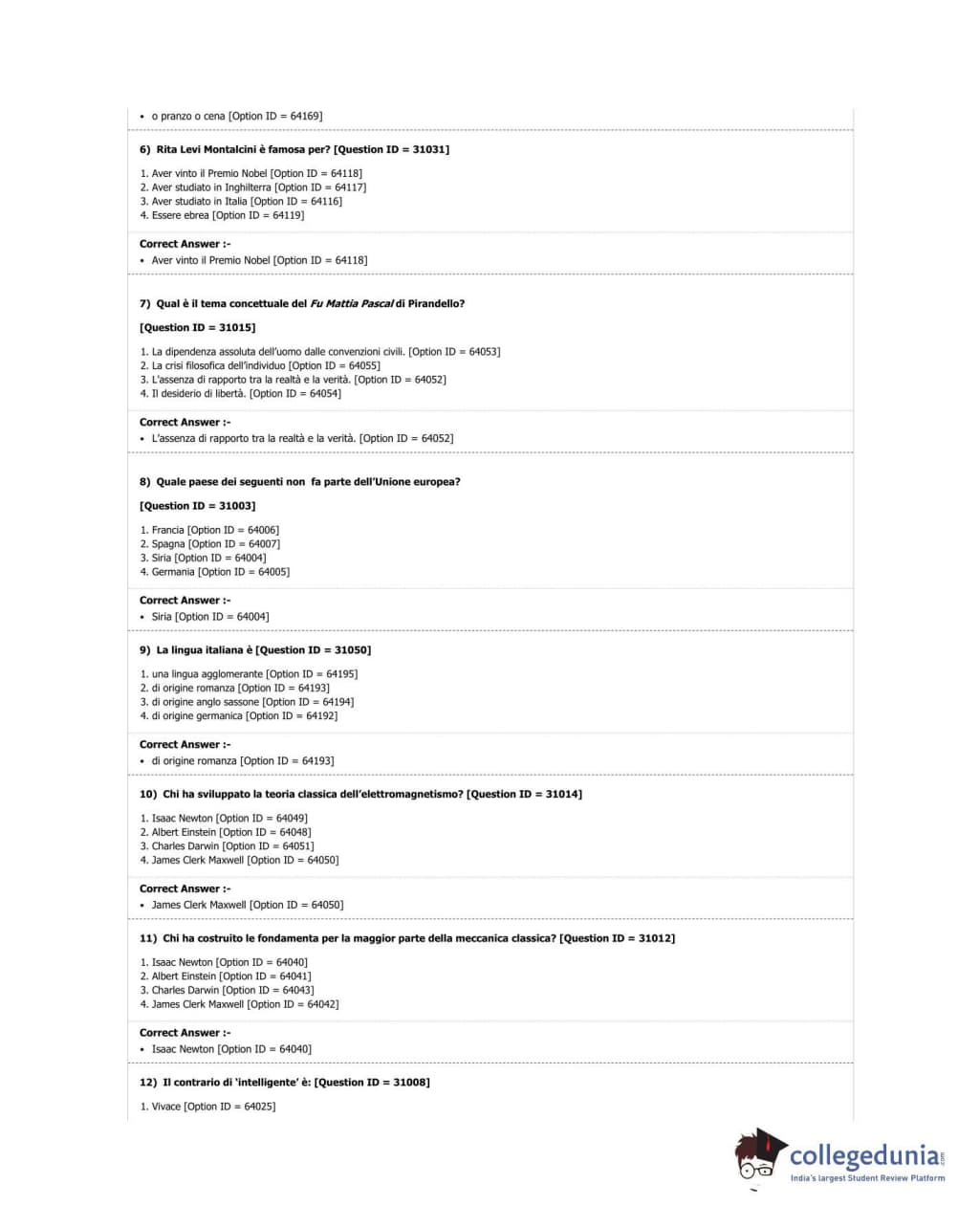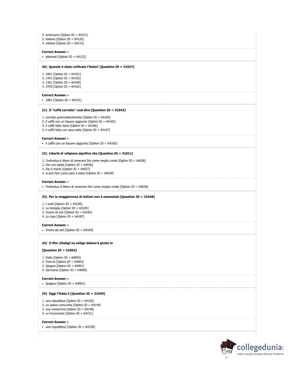 DUET 2018 M.A. Italian Question Paper with Answer Key PDF Shift 2