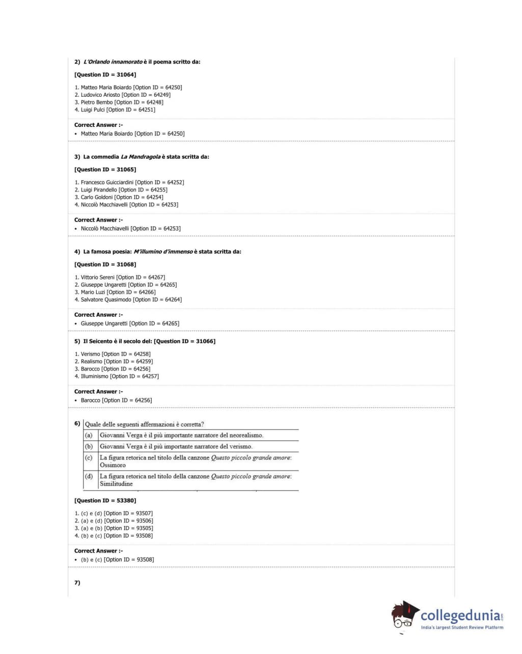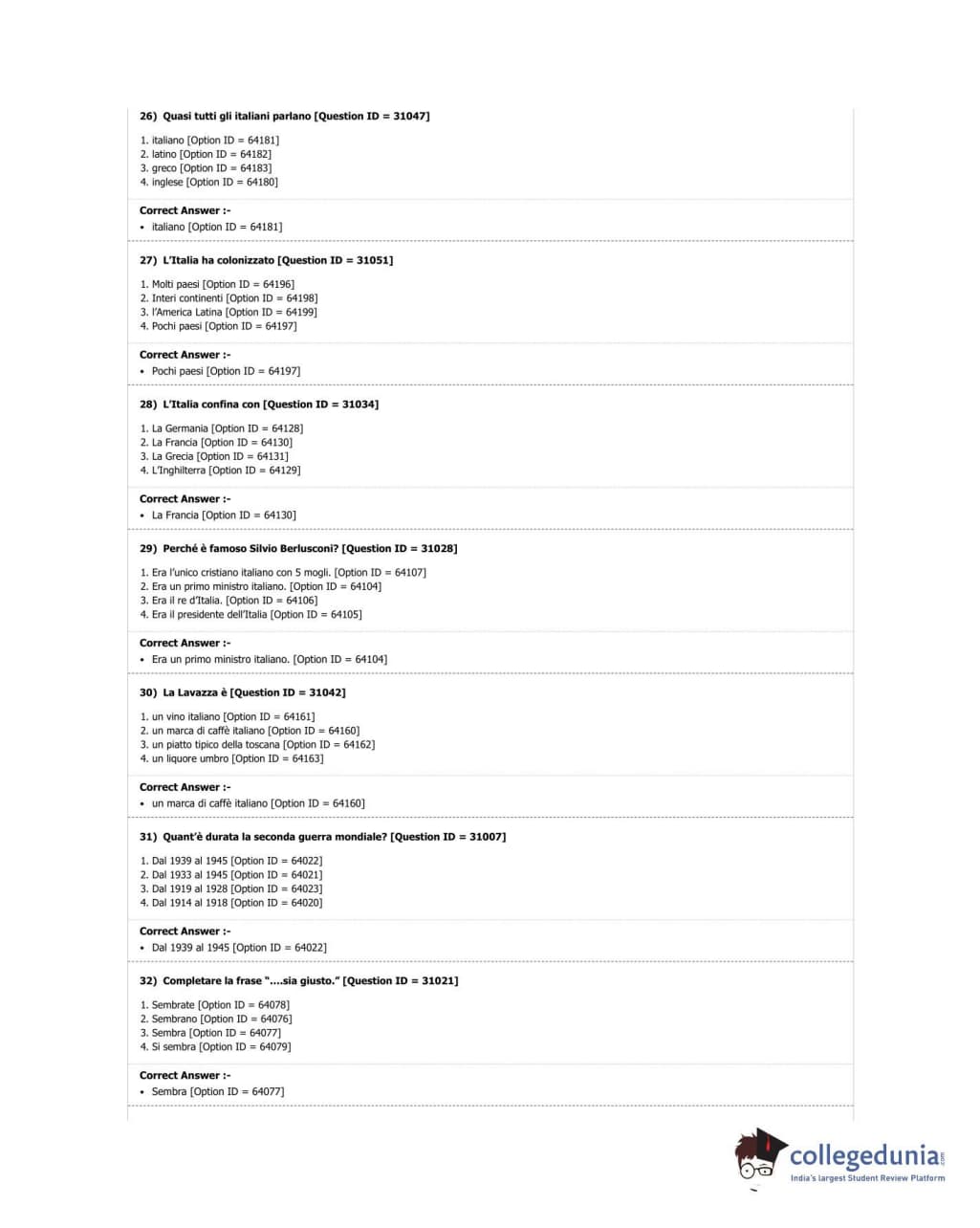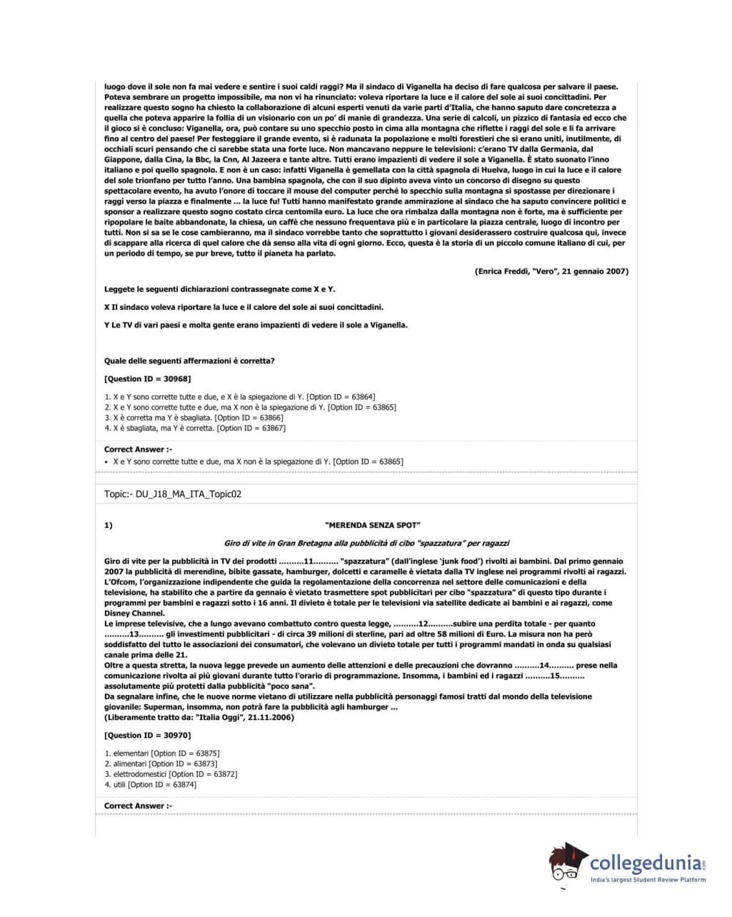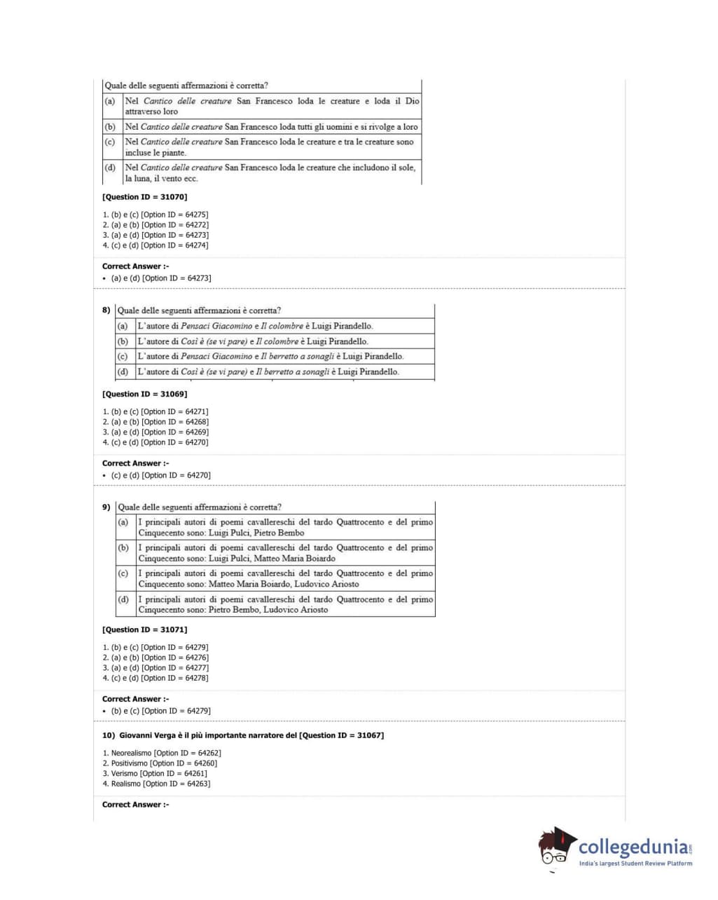 DUET 2018 M.A. Italian Question Paper with Answer Key PDF Shift 2