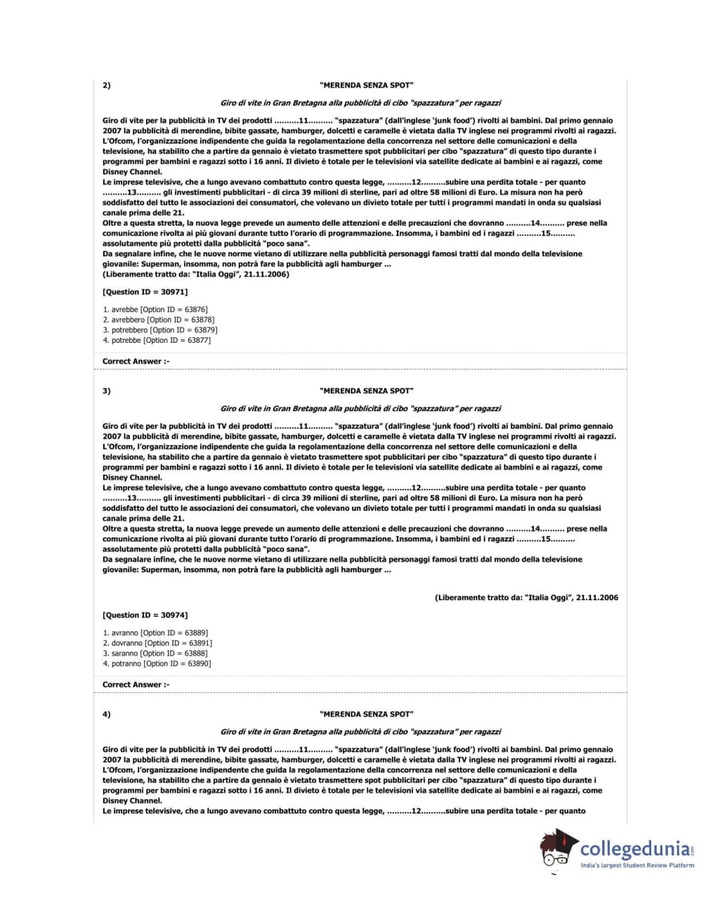 DUET 2018 M.A. Italian Question paper with answer key pdf conducted on June 17, 2018 in Shift 2 is available for download. The exam was successfully organized by University of Delhi. The question paper comprised a total of 100 questions.
