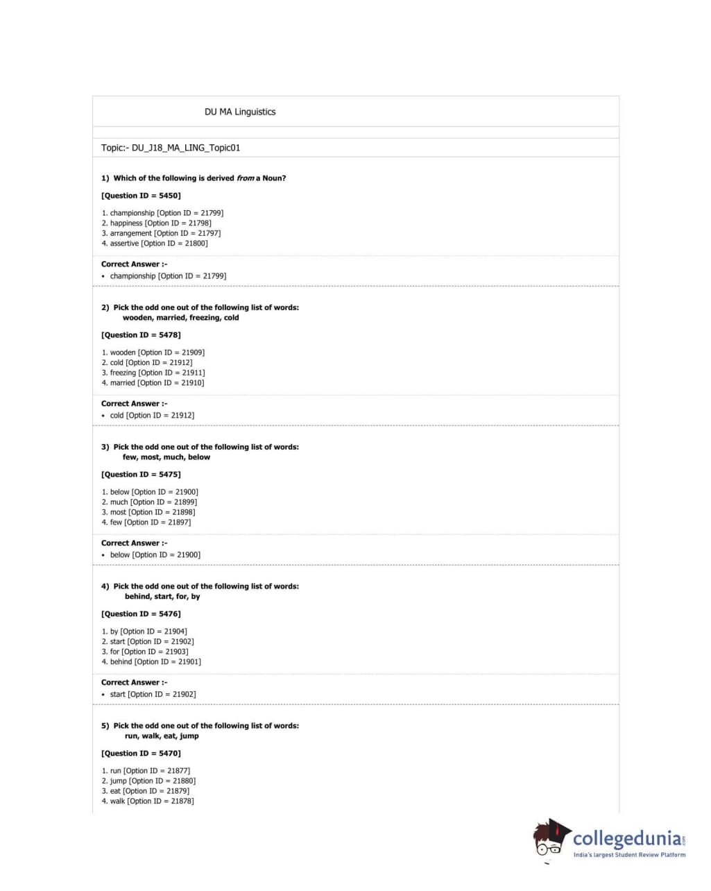 DUET 2018 M.A. Linguistics Question paper with answer key pdf conducted on June 20, 2018 in Shift 3 is available for download. The exam was successfully organized by University of Delhi. The question paper comprised a total of 50 questions.