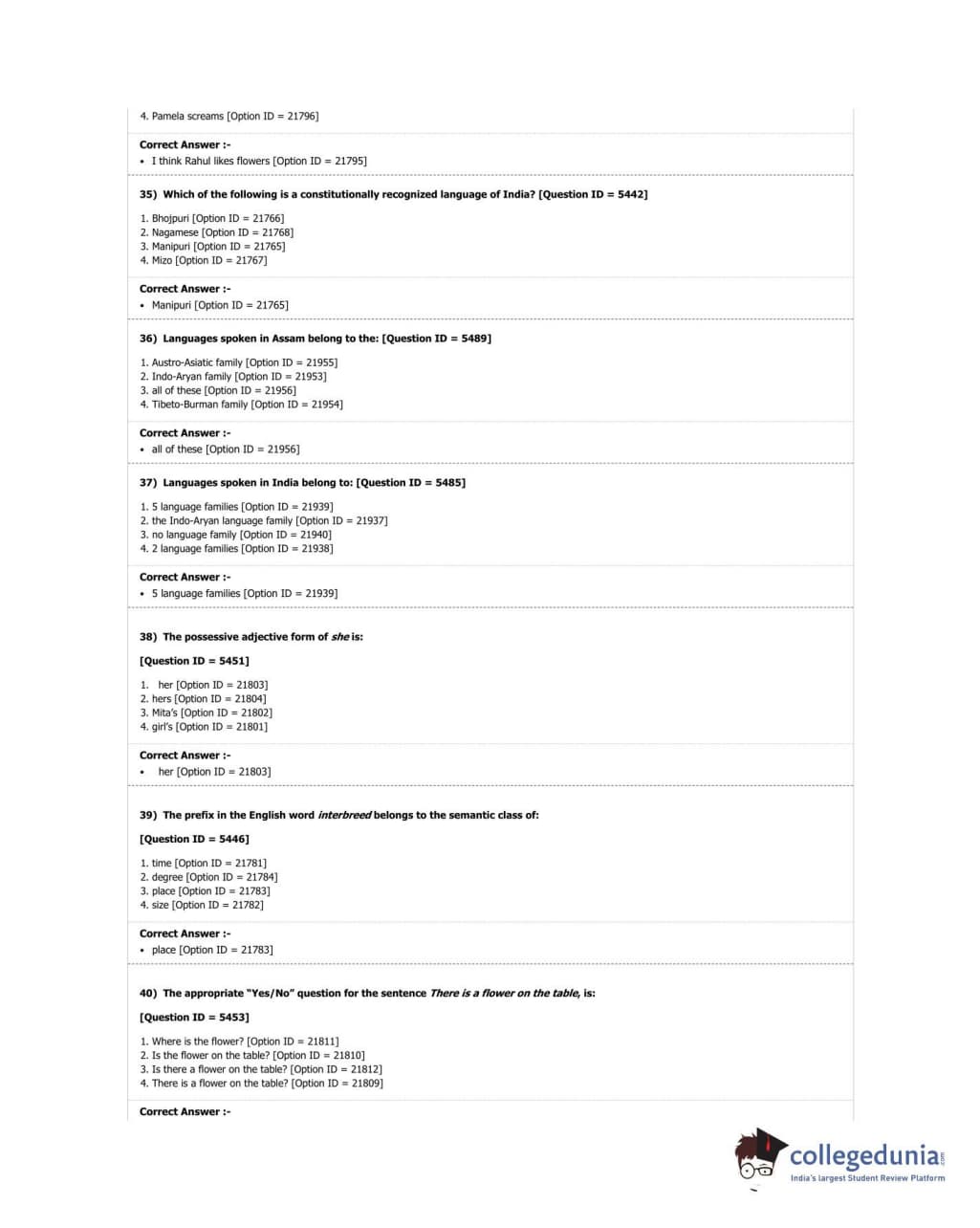 DUET 2018 M.A. Linguistics Question Paper with Answer Key PDF Shift 3