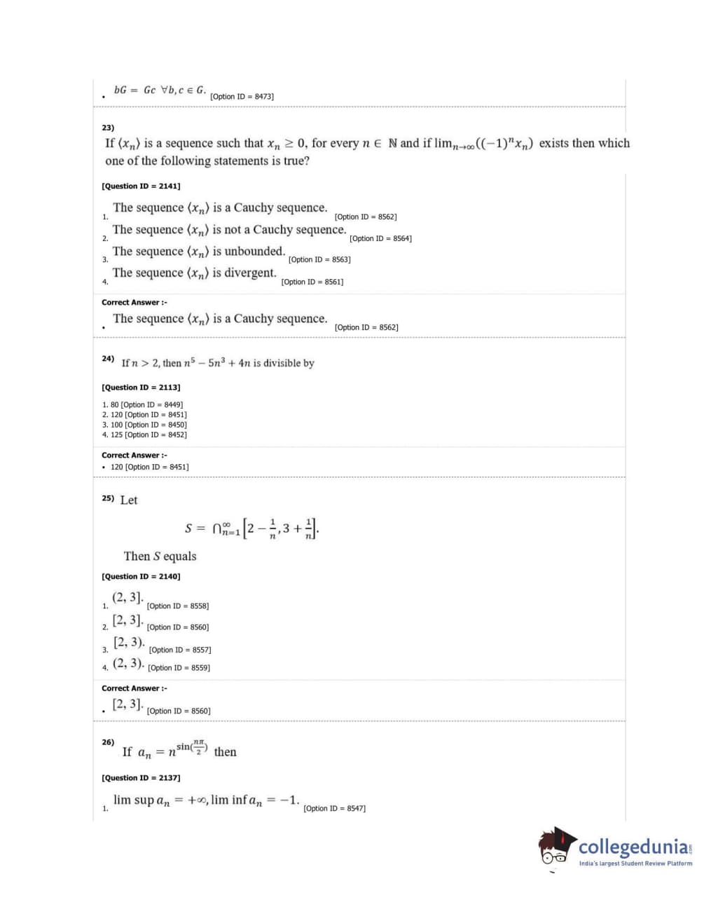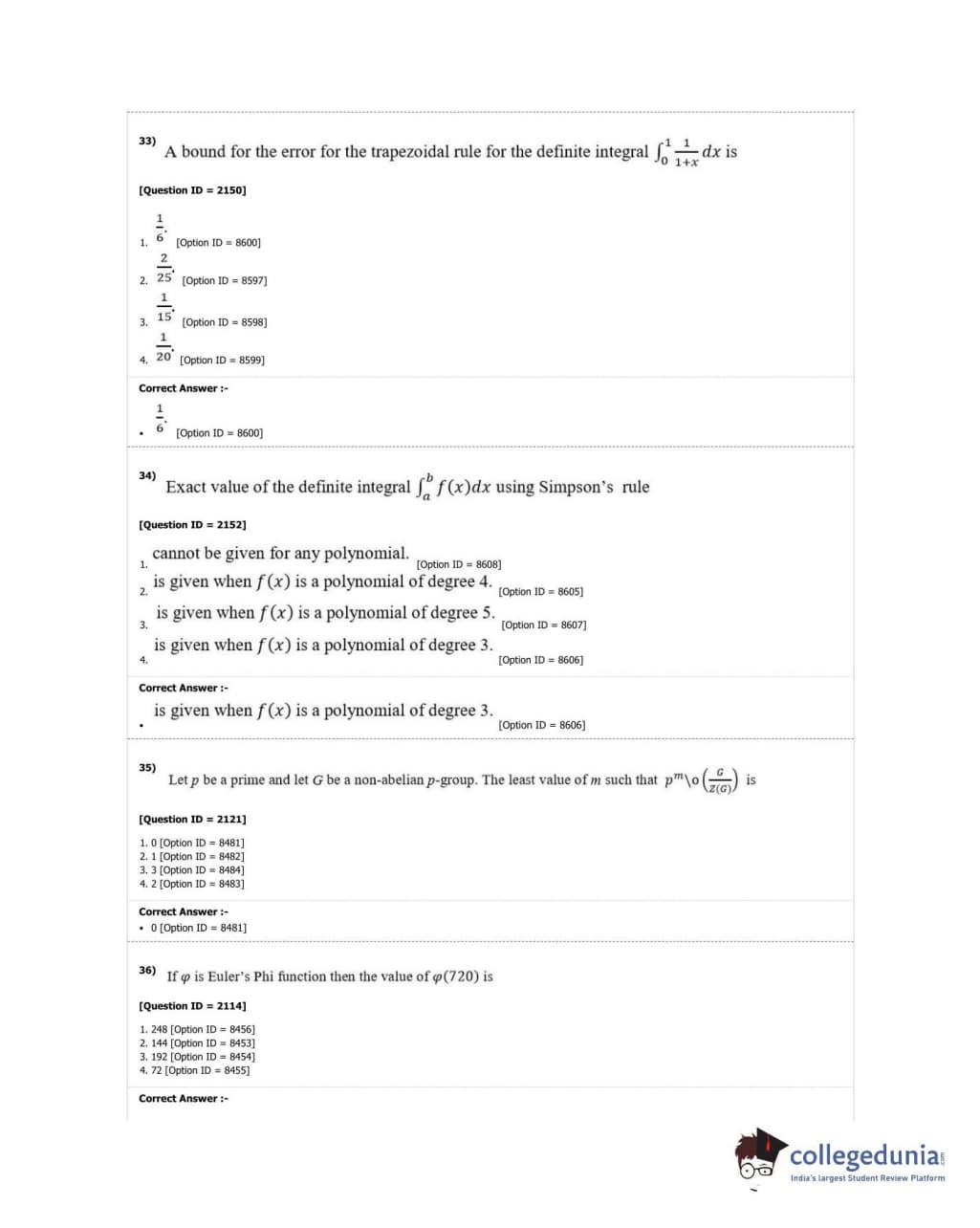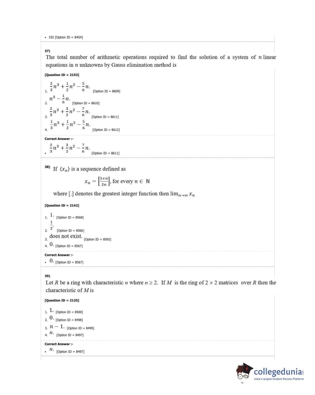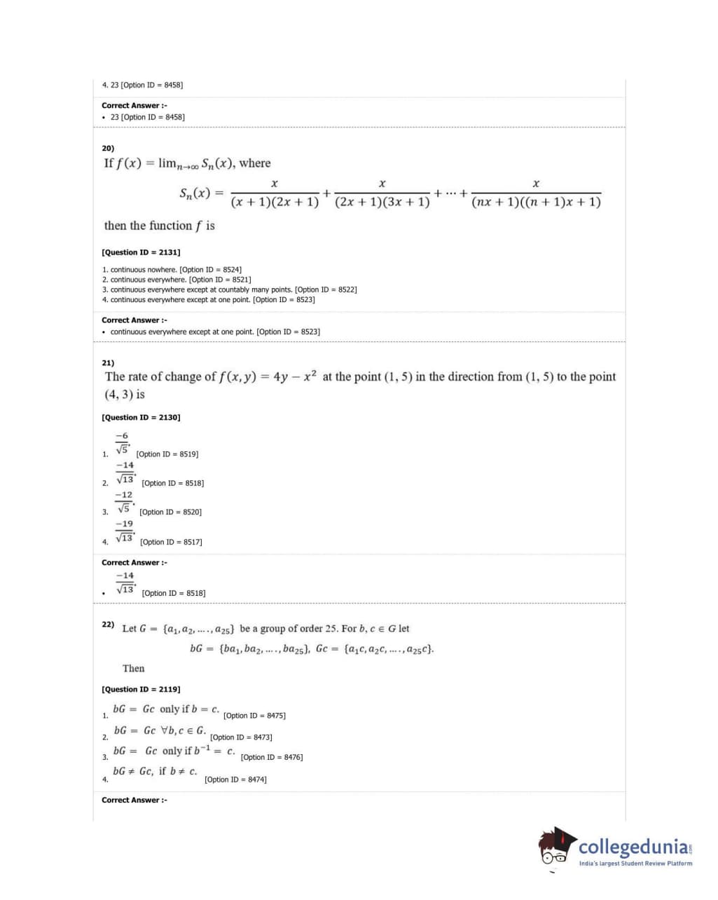 DUET 2018 M.A./M.Sc. Mathematics Question Paper with Answer Key PDF Shift 3