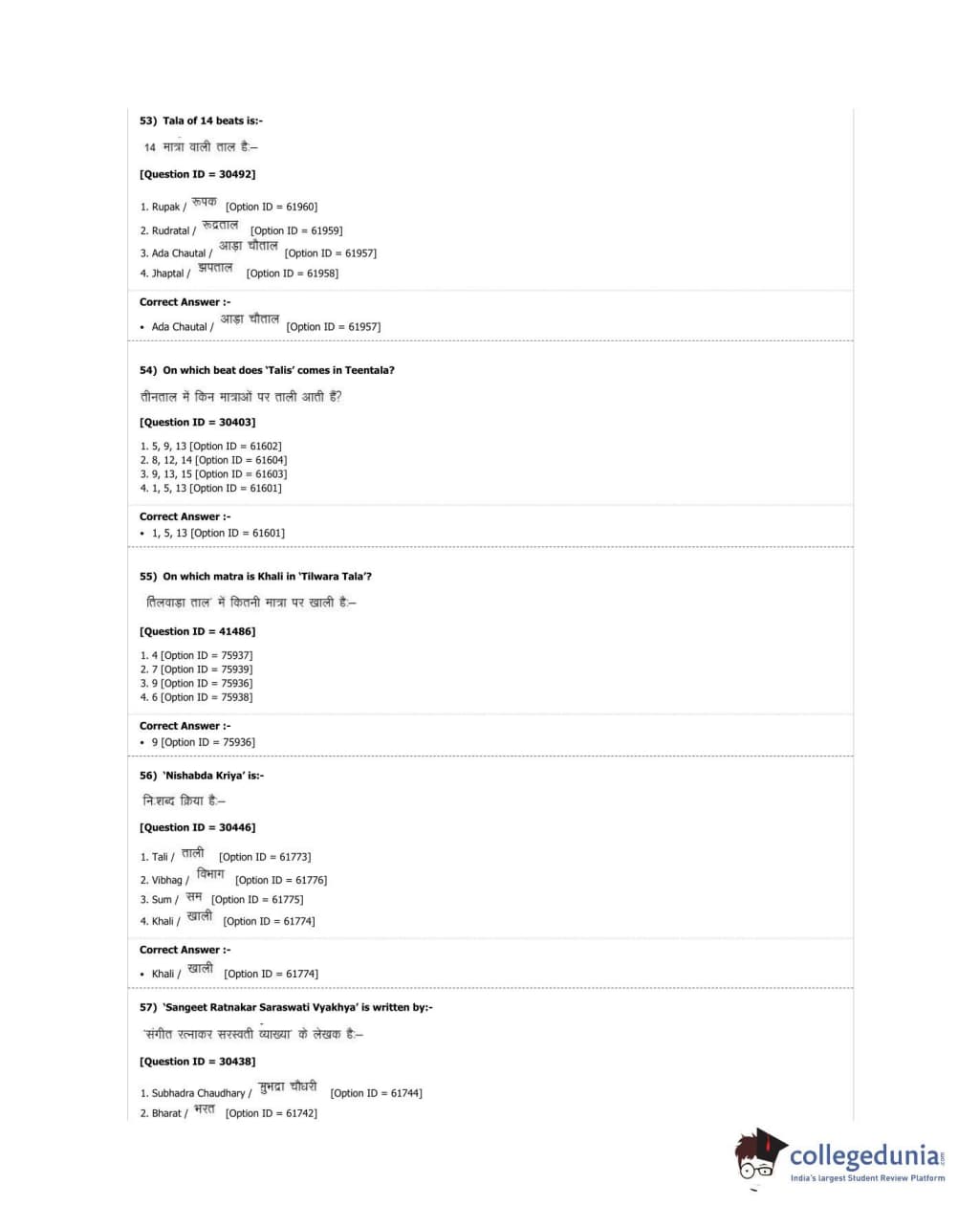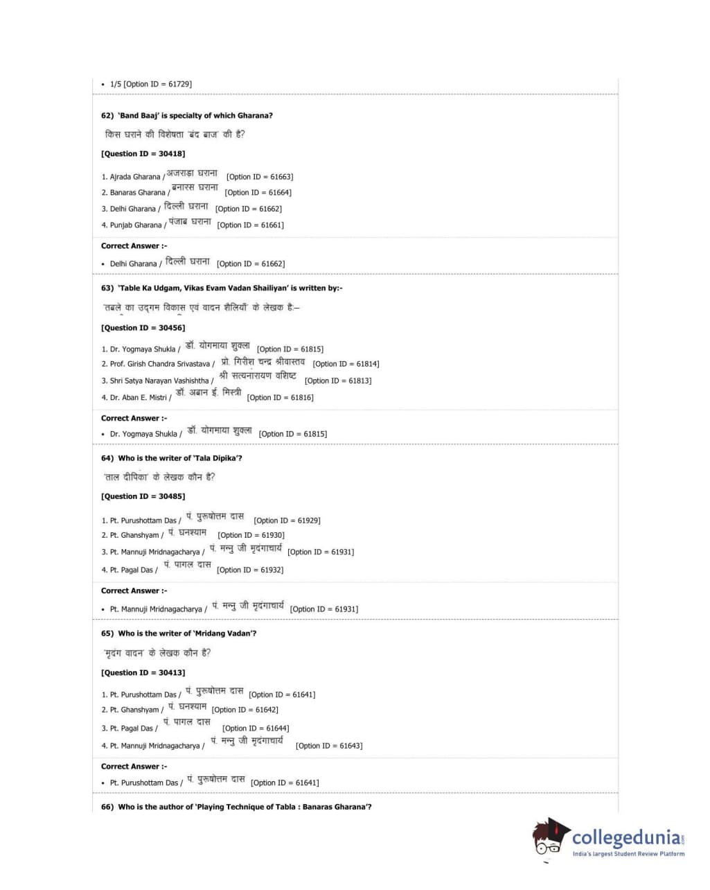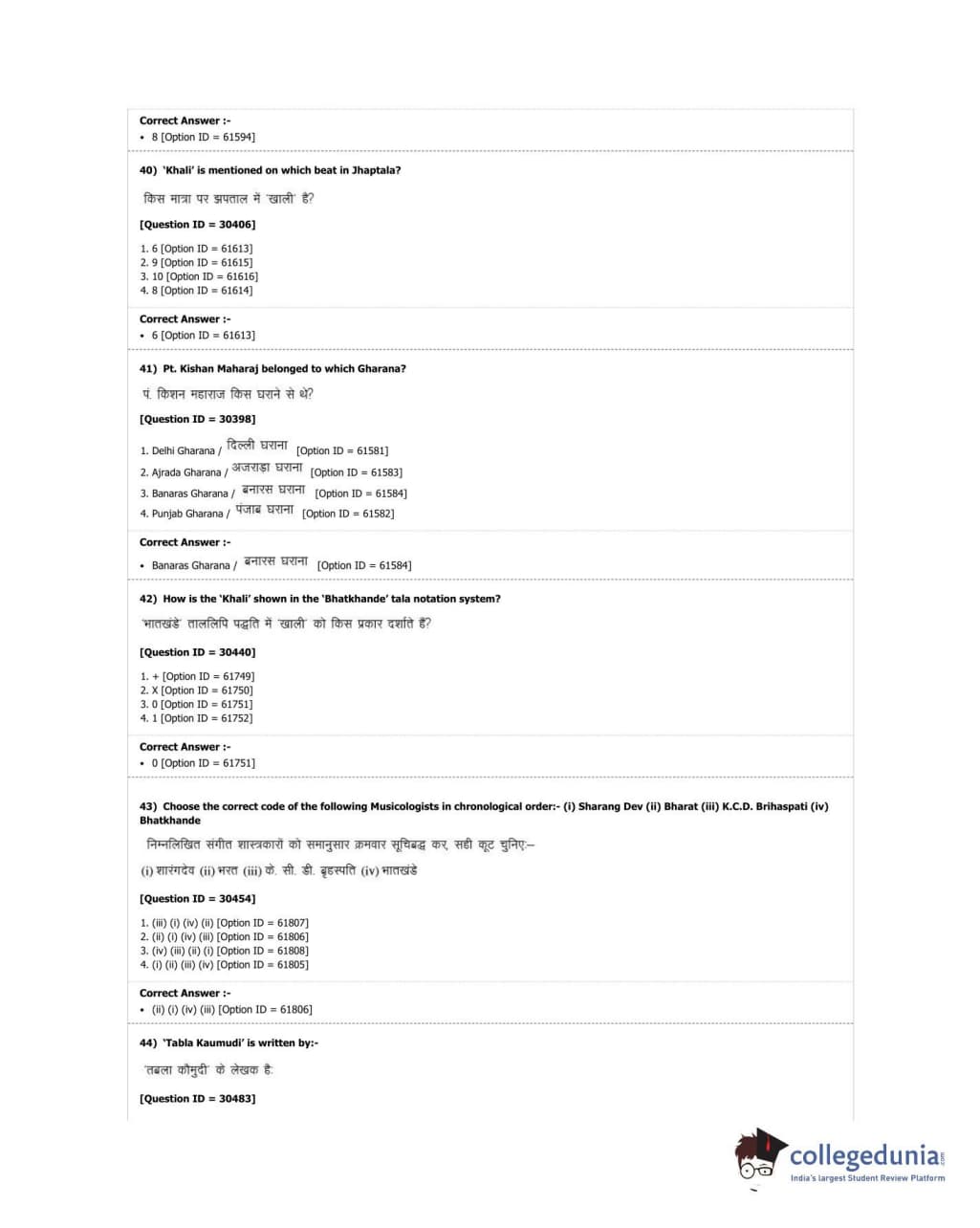DUET 2018 M.A. Percussion Music Question paper with answer key pdf conducted on June 21, 2018 in Shift 3 is available for download. The exam was successfully organized by University of Delhi. The question paper comprised a total of 100 questions.