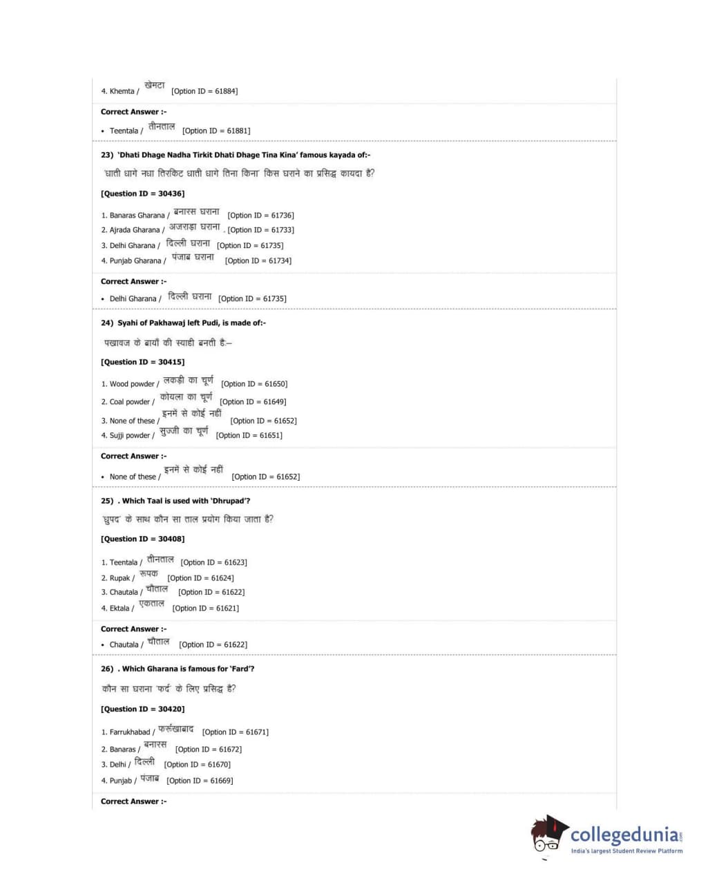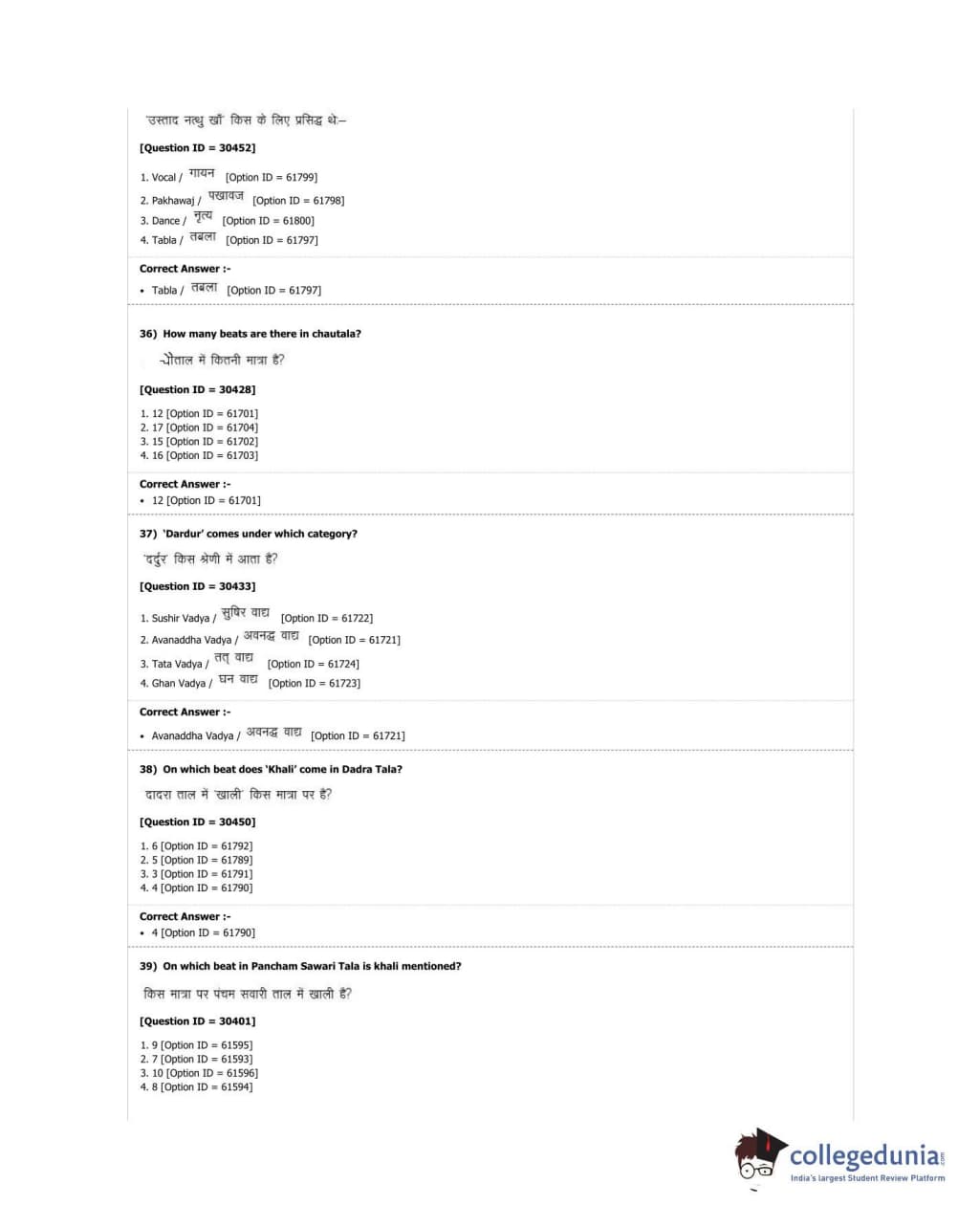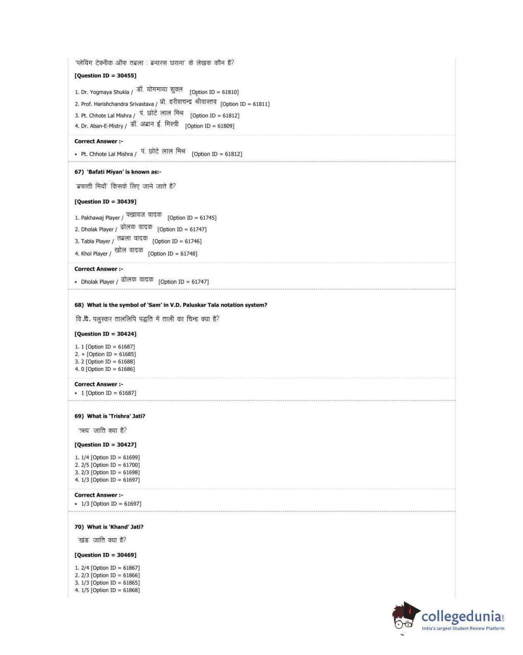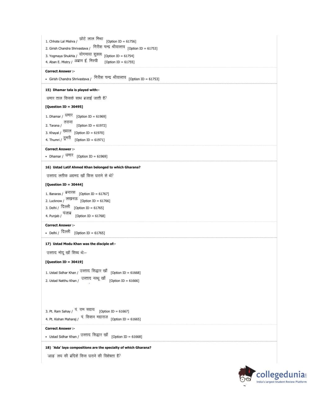 DUET 2018 M.A. Percussion Music Question Paper with Answer Key PDF Shift 3
