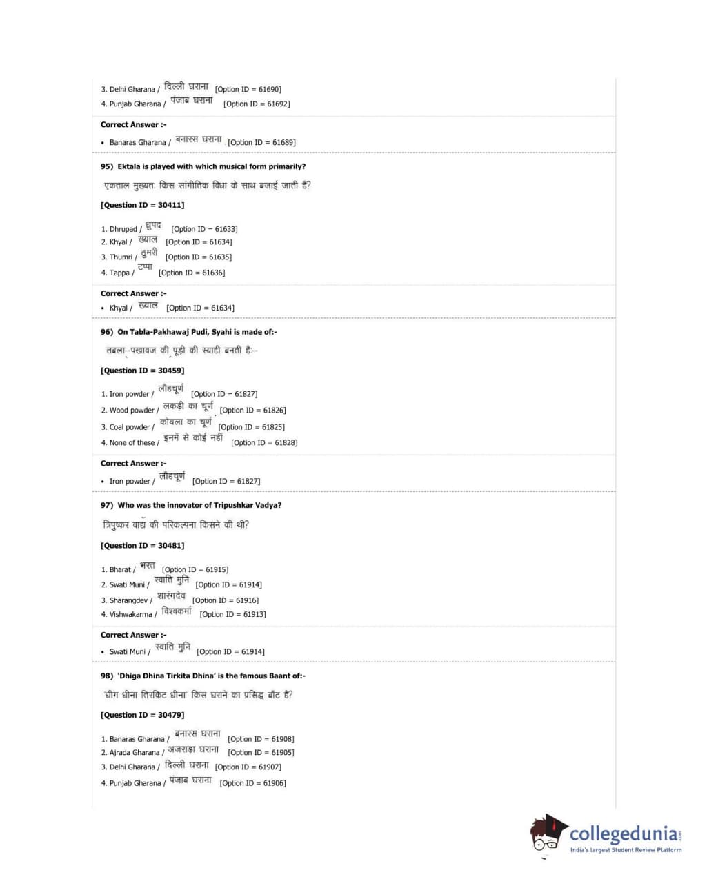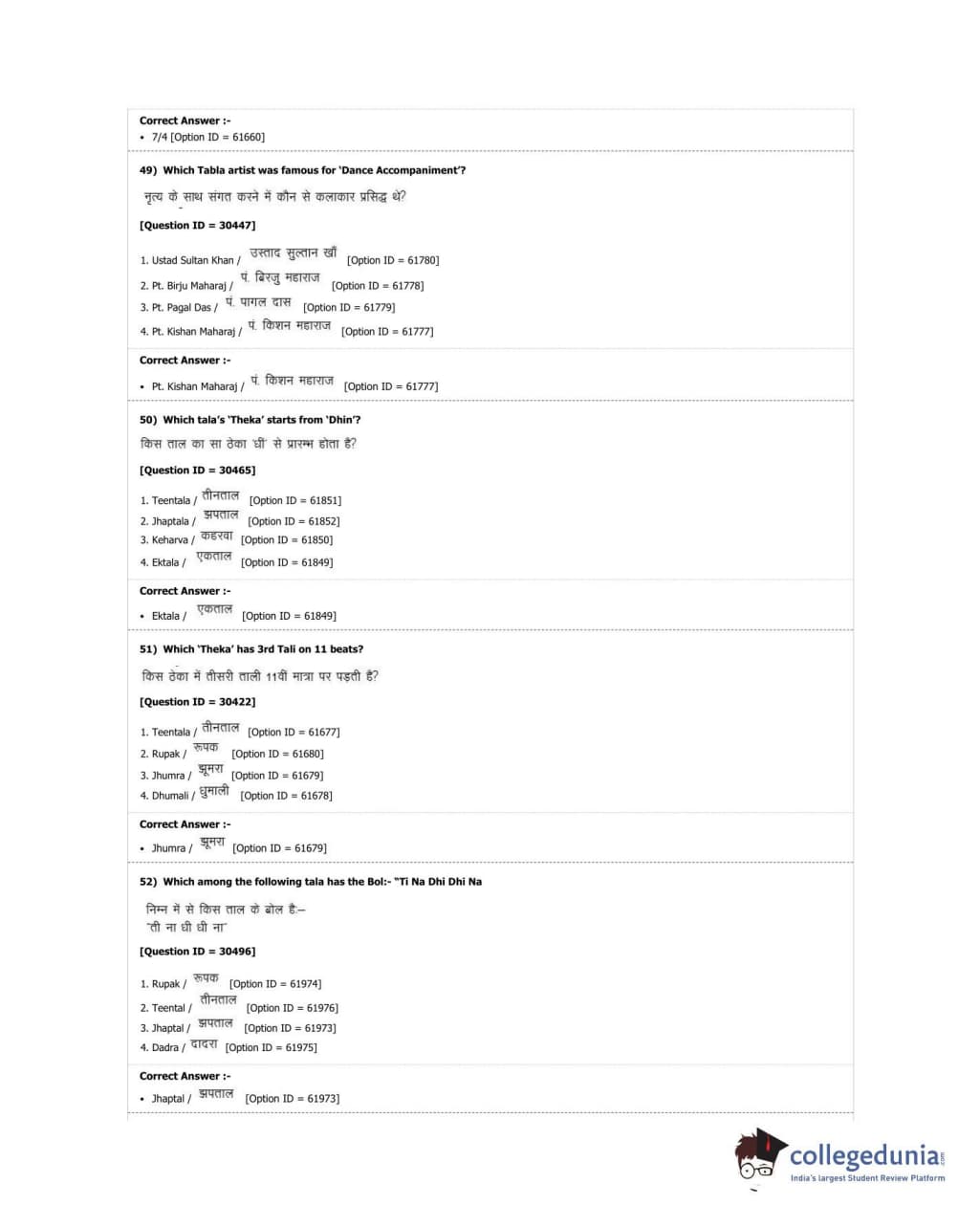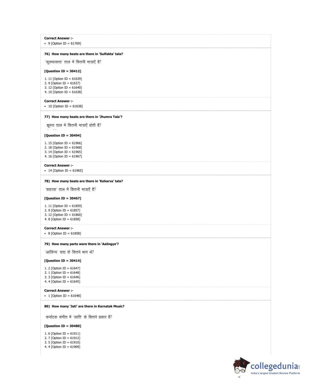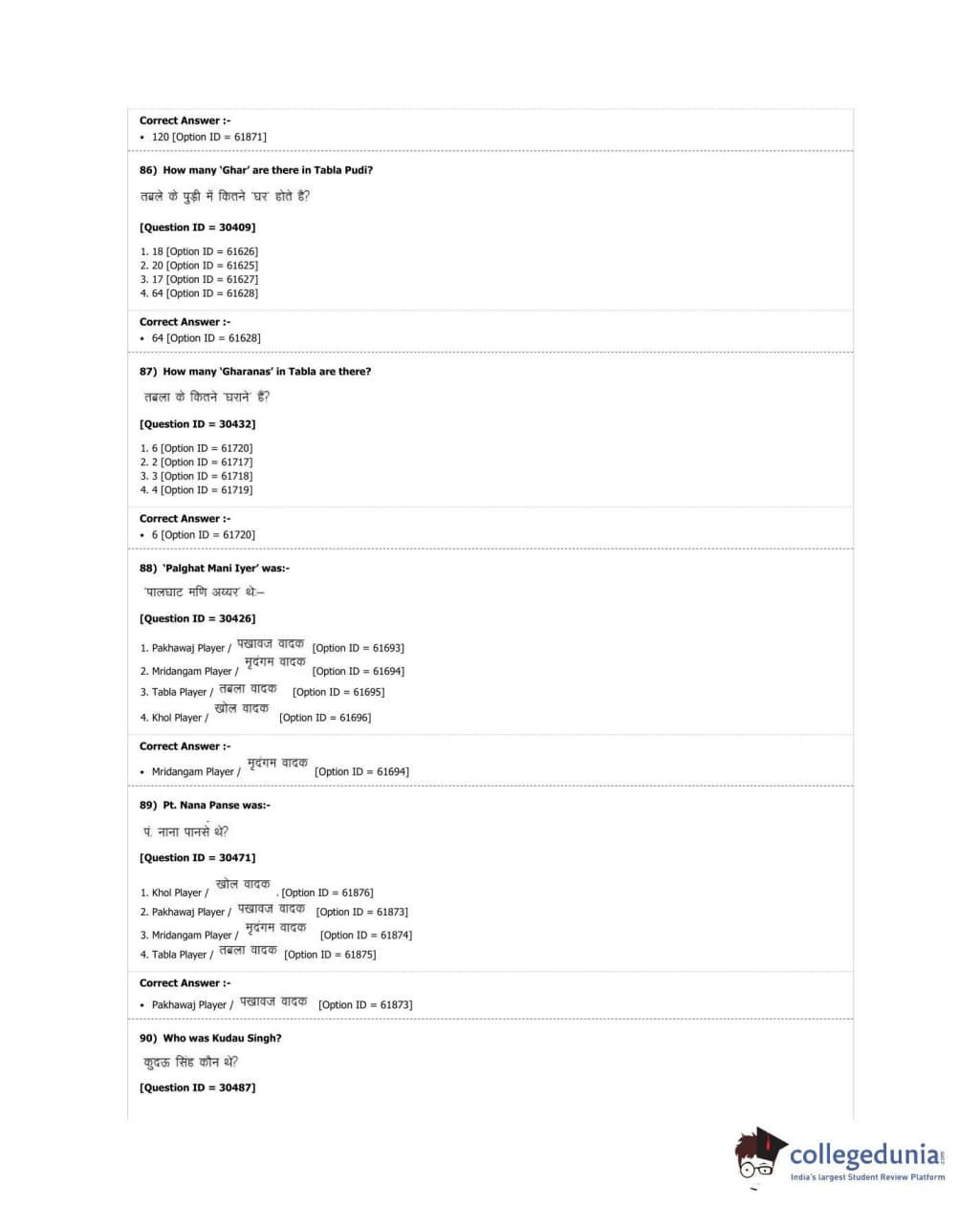 DUET 2018 M.A. Percussion Music Question Paper with Answer Key PDF Shift 3