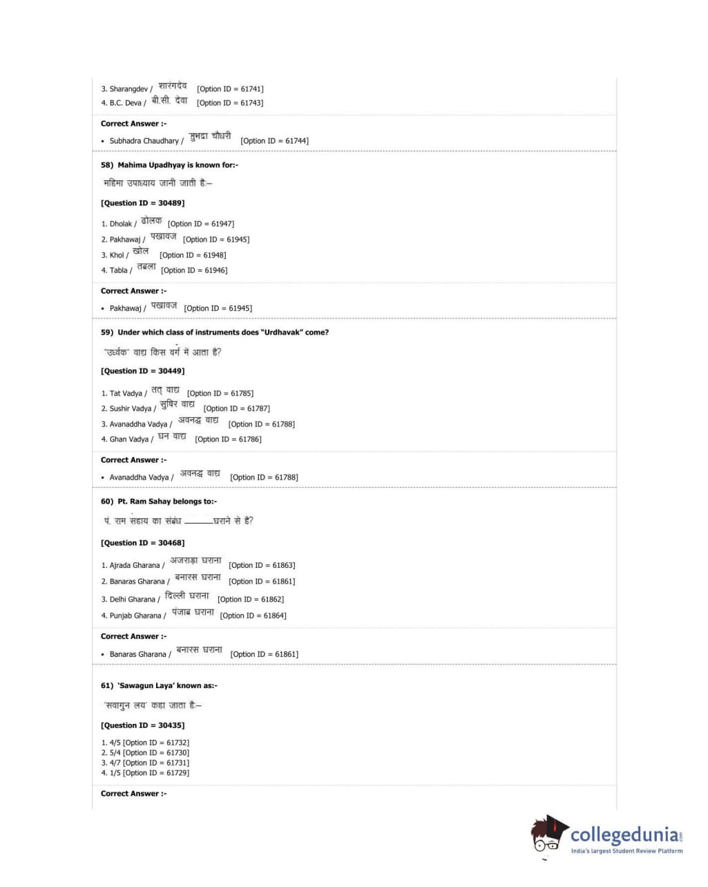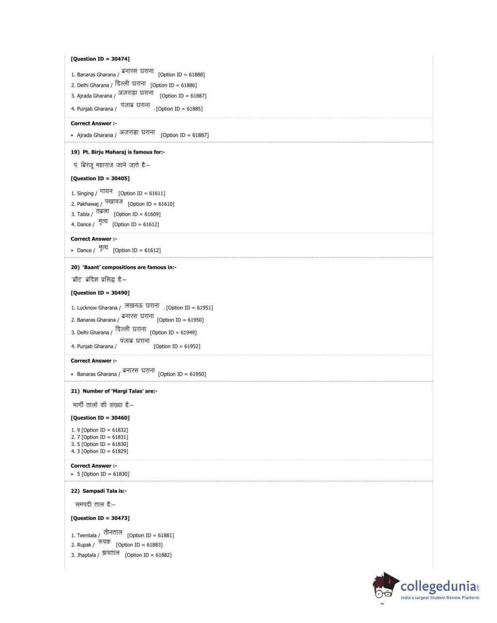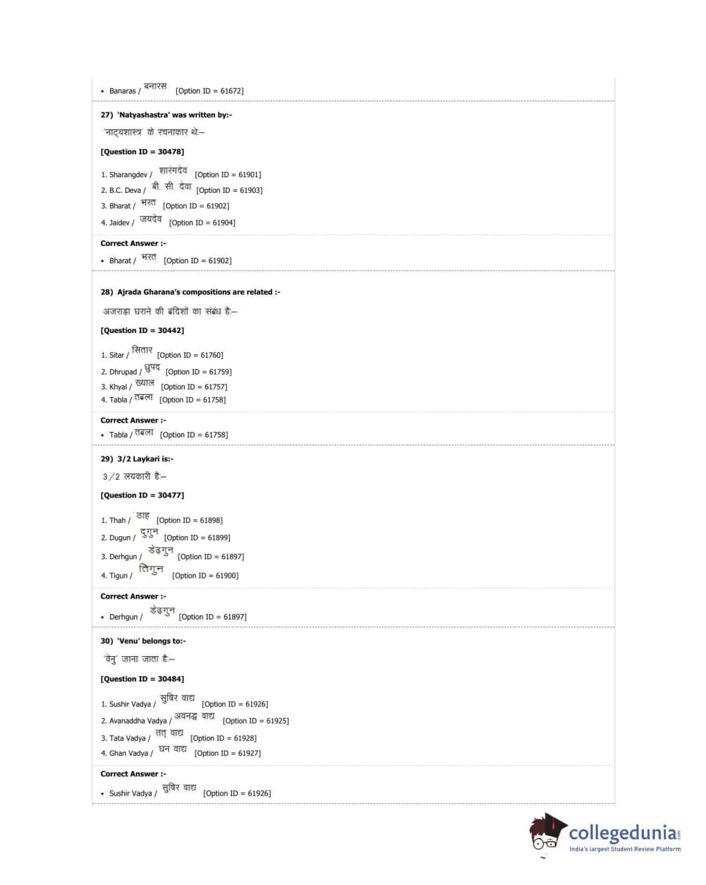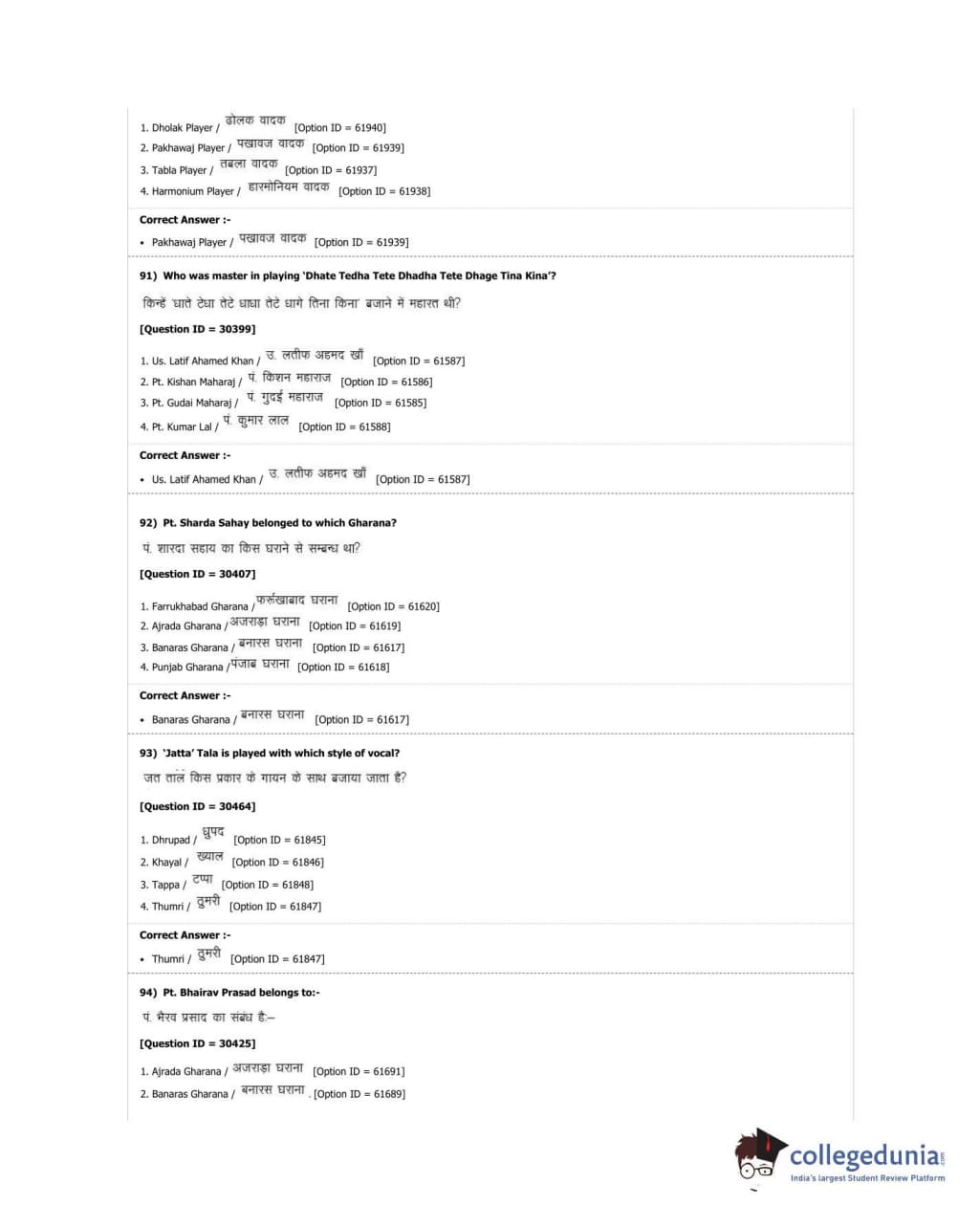 DUET 2018 M.A. Percussion Music Question Paper with Answer Key PDF Shift 3
