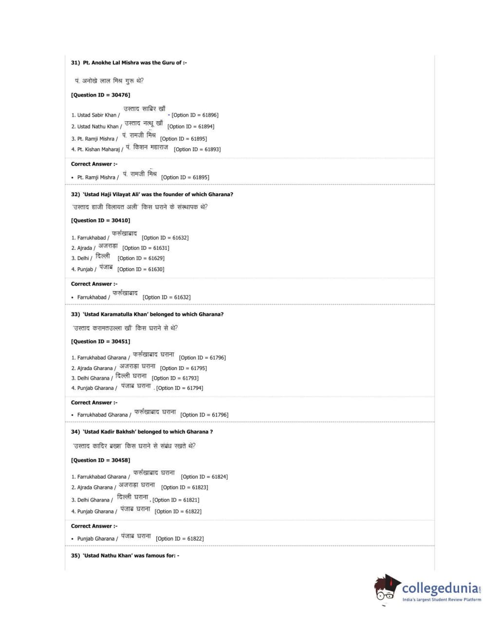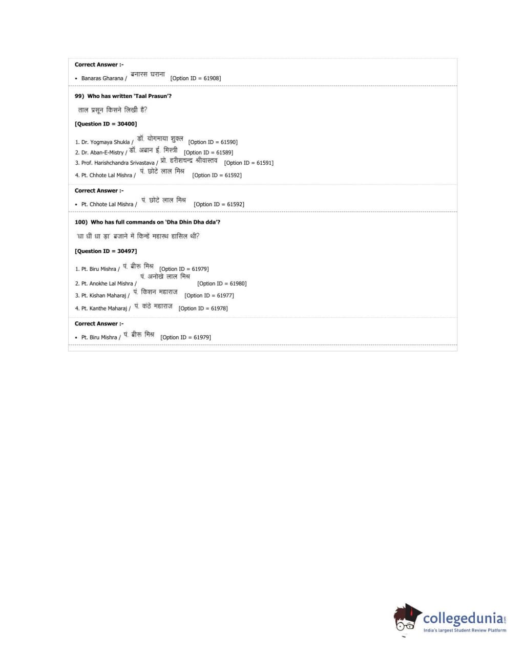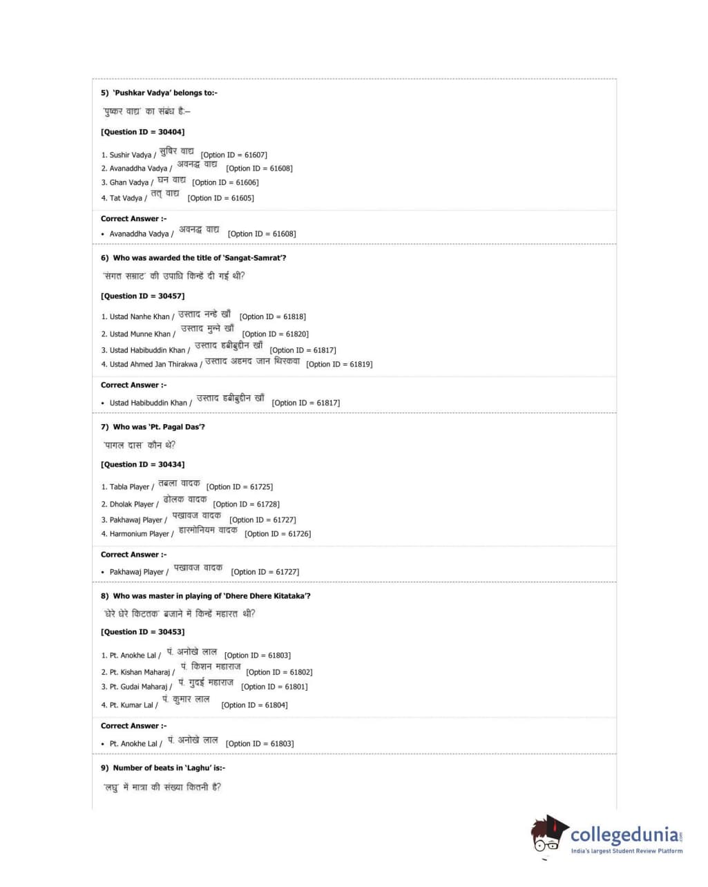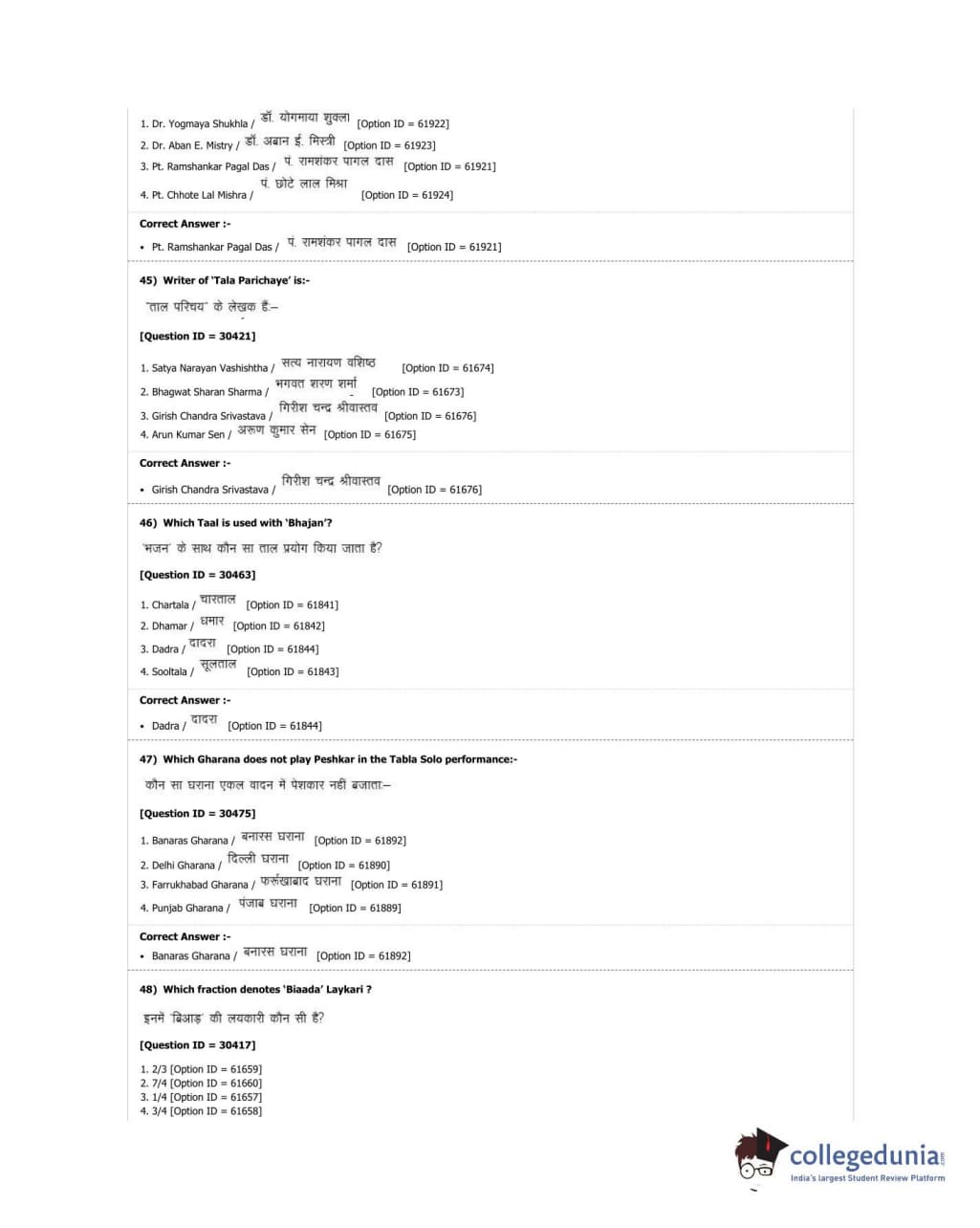 DUET 2018 M.A. Percussion Music Question Paper with Answer Key PDF Shift 3