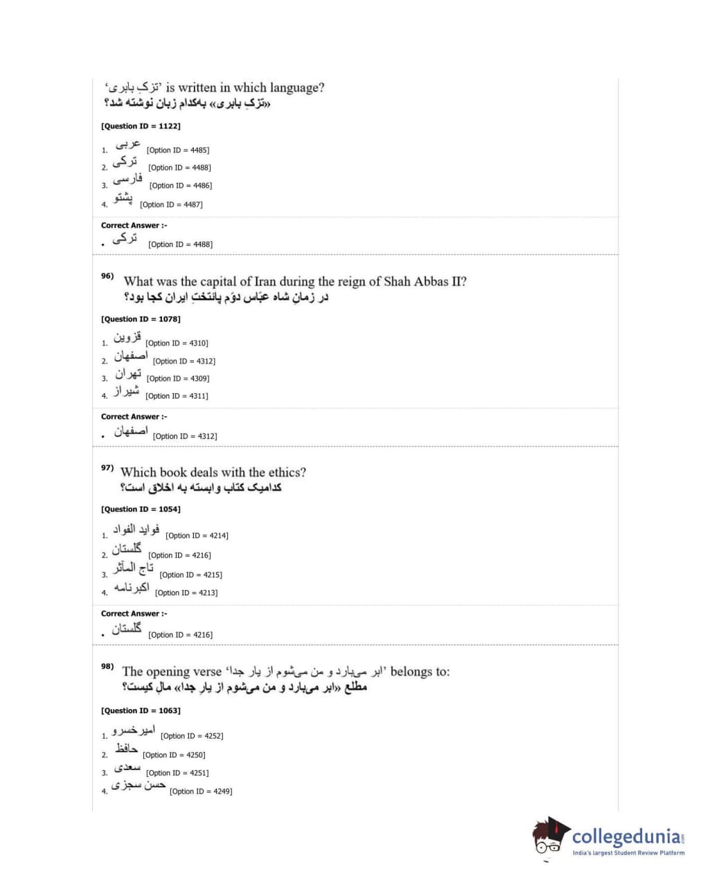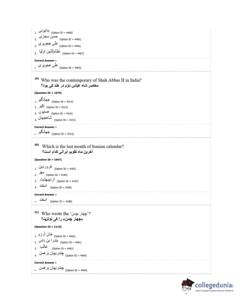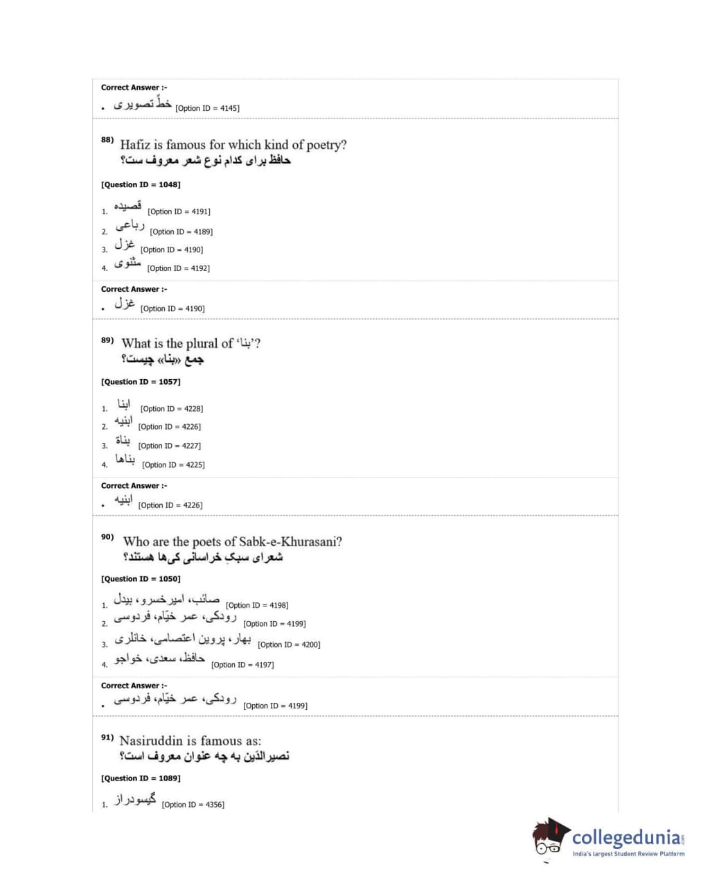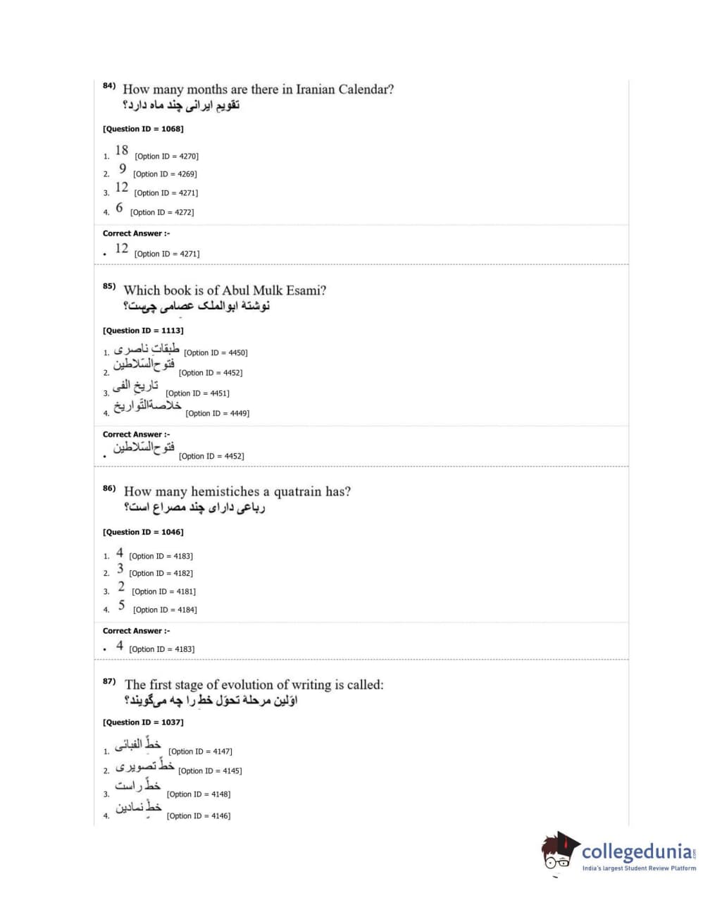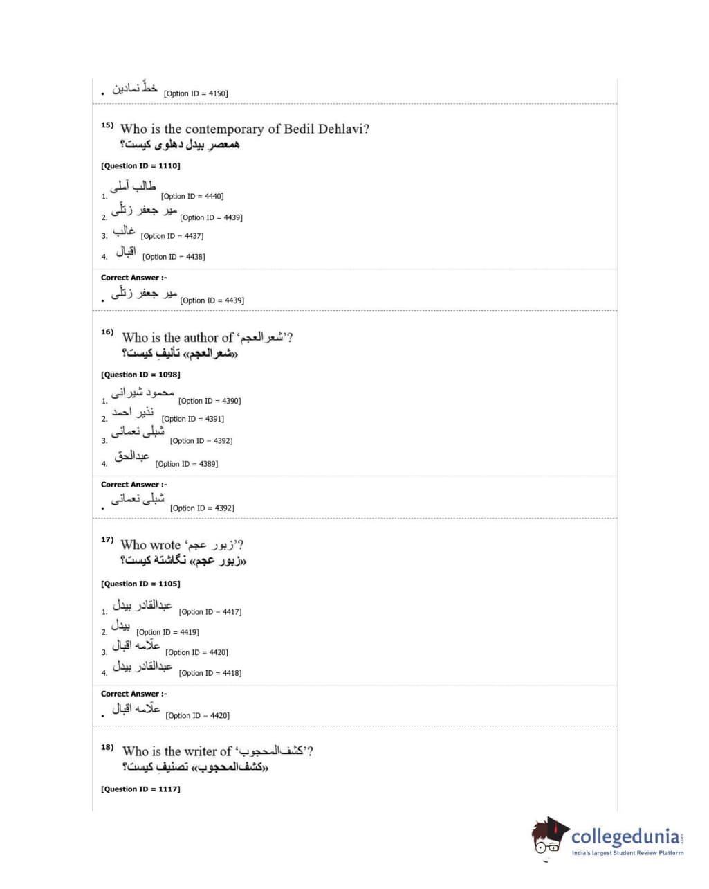 DUET 2018 M.A. Persian Question Paper with Answer Key PDF Shift 2