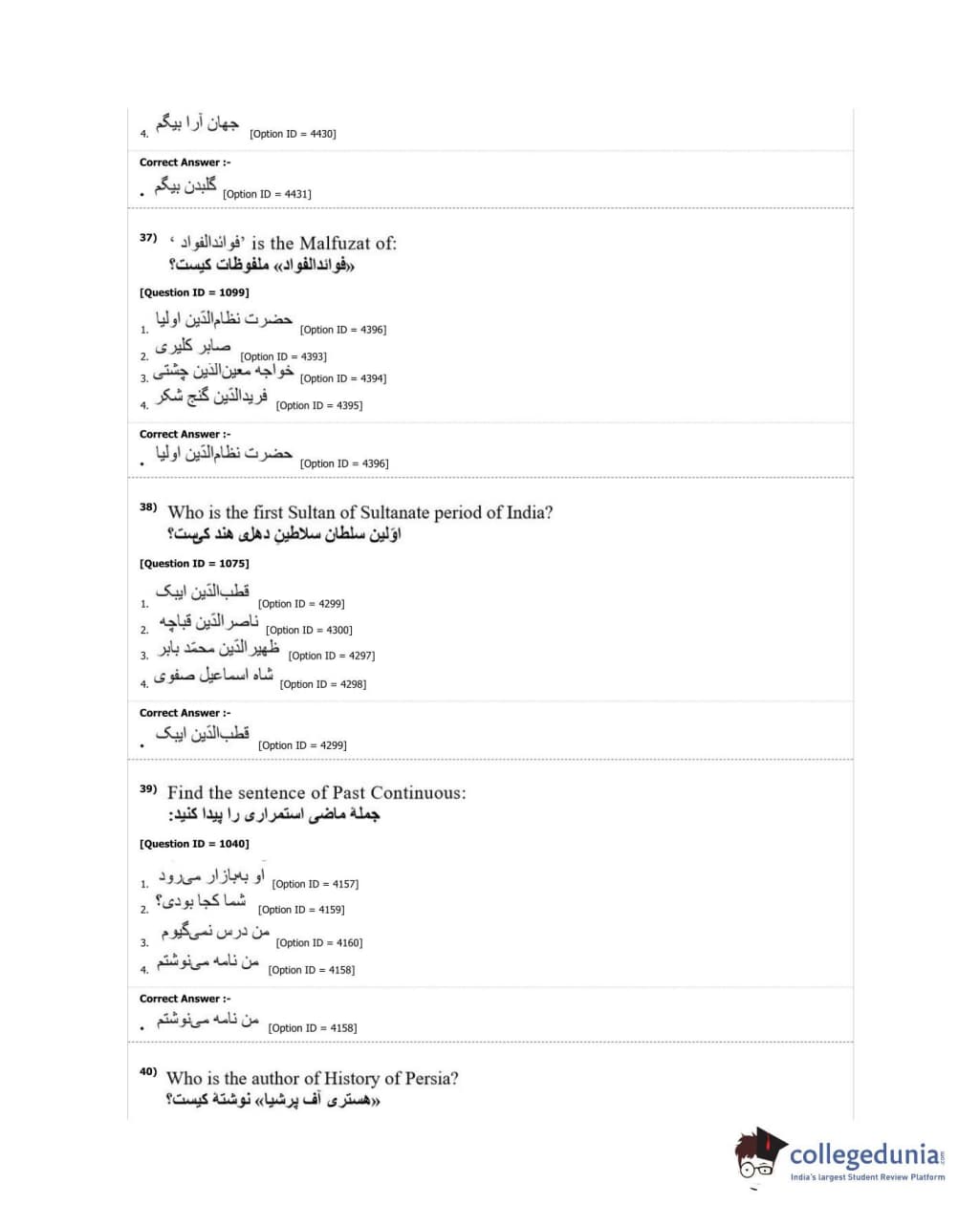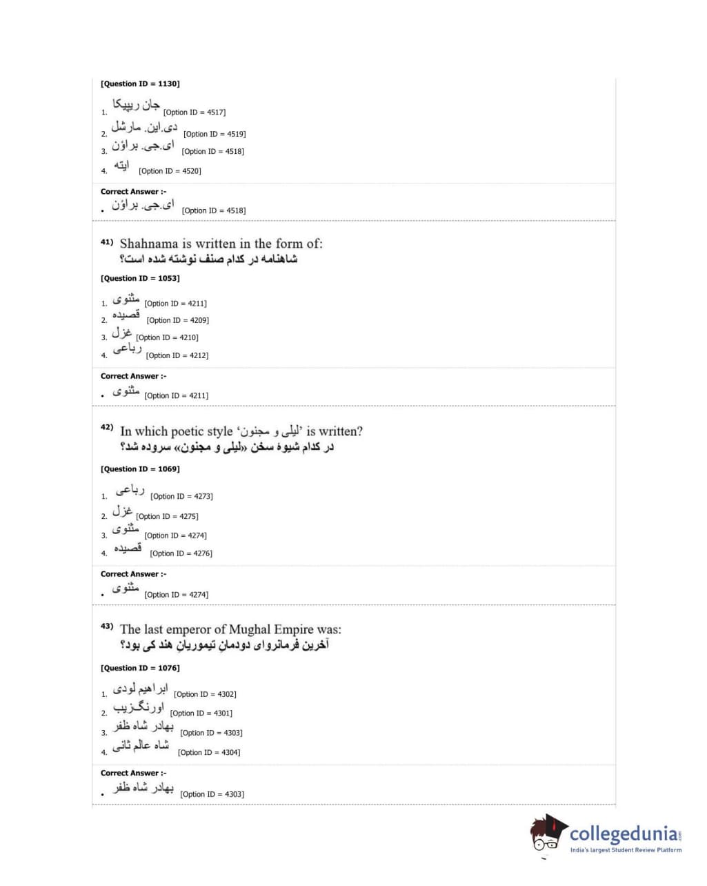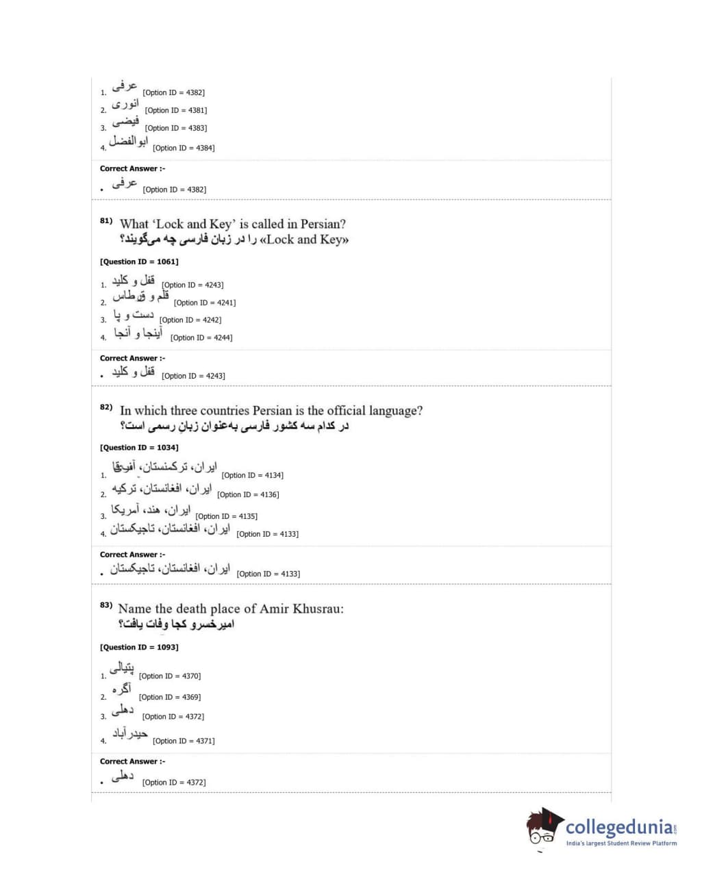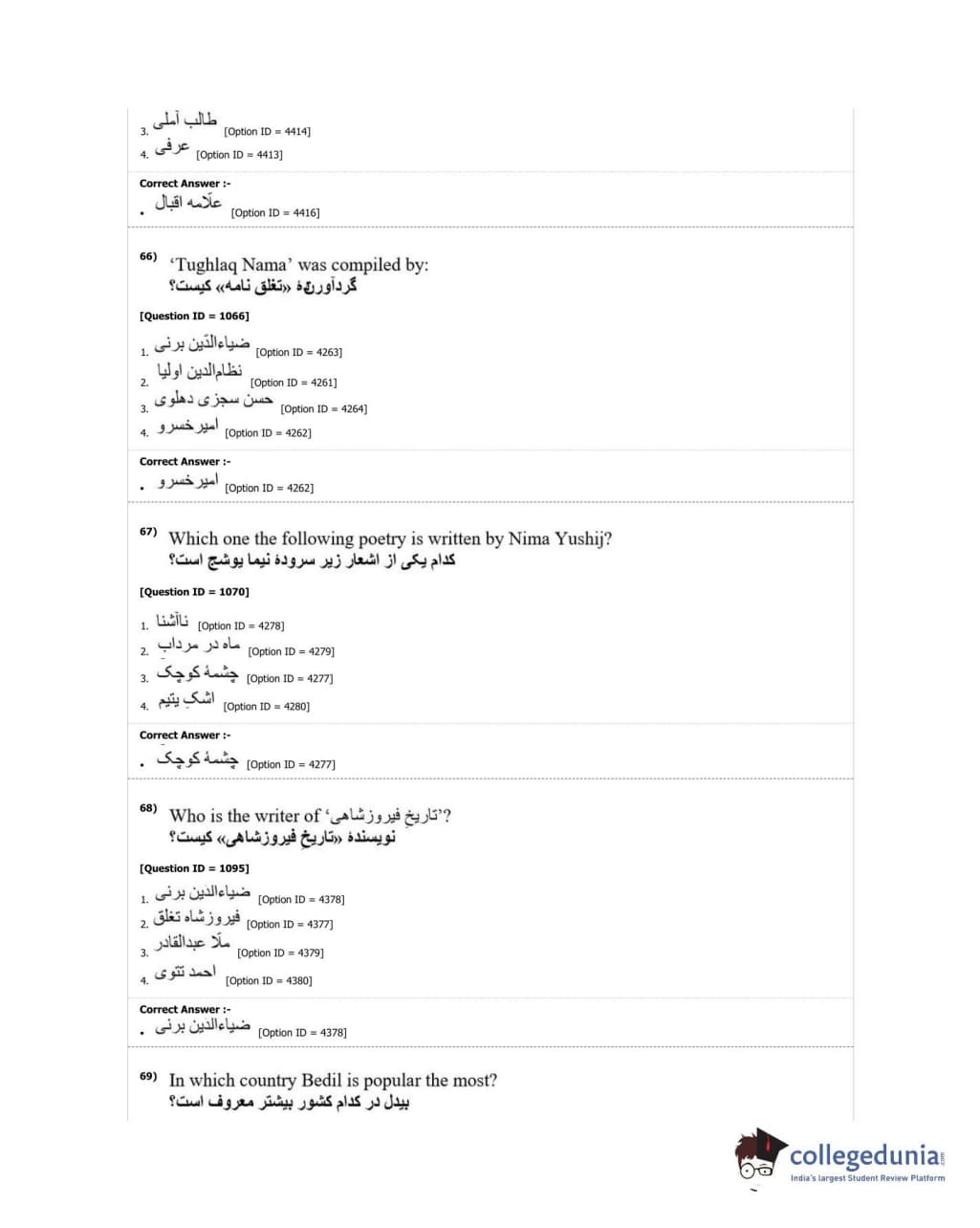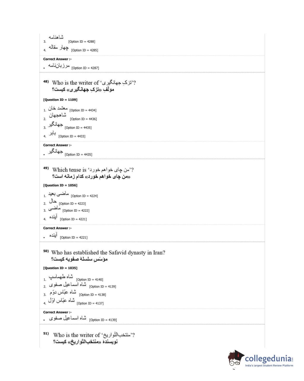 DUET 2018 M.A. Persian Question Paper with Answer Key PDF Shift 2
