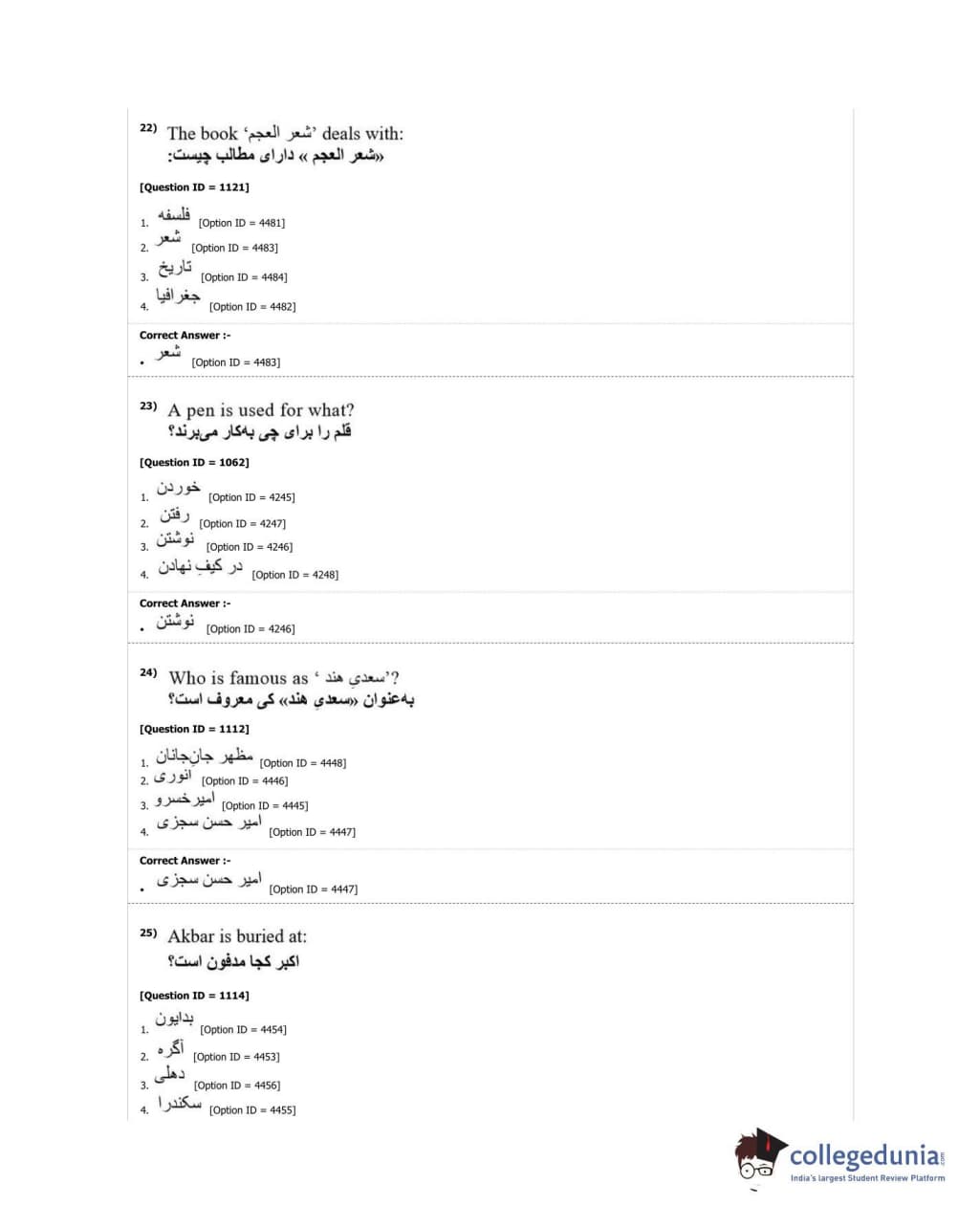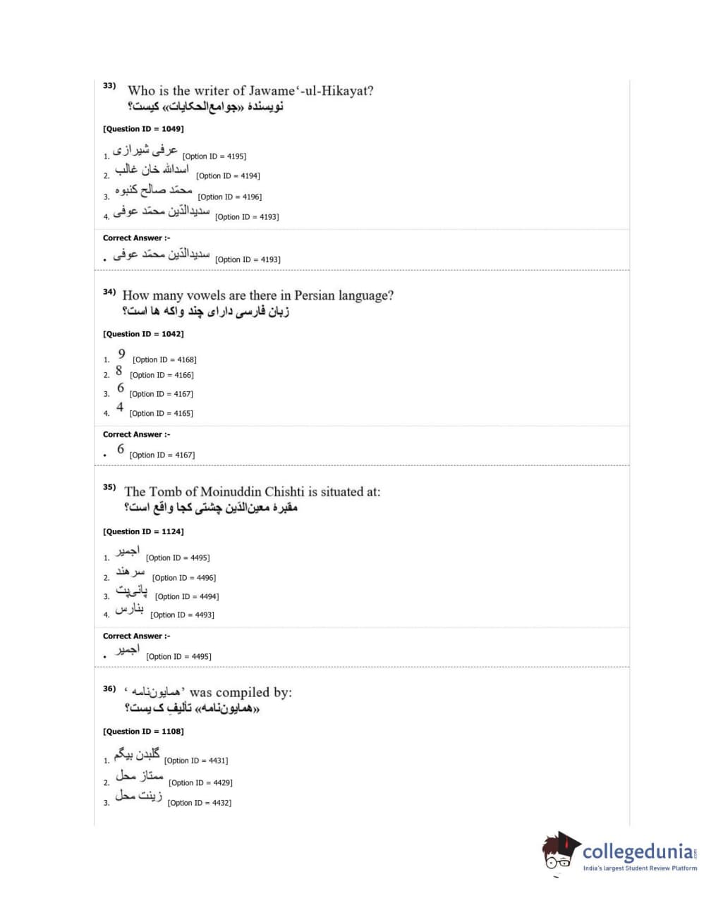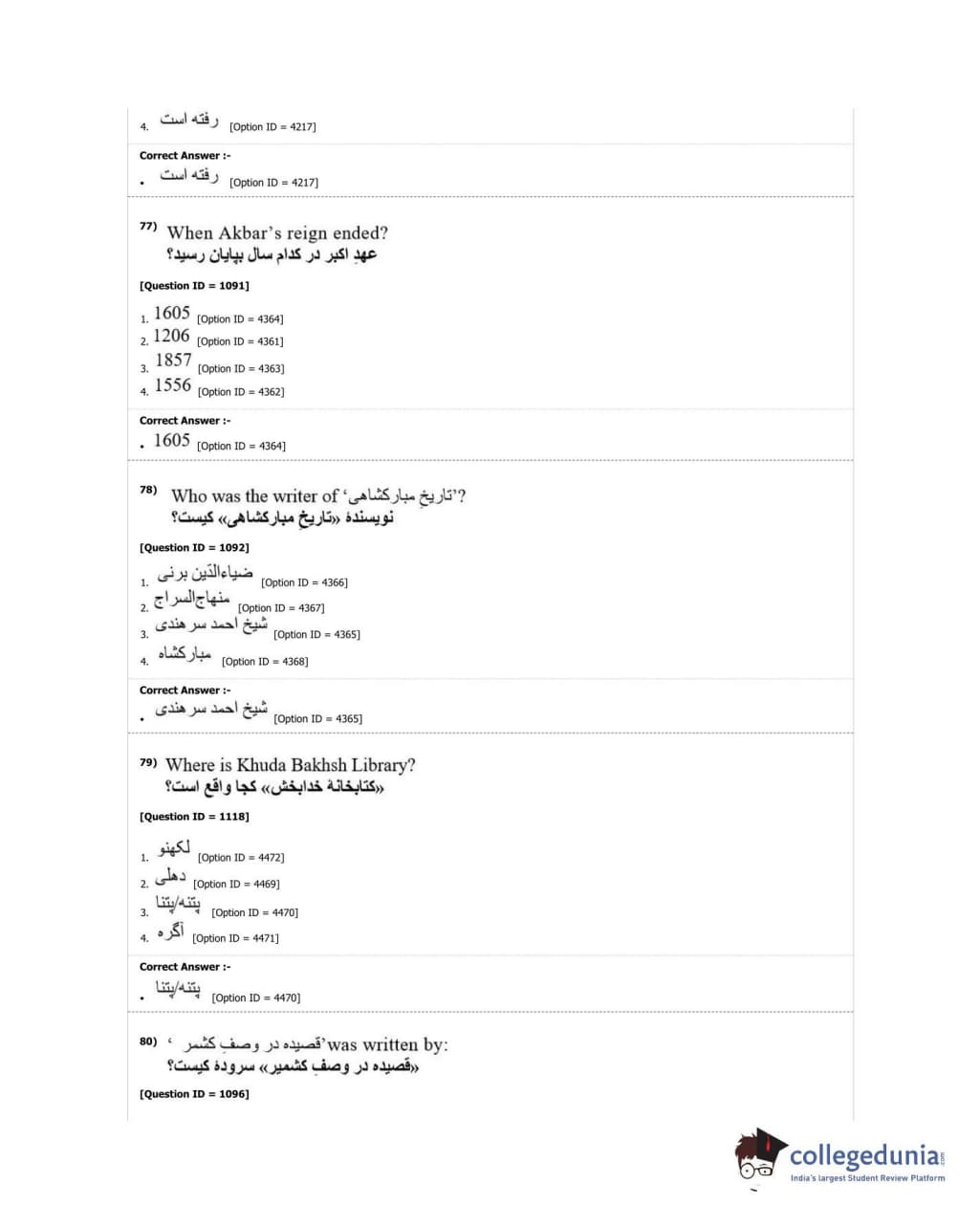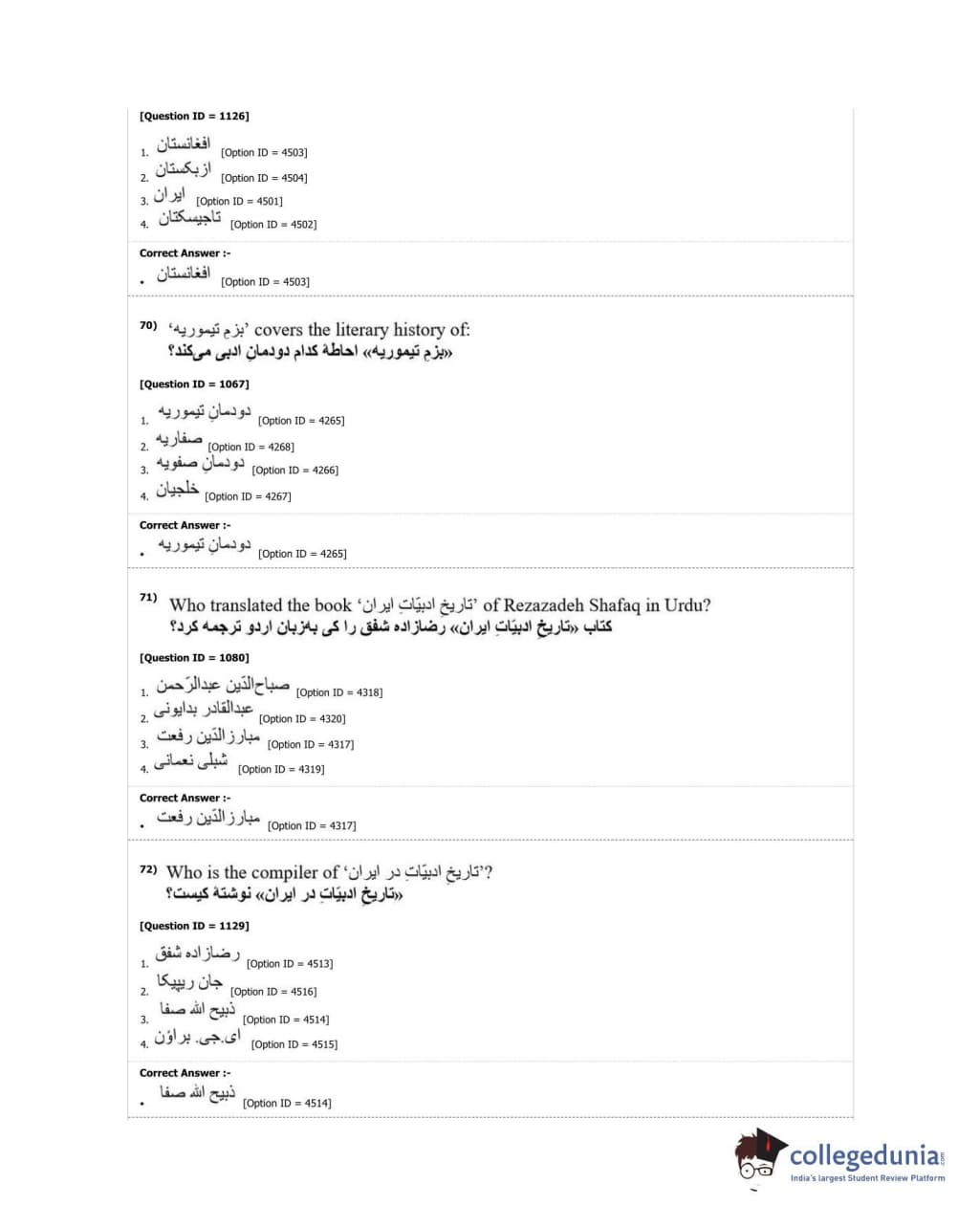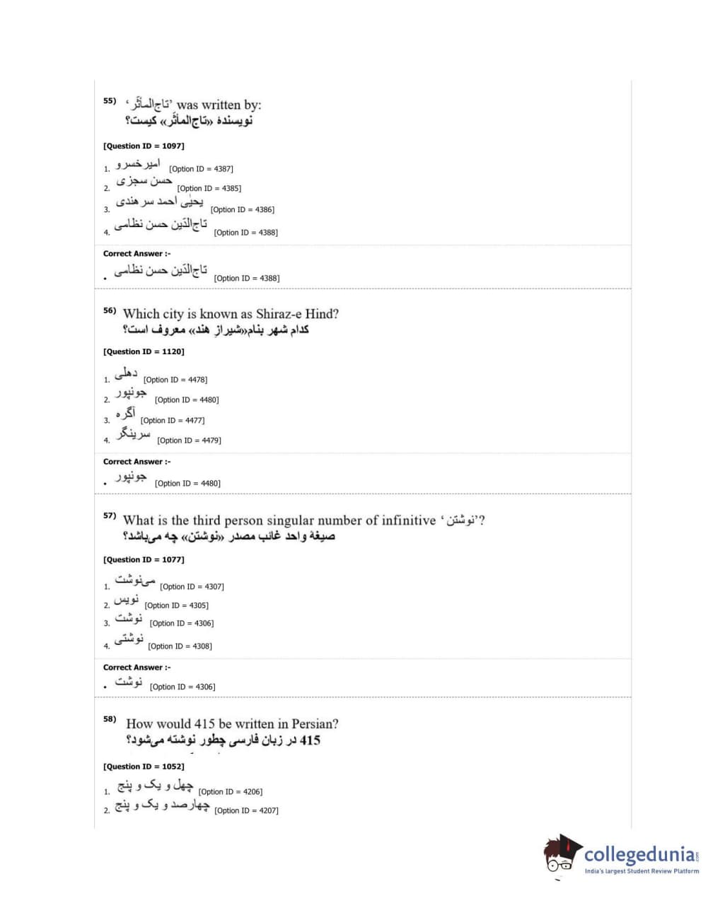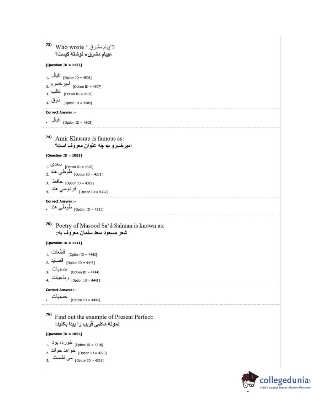 DUET 2018 M.A. Persian Question Paper with Answer Key PDF Shift 2
