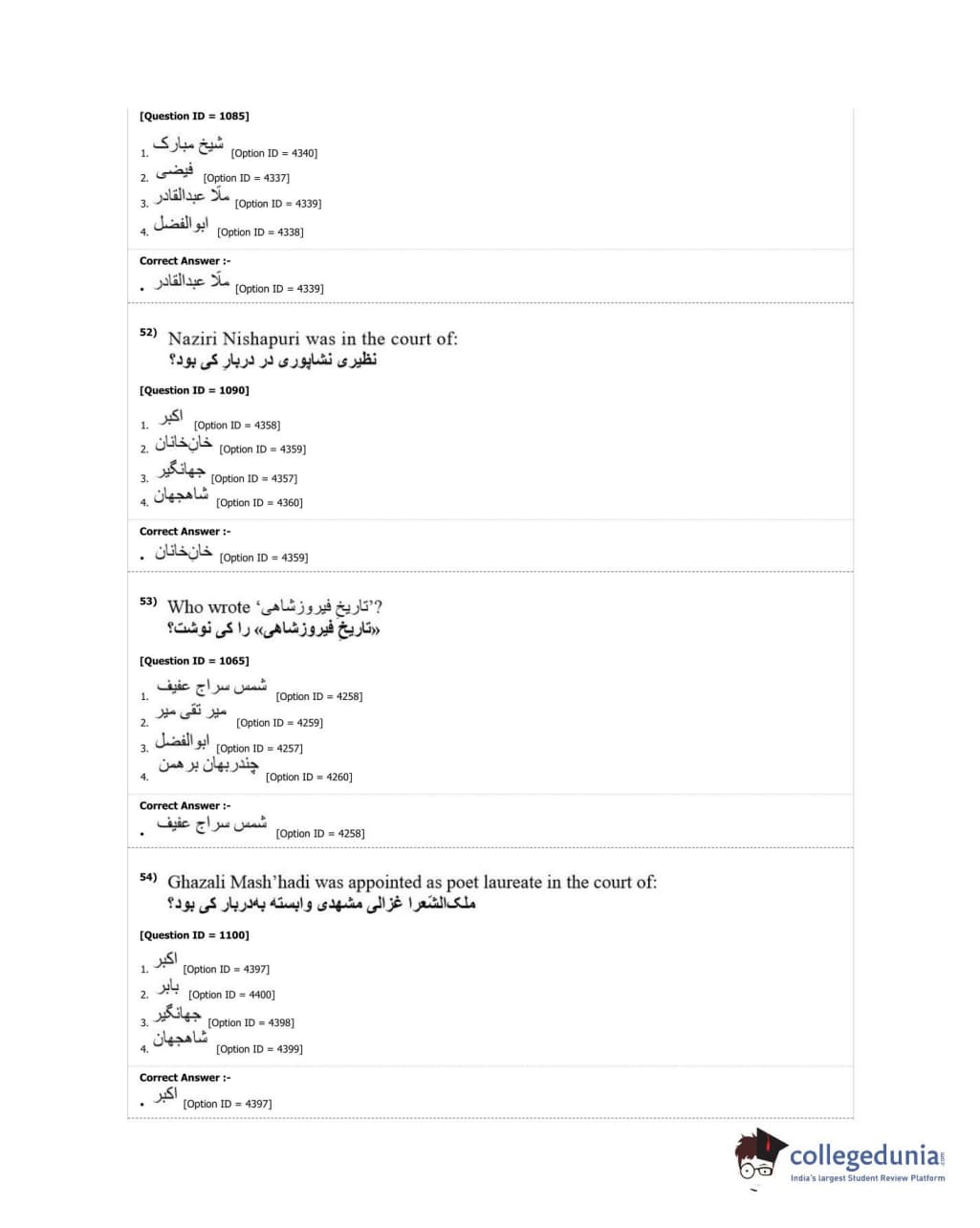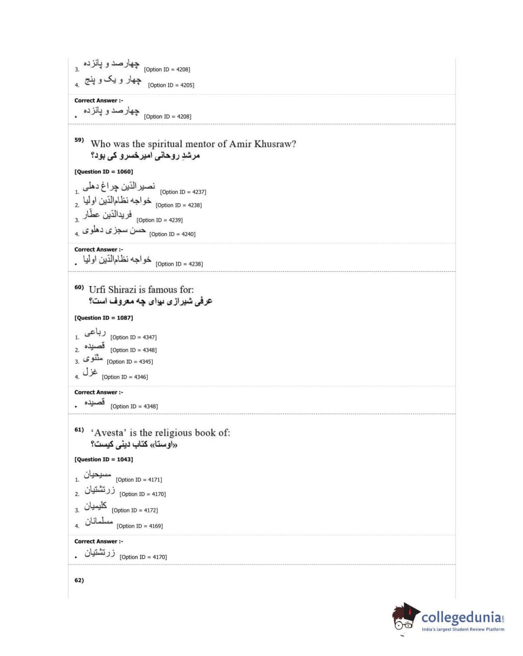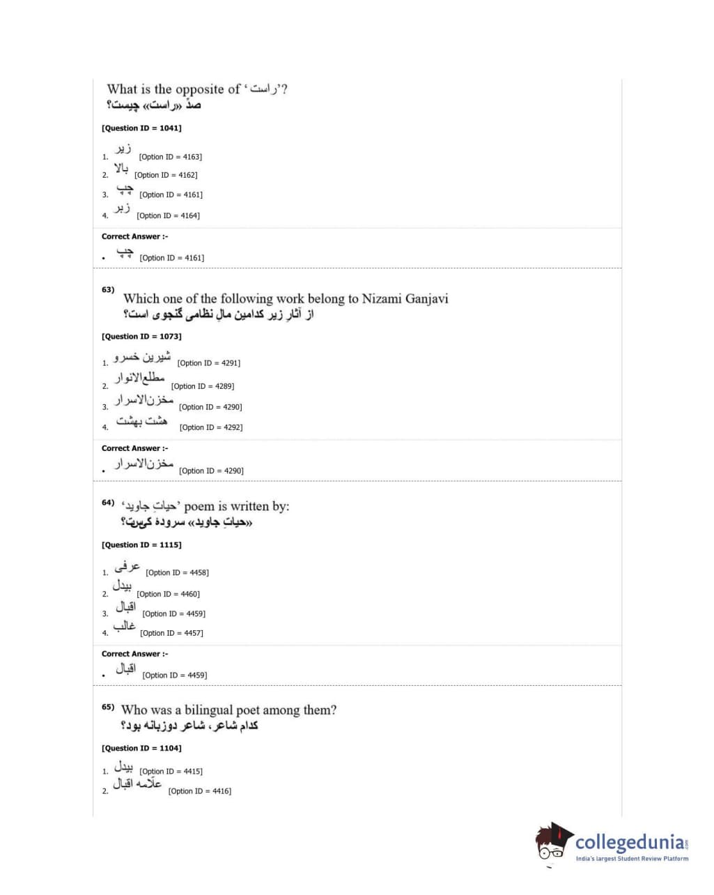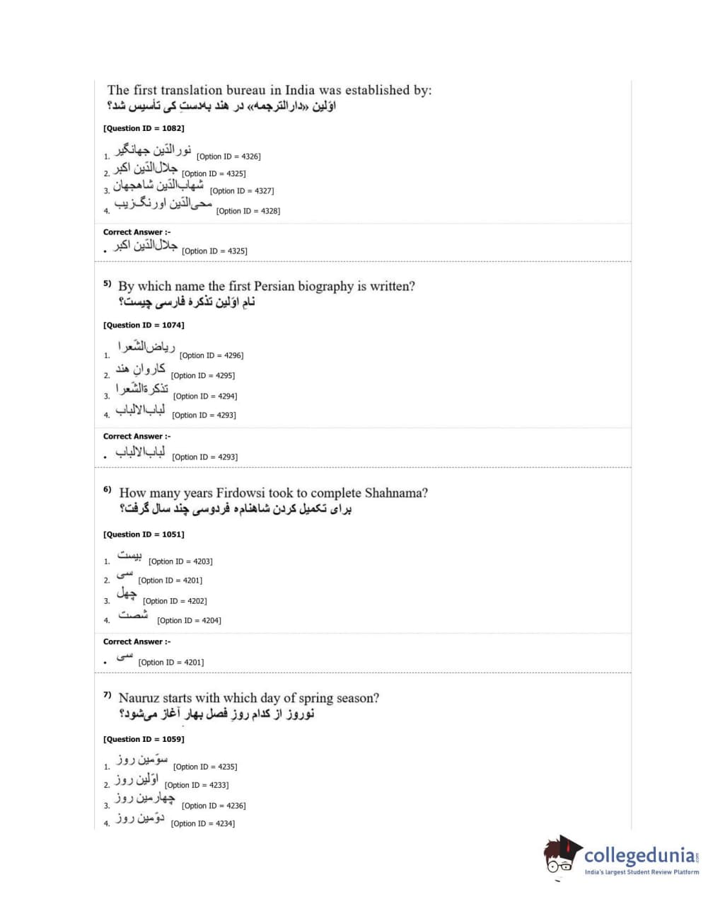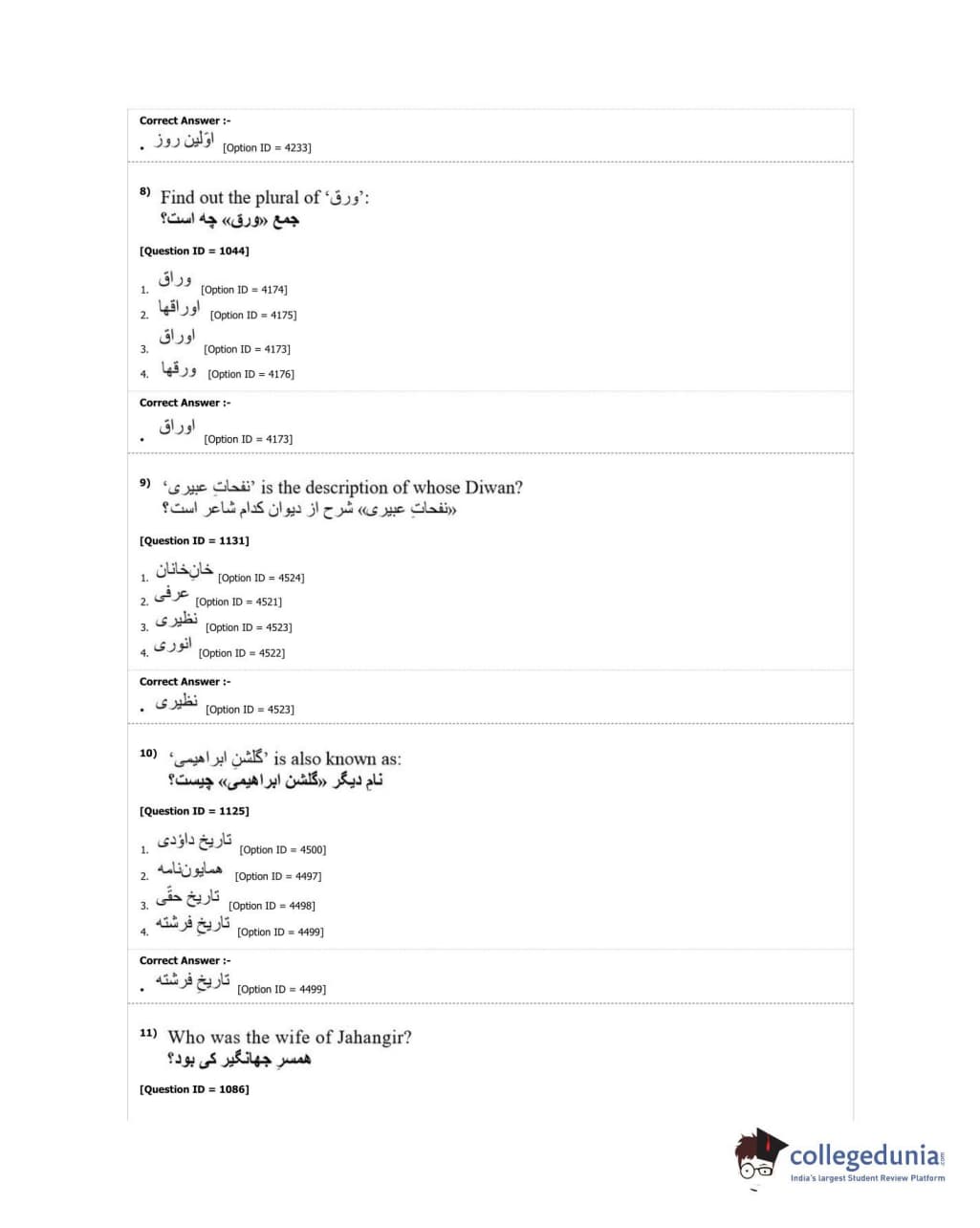 DUET 2018 M.A. Persian Question Paper with Answer Key PDF Shift 2