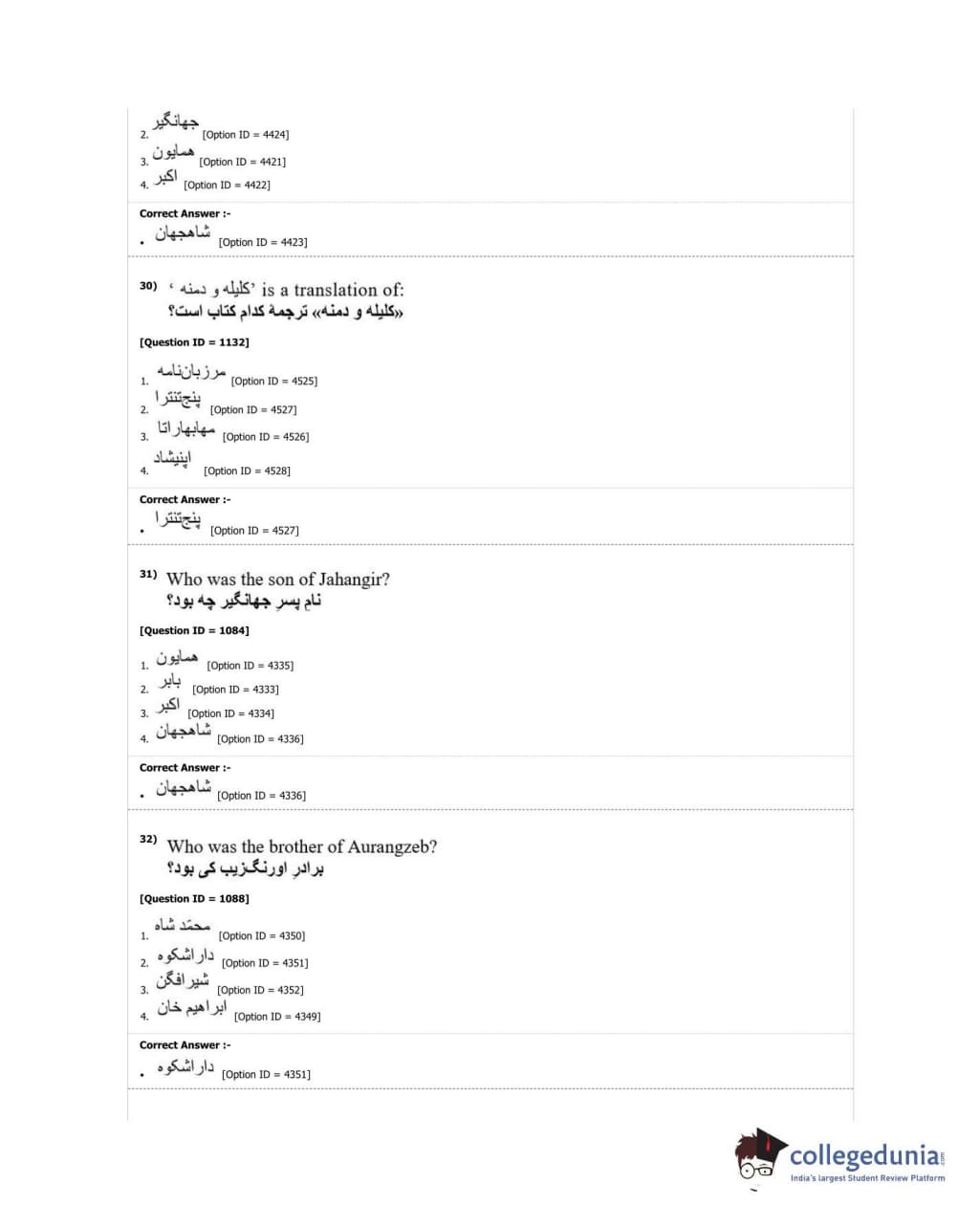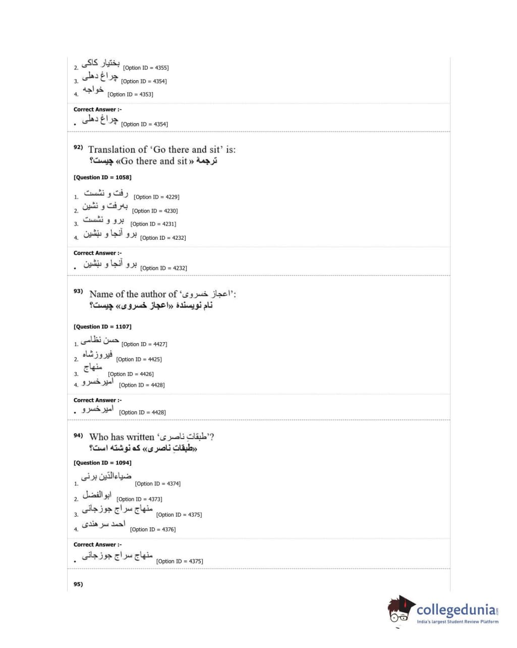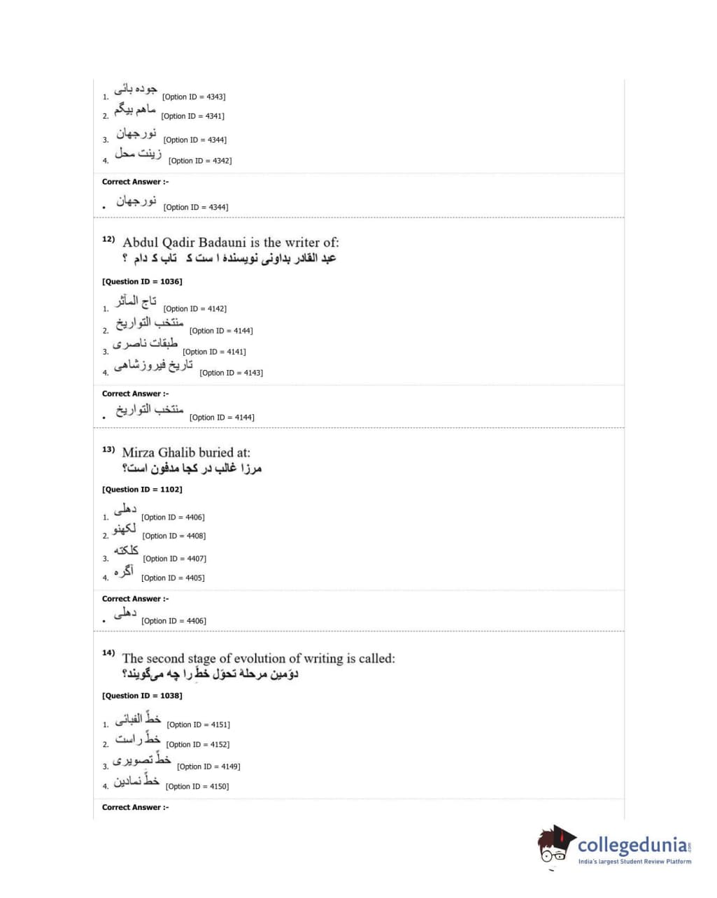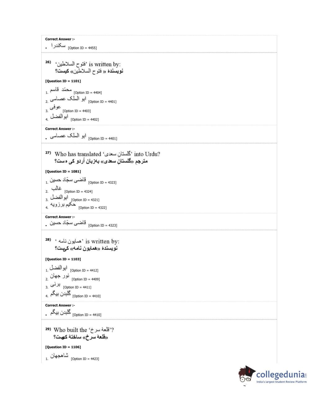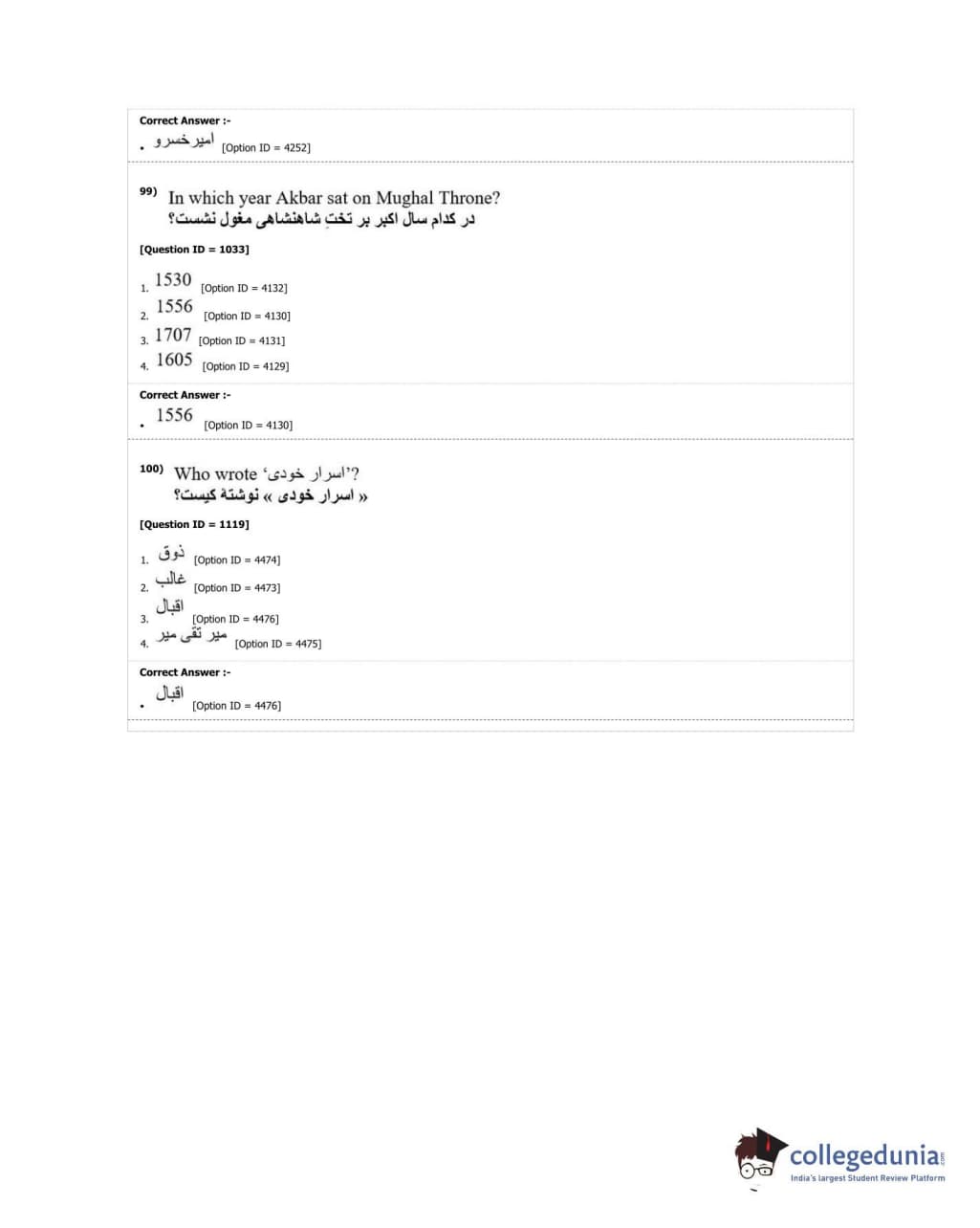 DUET 2018 M.A. Persian Question Paper with Answer Key PDF Shift 2