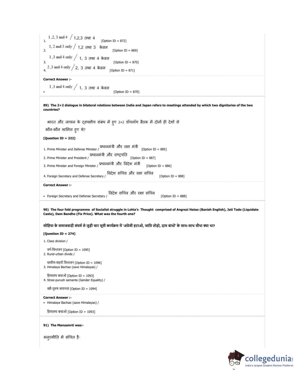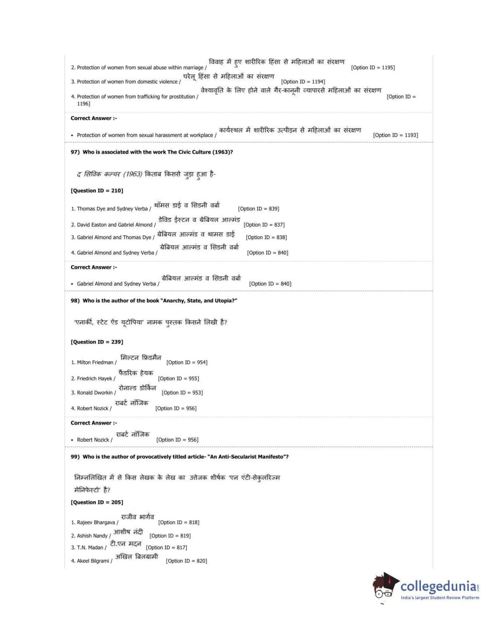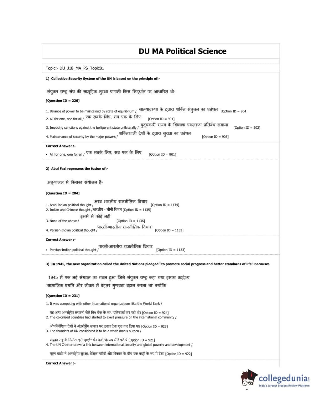 DUET 2018 M.A. Political Science Question paper with answer key pdf conducted on June 17, 2018 in Shift 2 is available for download. The exam was successfully organized by University of Delhi. The question paper comprised a total of 100 questions.