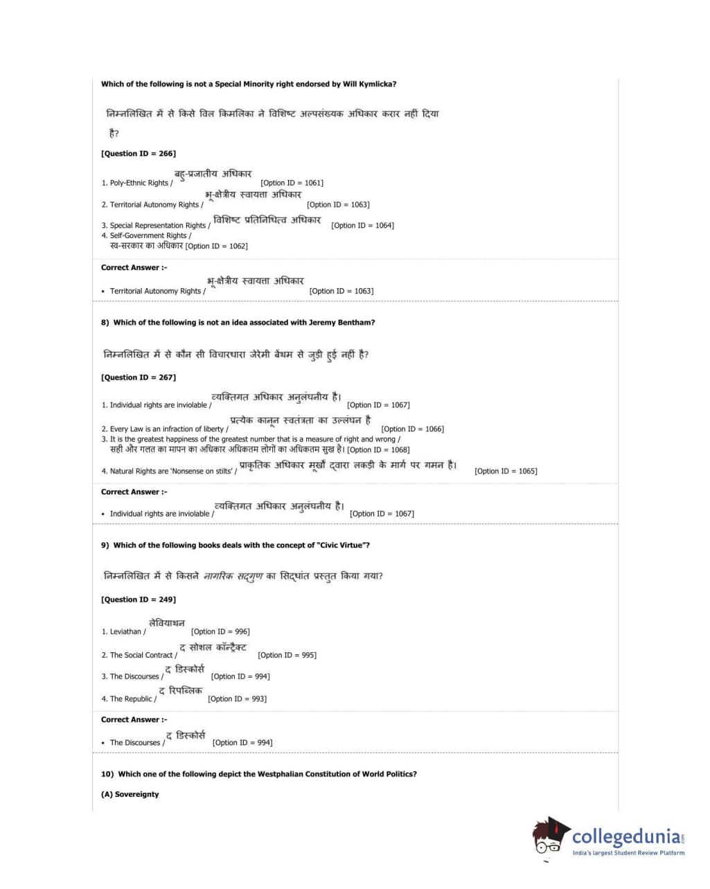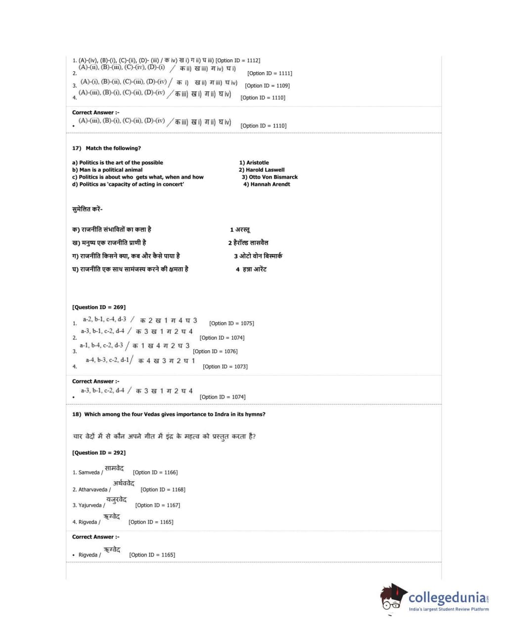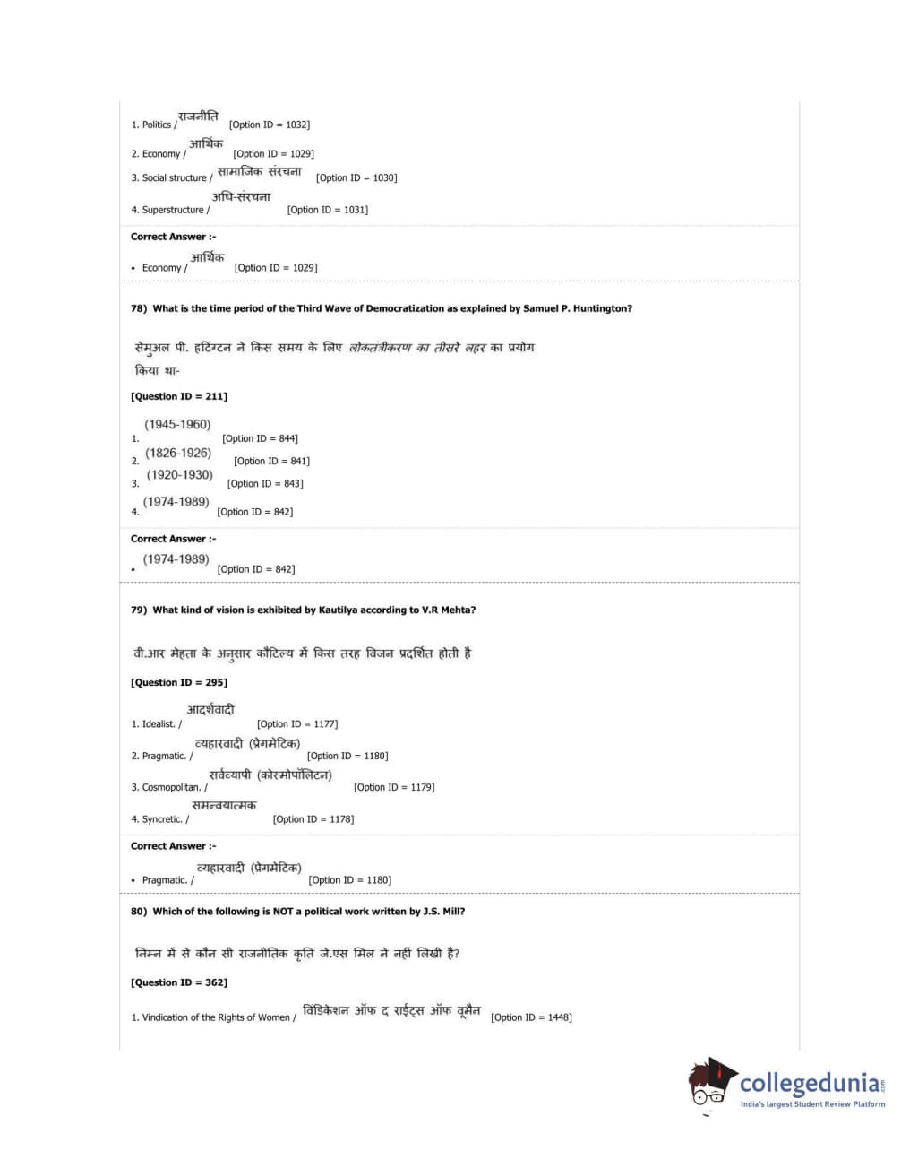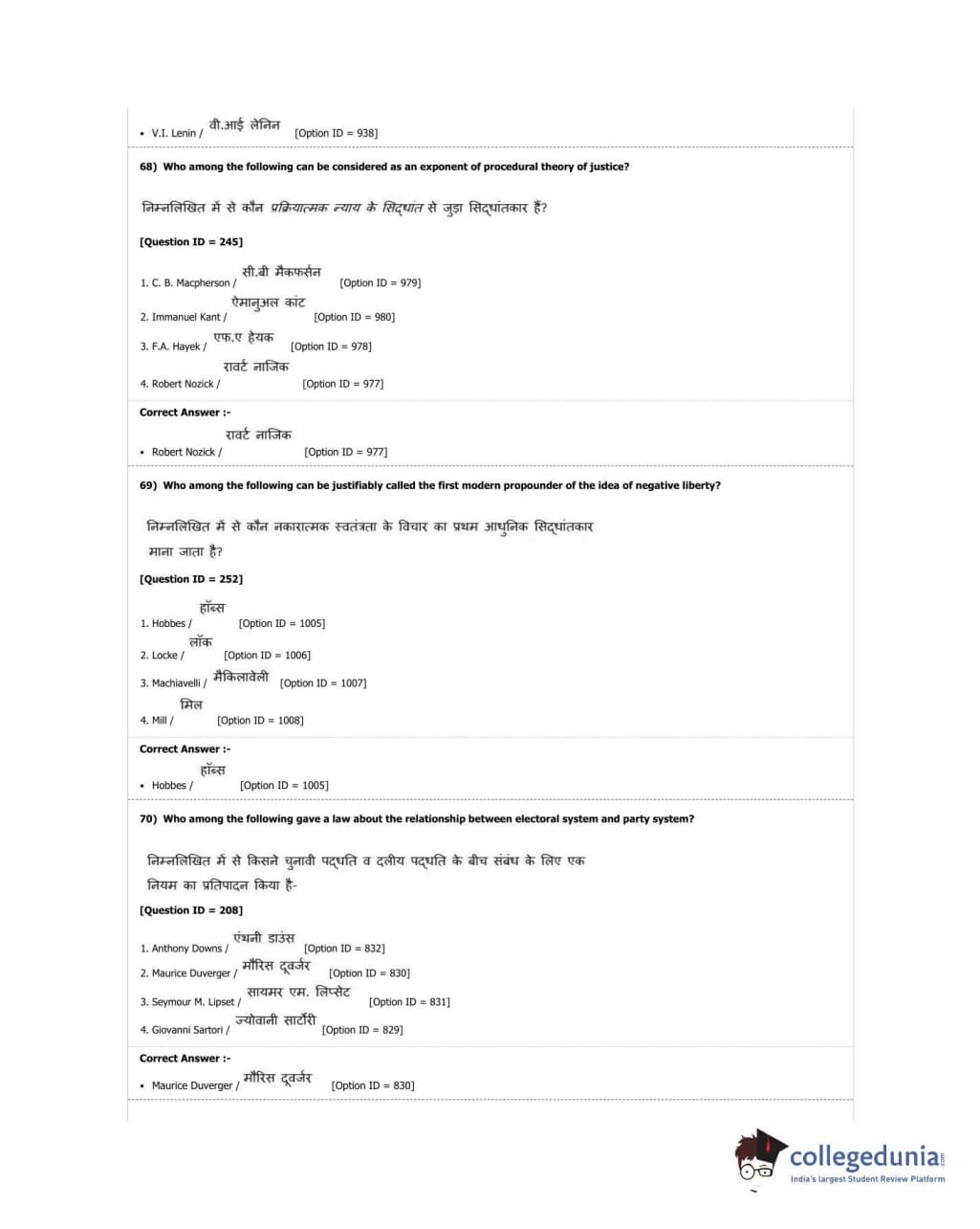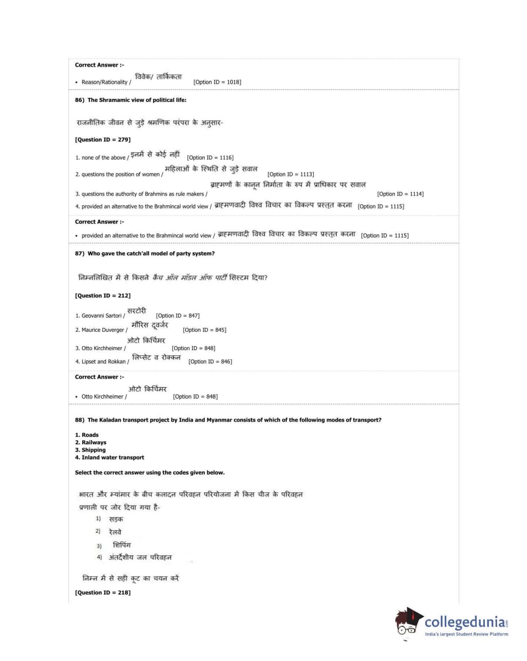 DUET 2018 M.A. Political Science Question Paper with Answer Key PDF Shift 2
