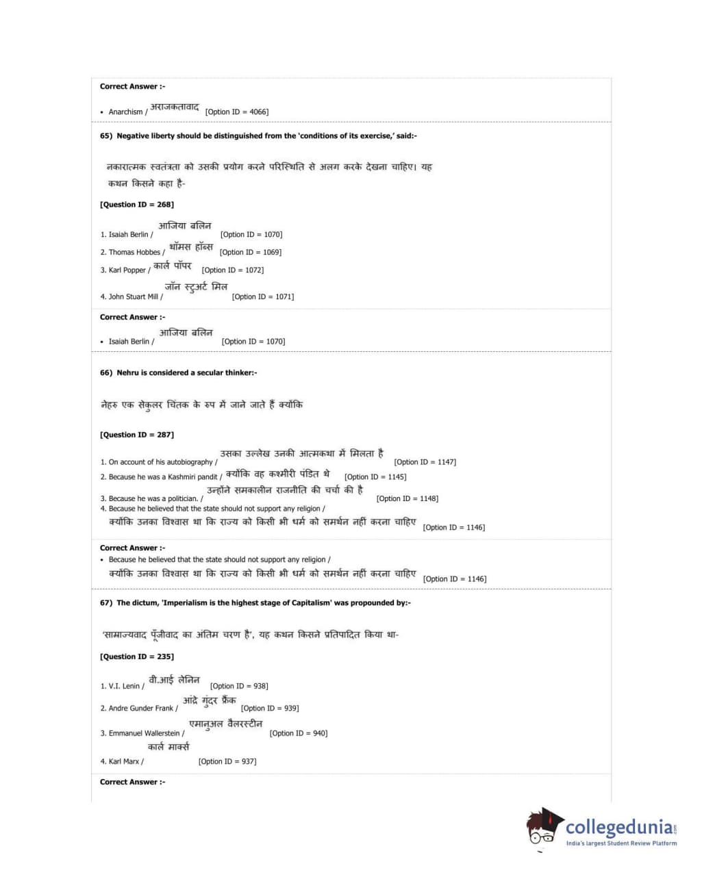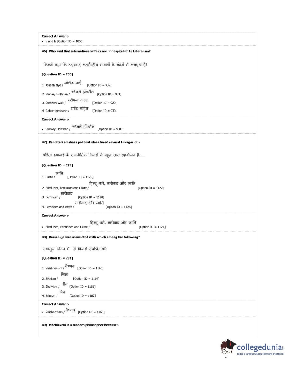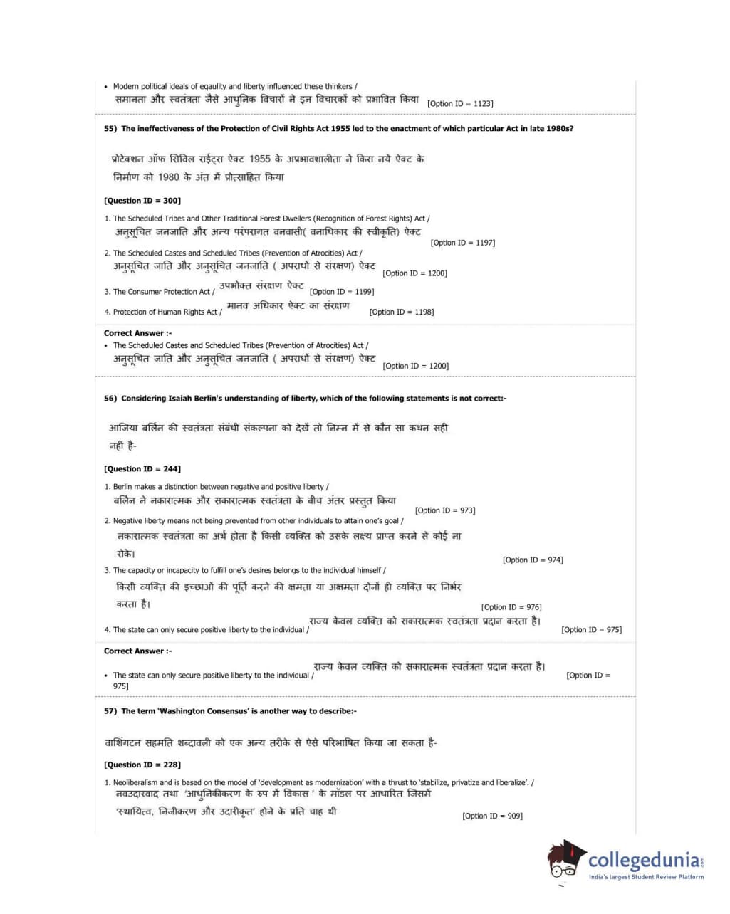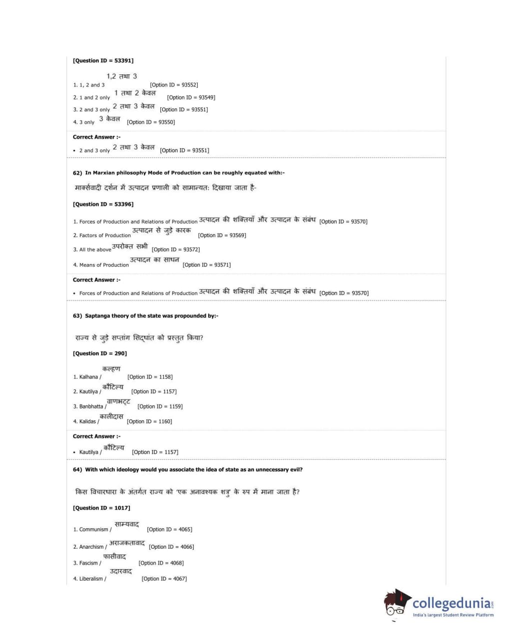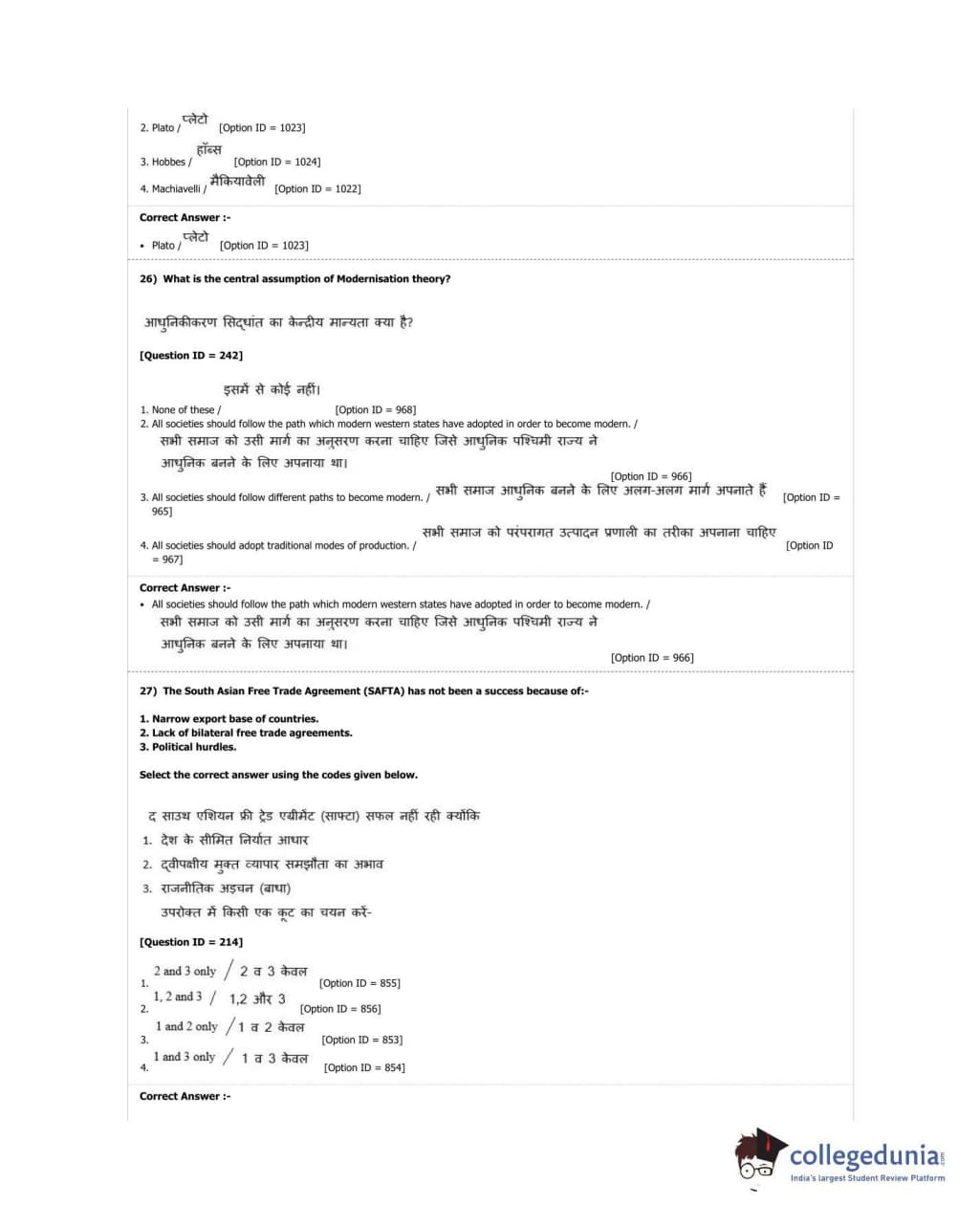 DUET 2018 M.A. Political Science Question Paper with Answer Key PDF Shift 2
