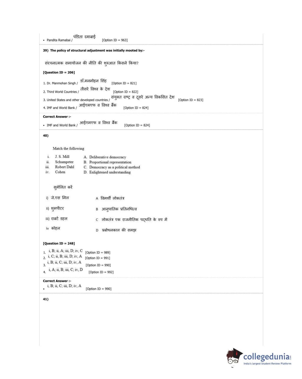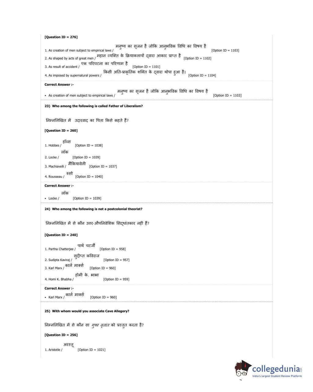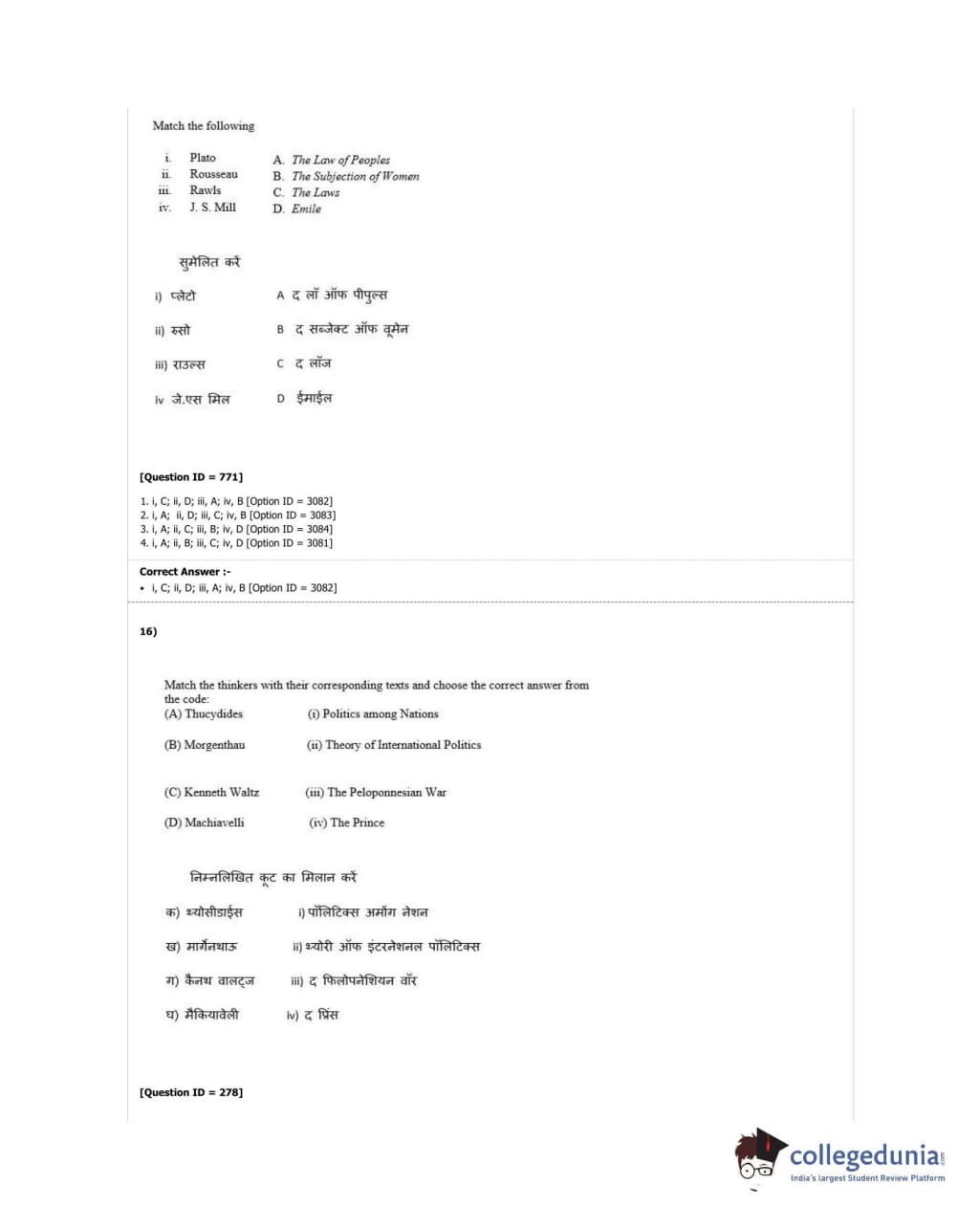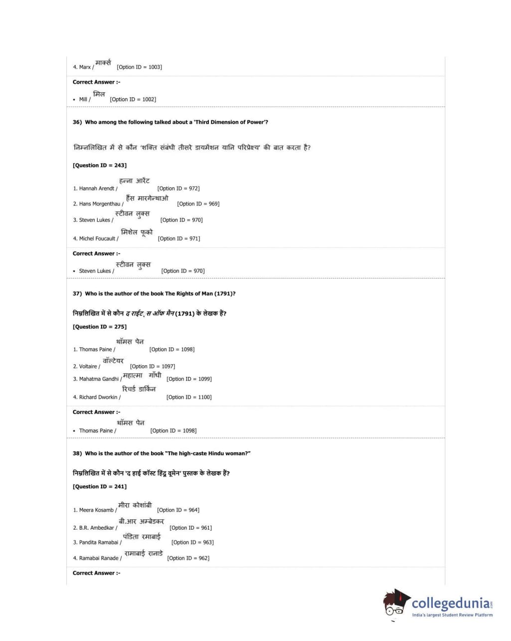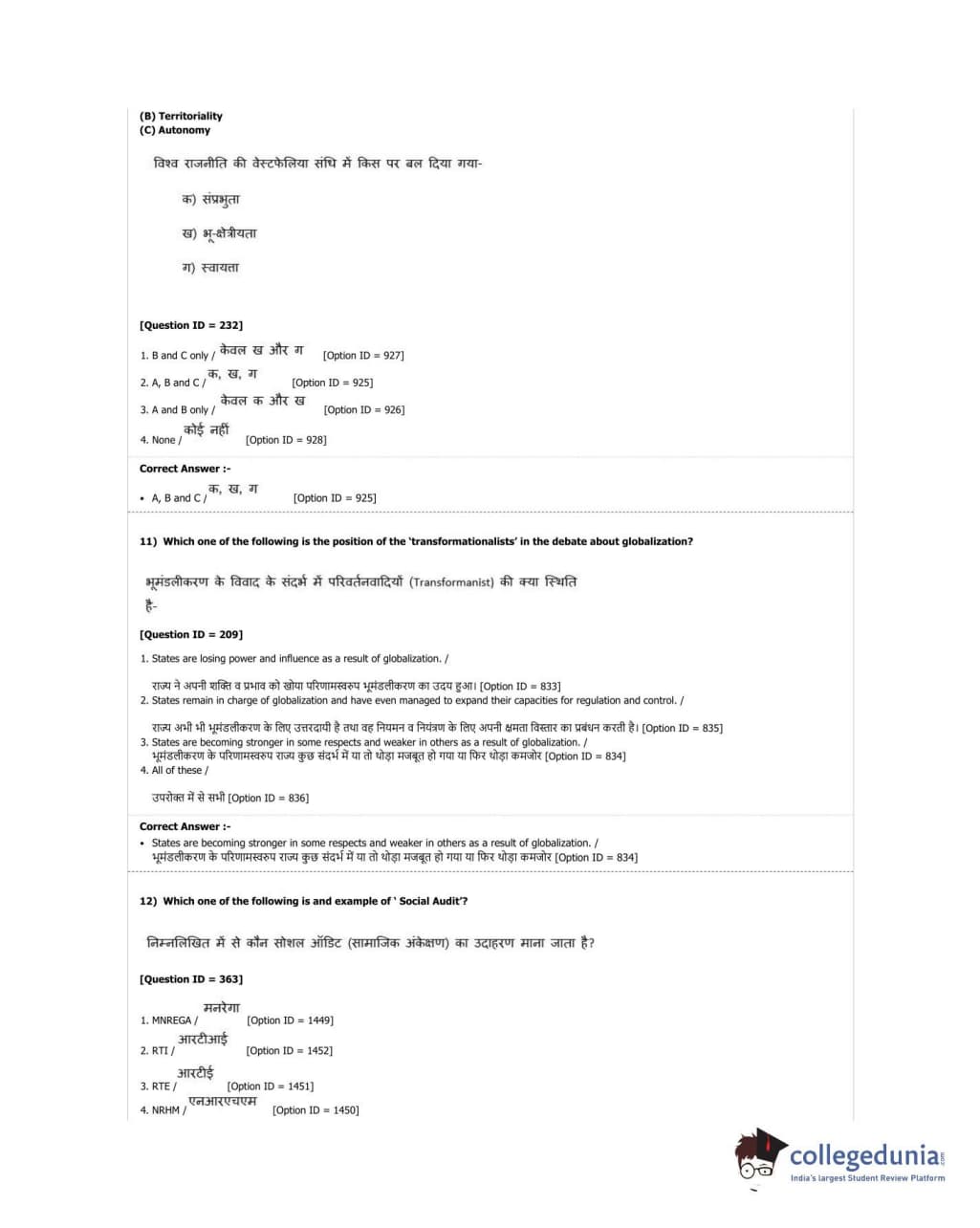 DUET 2018 M.A. Political Science Question Paper with Answer Key PDF Shift 2