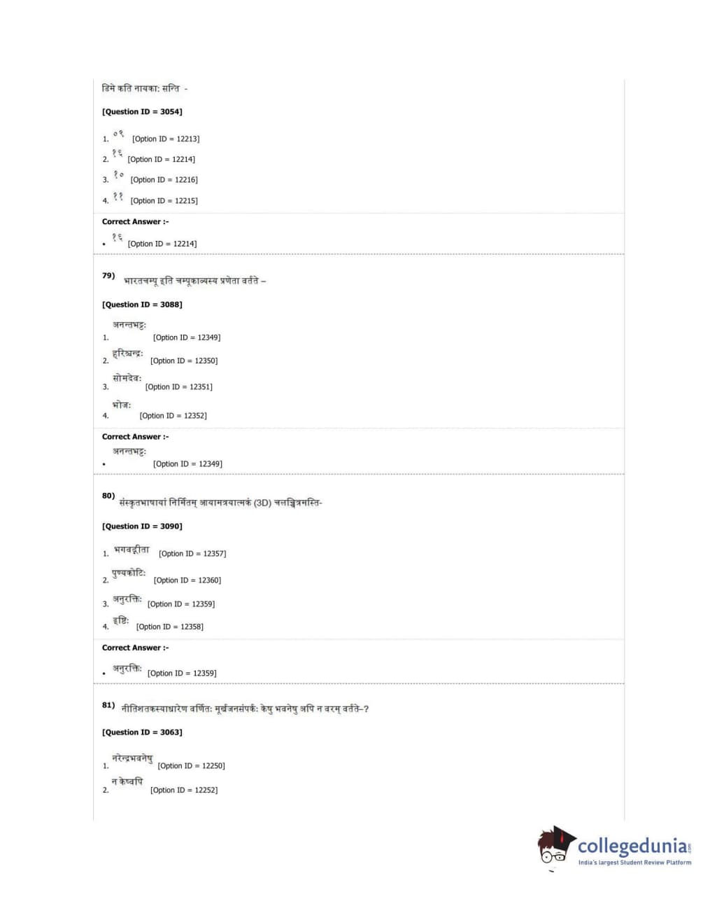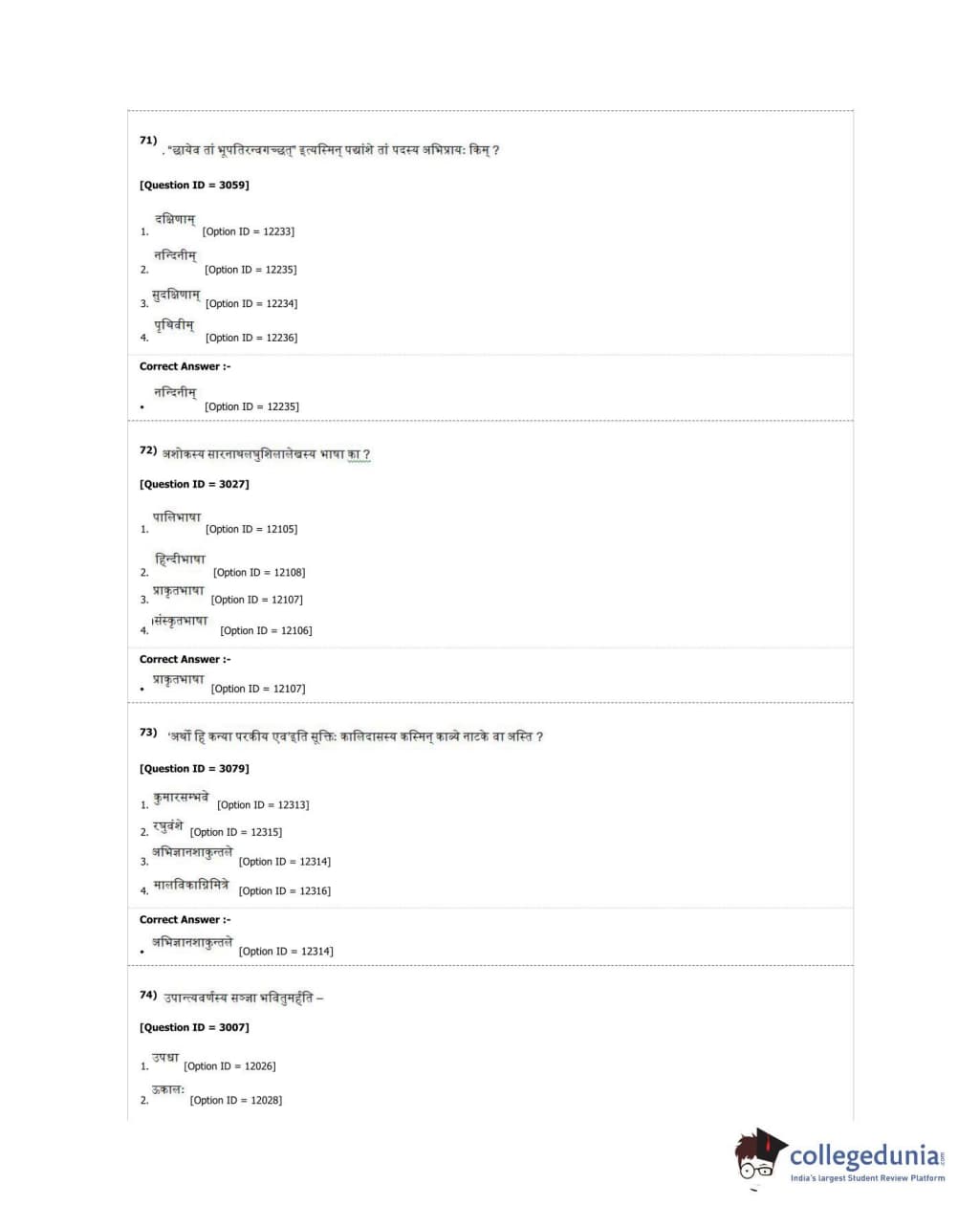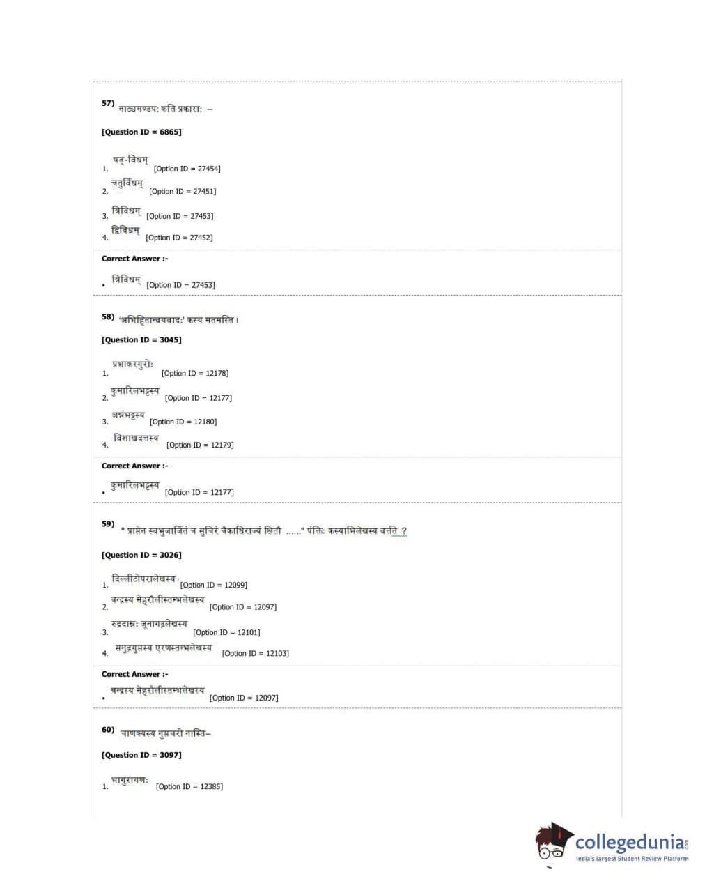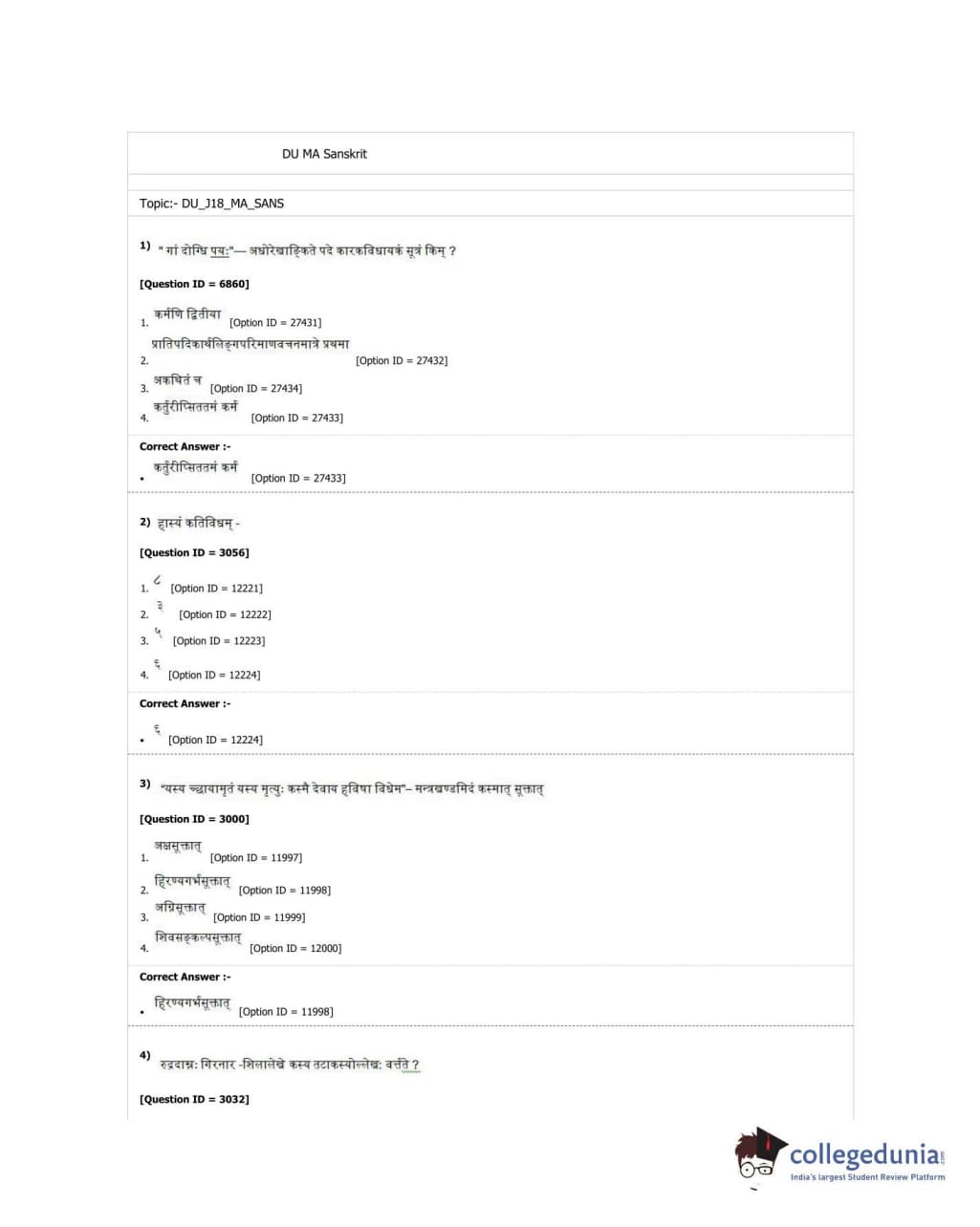DUET 2018 M.A. Sanskrit Question paper with answer key pdf conducted on June 18, 2018 in Shift 2 is available for download. The exam was successfully organized by University of Delhi. The question paper comprised a total of 100 questions.