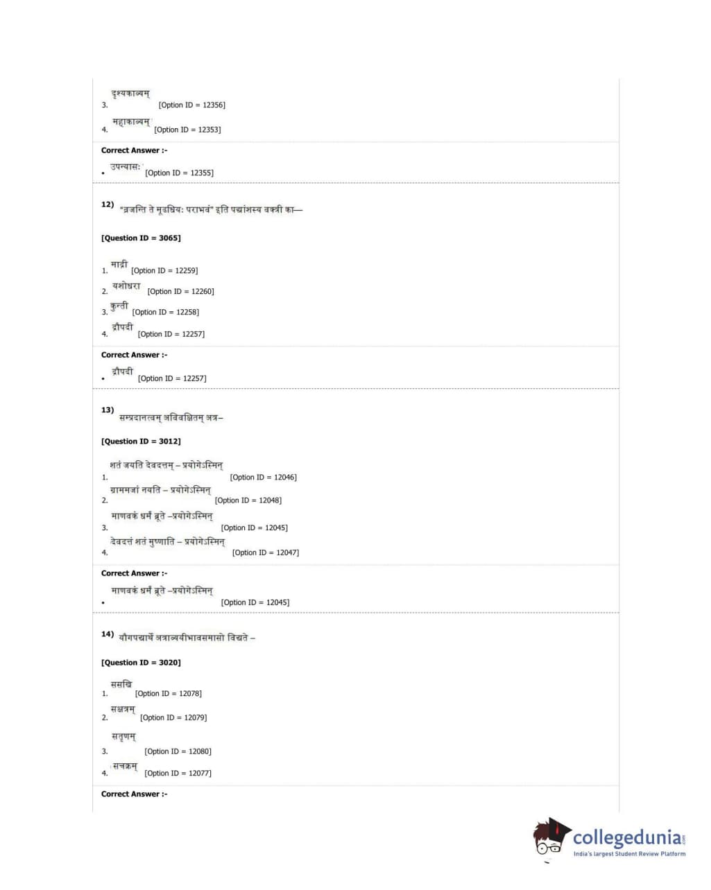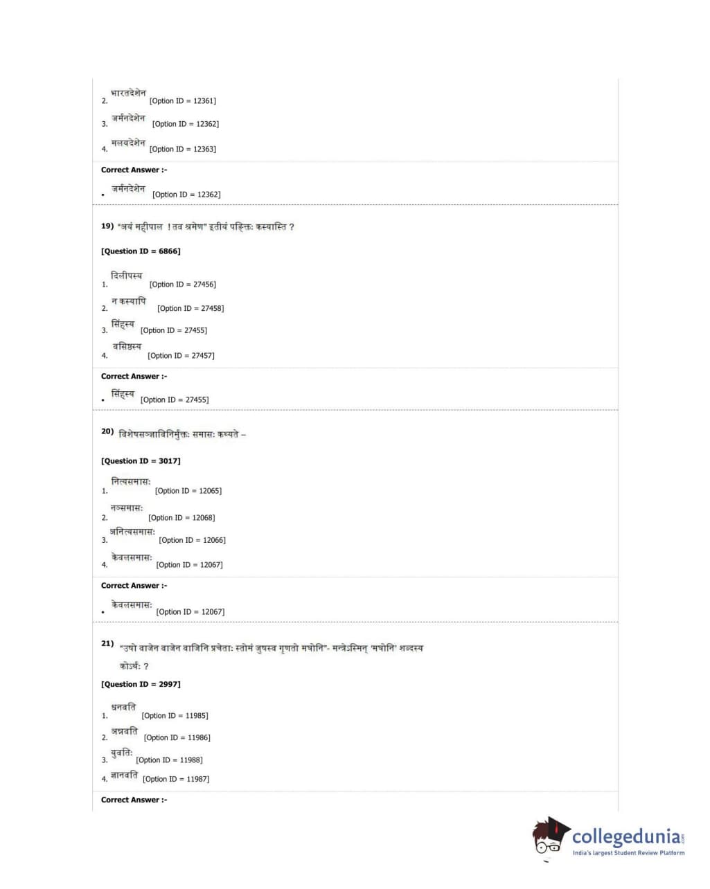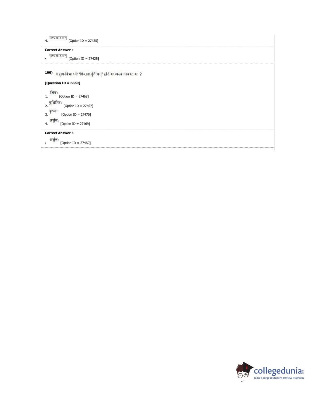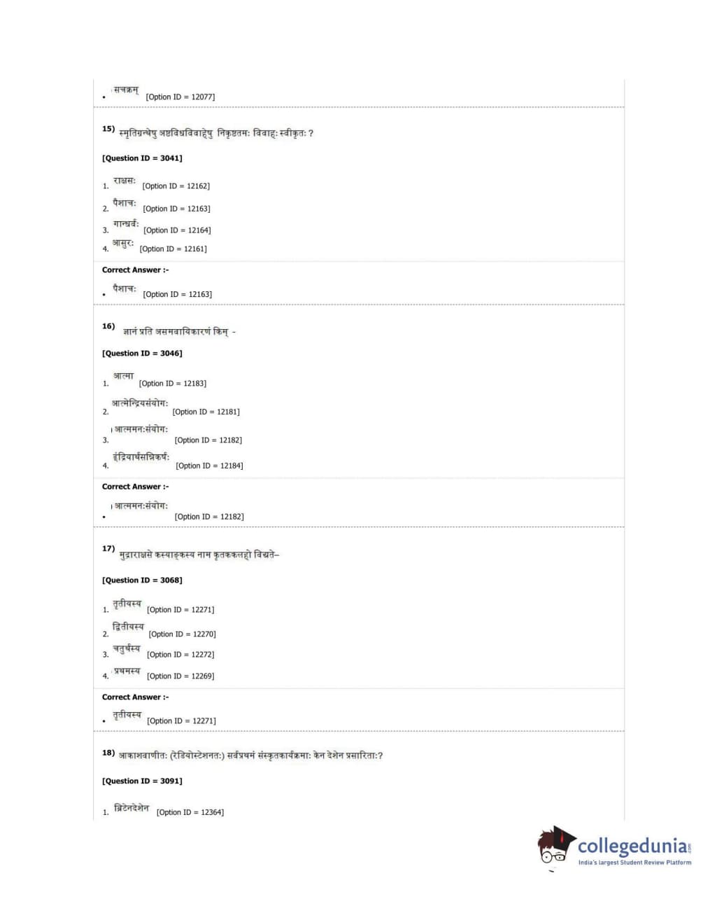 DUET 2018 M.A. Sanskrit Question Paper with Answer Key PDF Shift 2