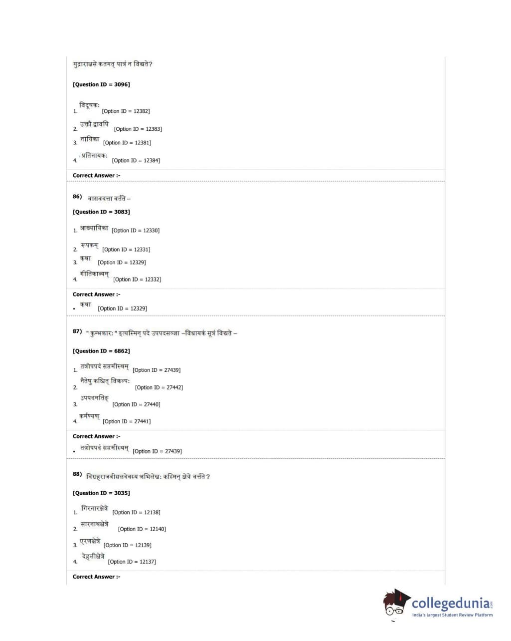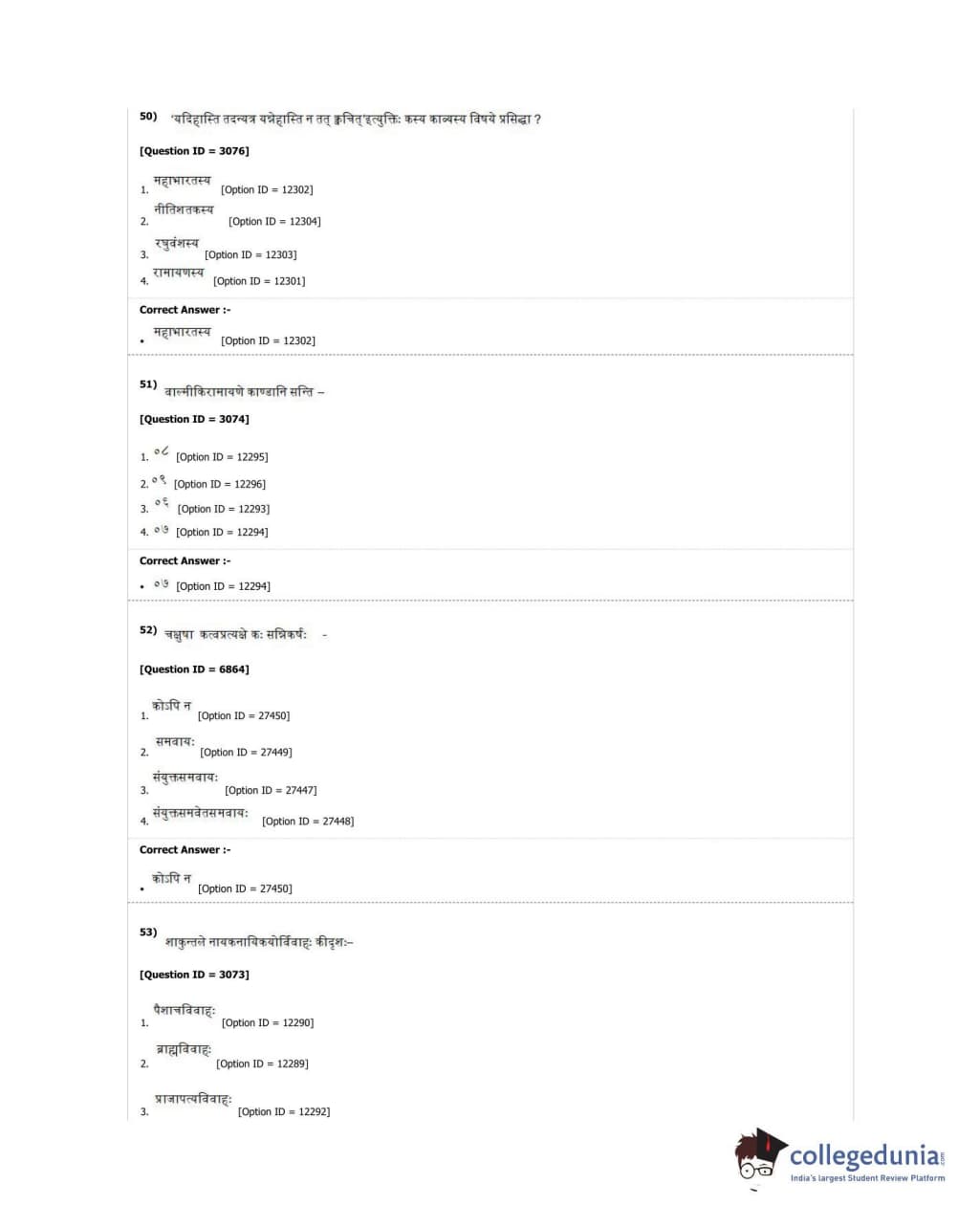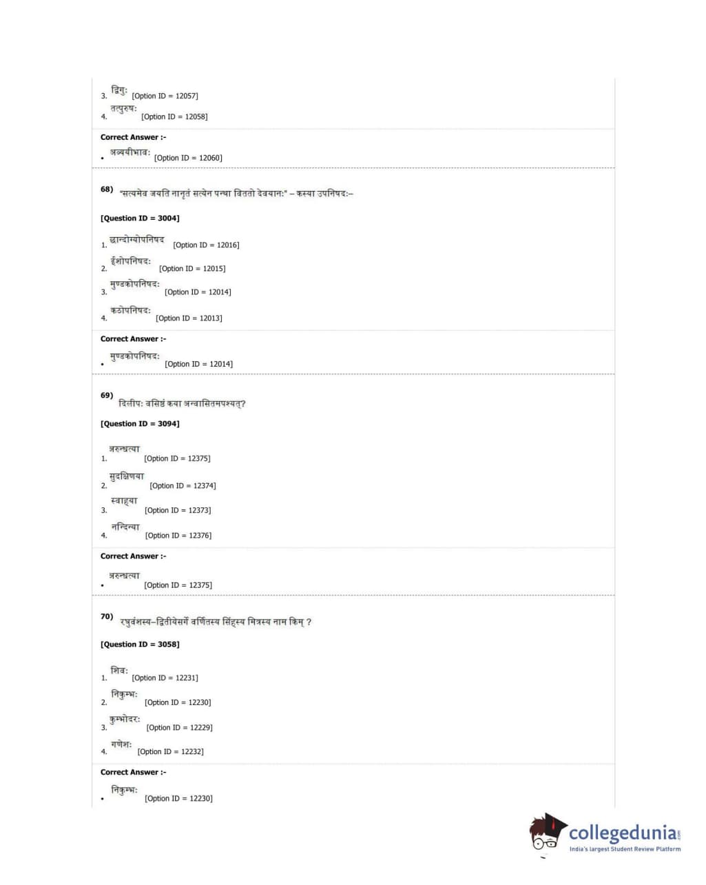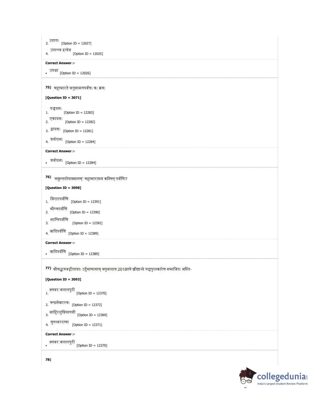 DUET 2018 M.A. Sanskrit Question Paper with Answer Key PDF Shift 2