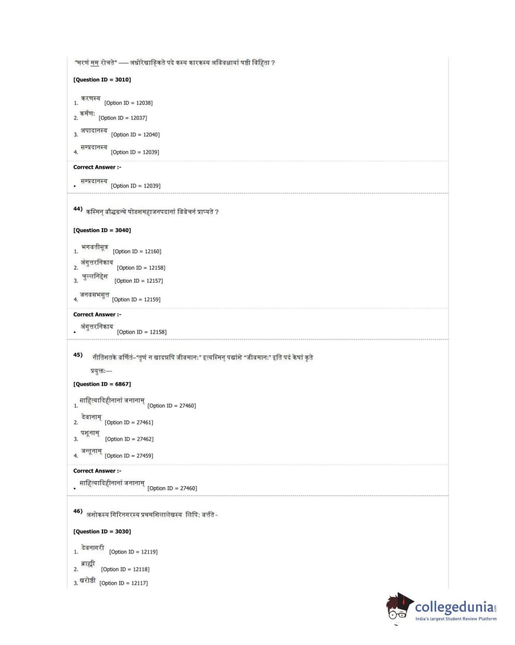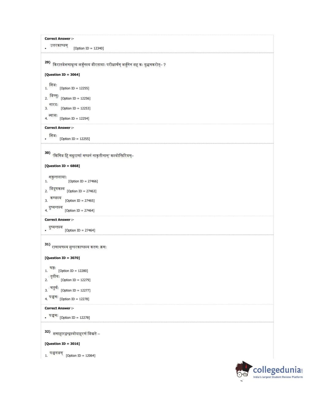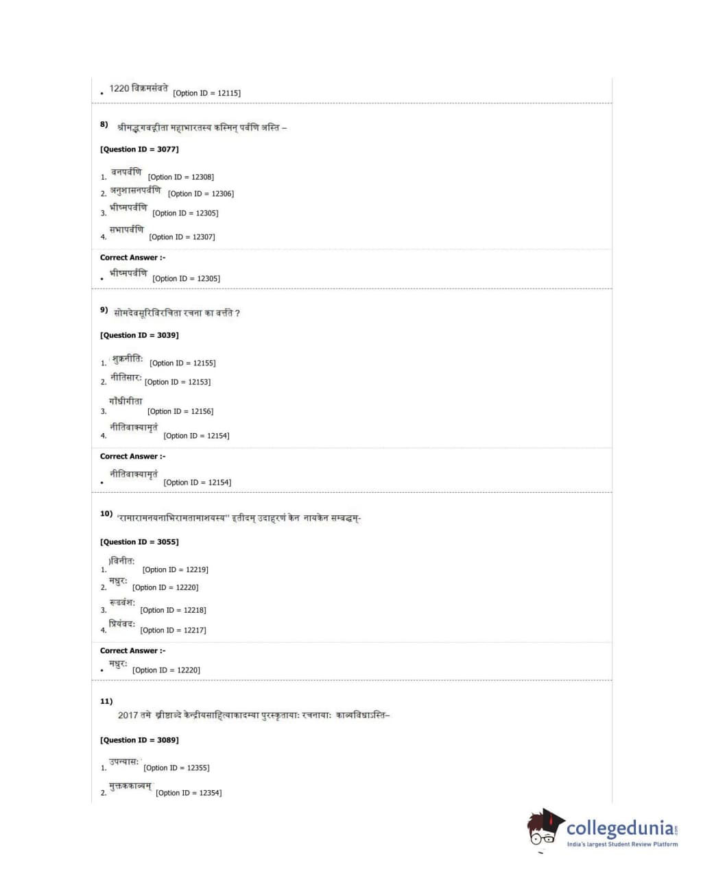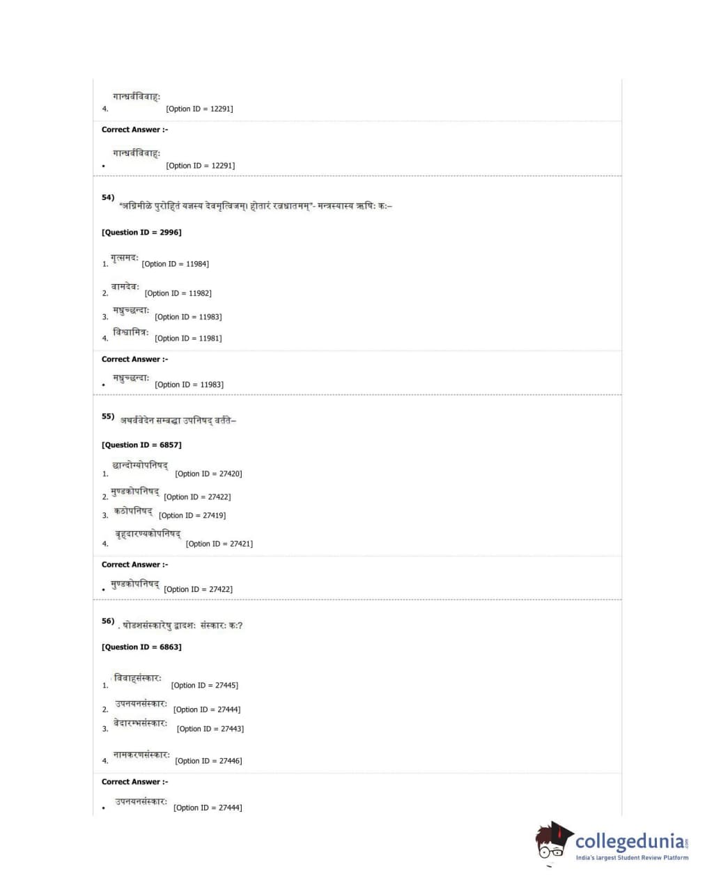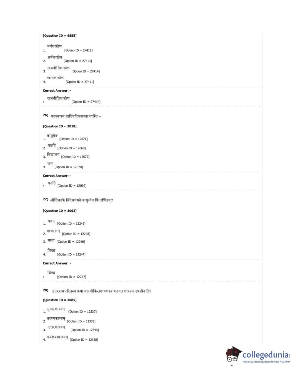 DUET 2018 M.A. Sanskrit Question Paper with Answer Key PDF Shift 2