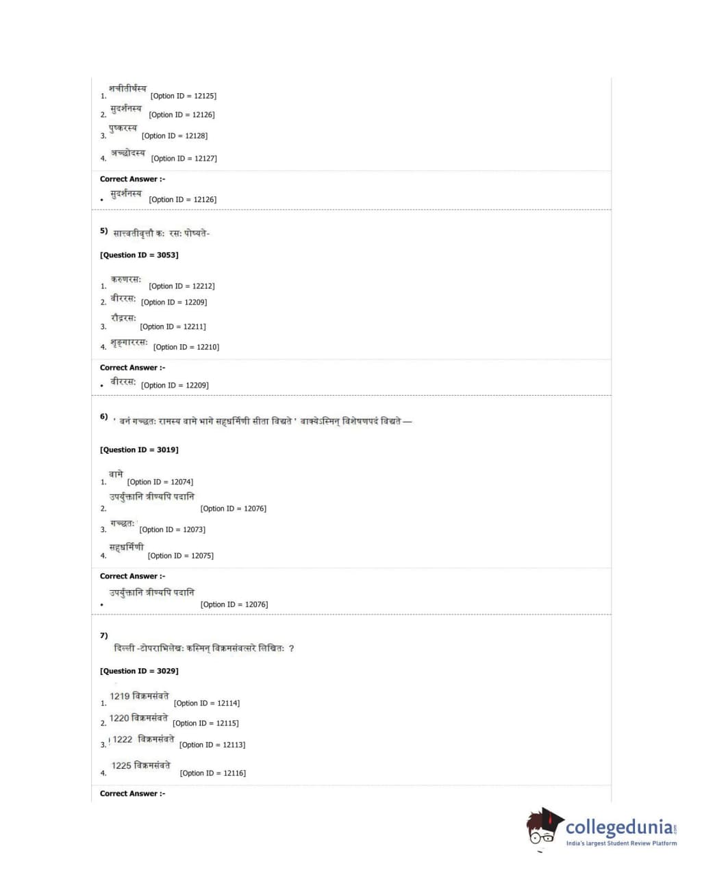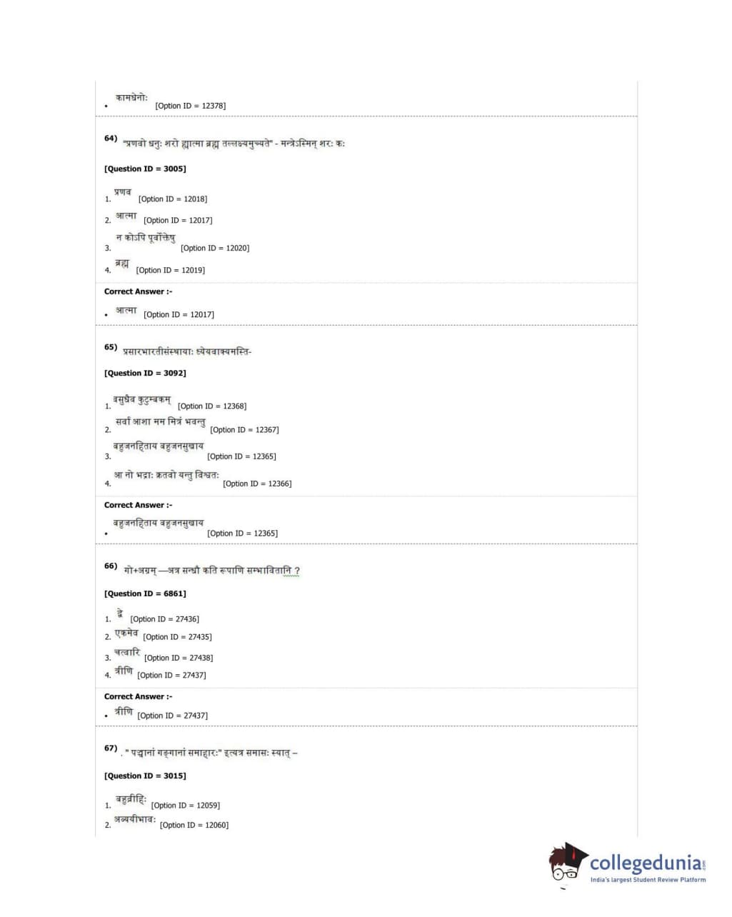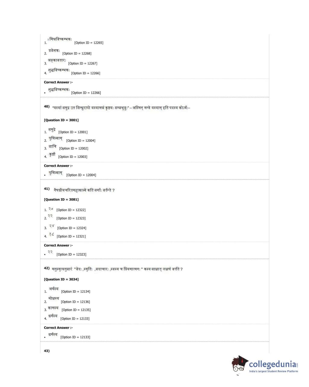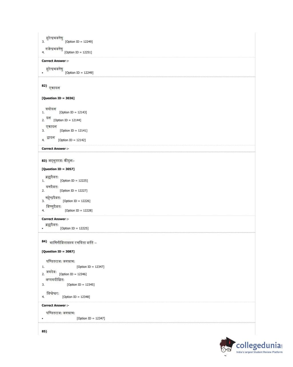 DUET 2018 M.A. Sanskrit Question Paper with Answer Key PDF Shift 2