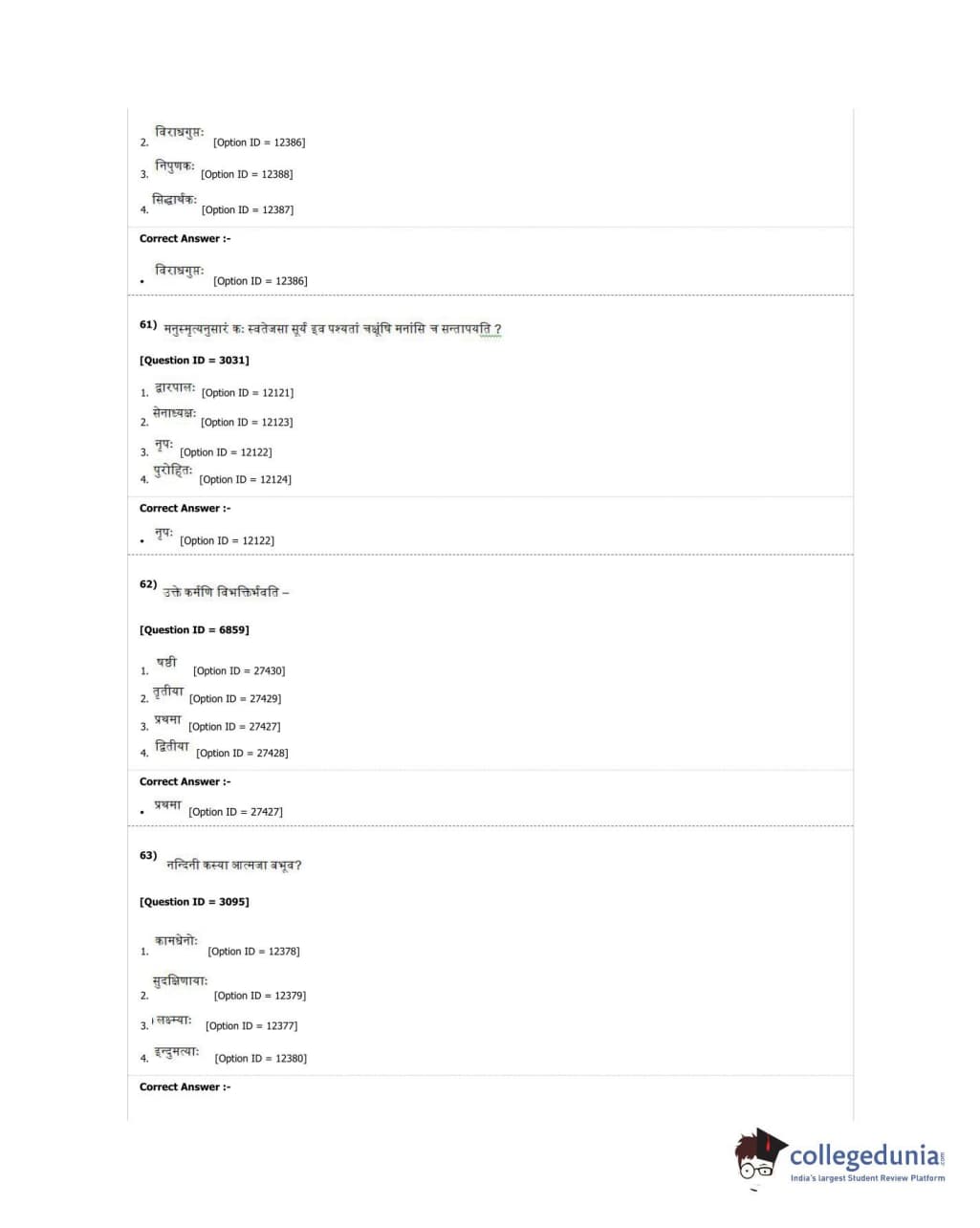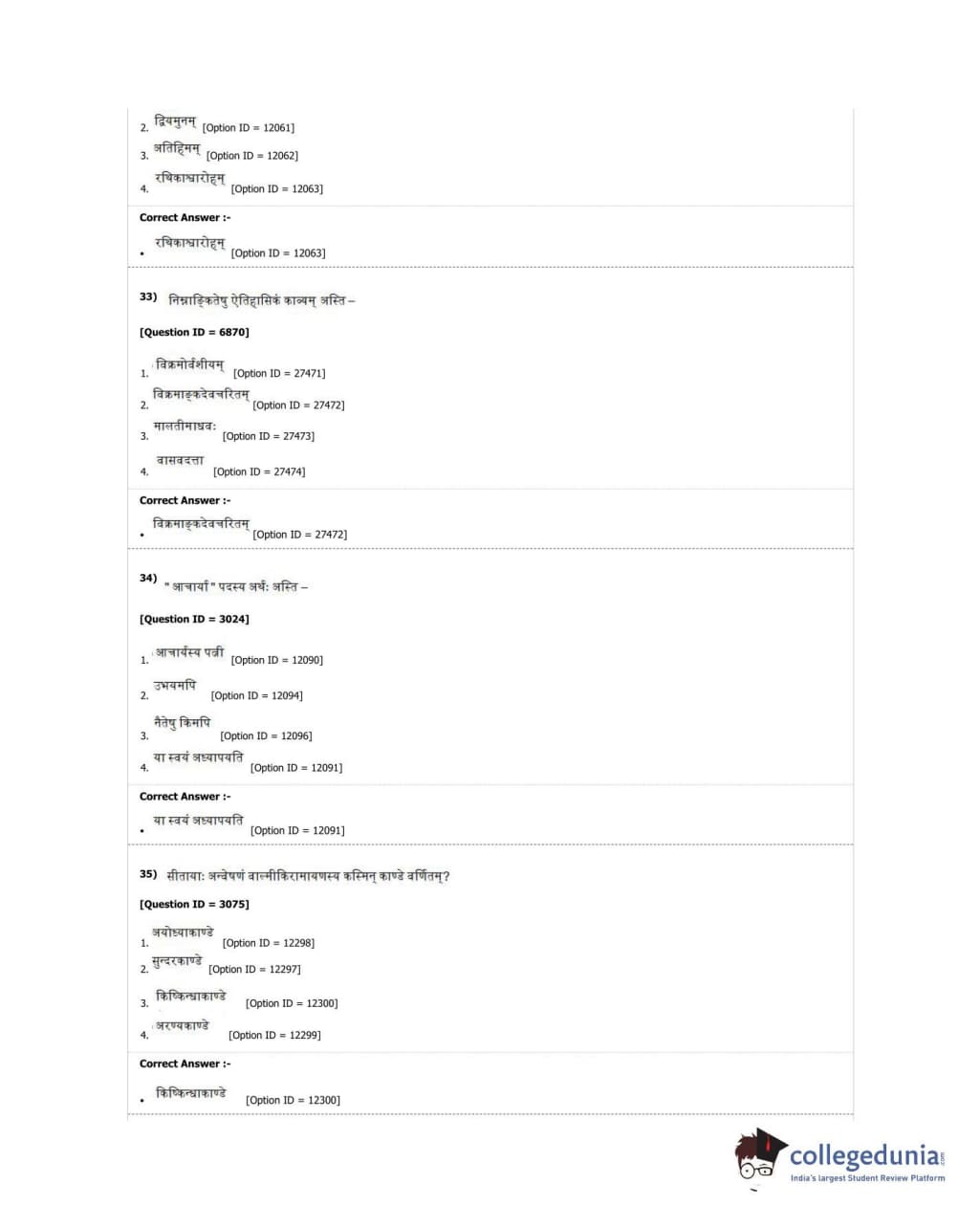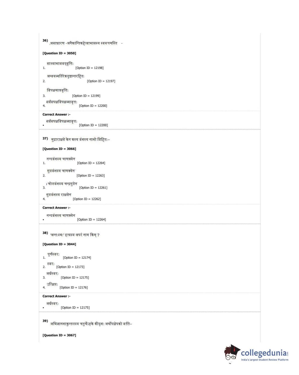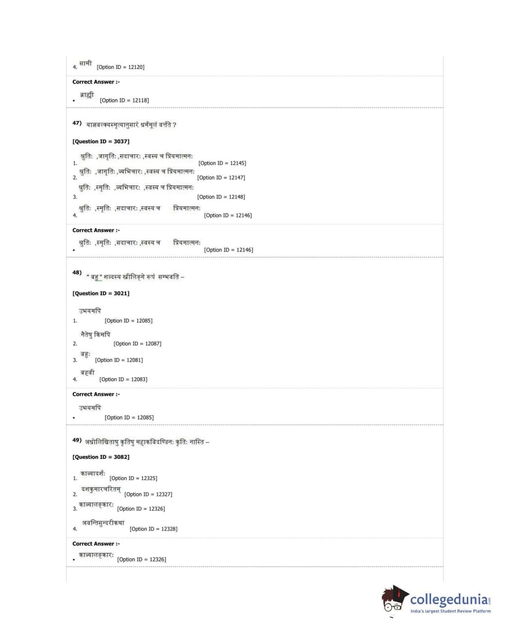 DUET 2018 M.A. Sanskrit Question Paper with Answer Key PDF Shift 2