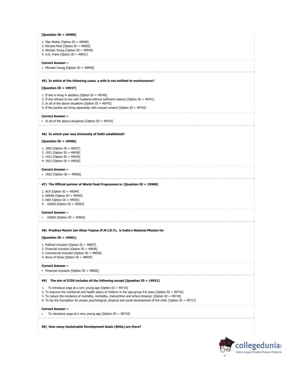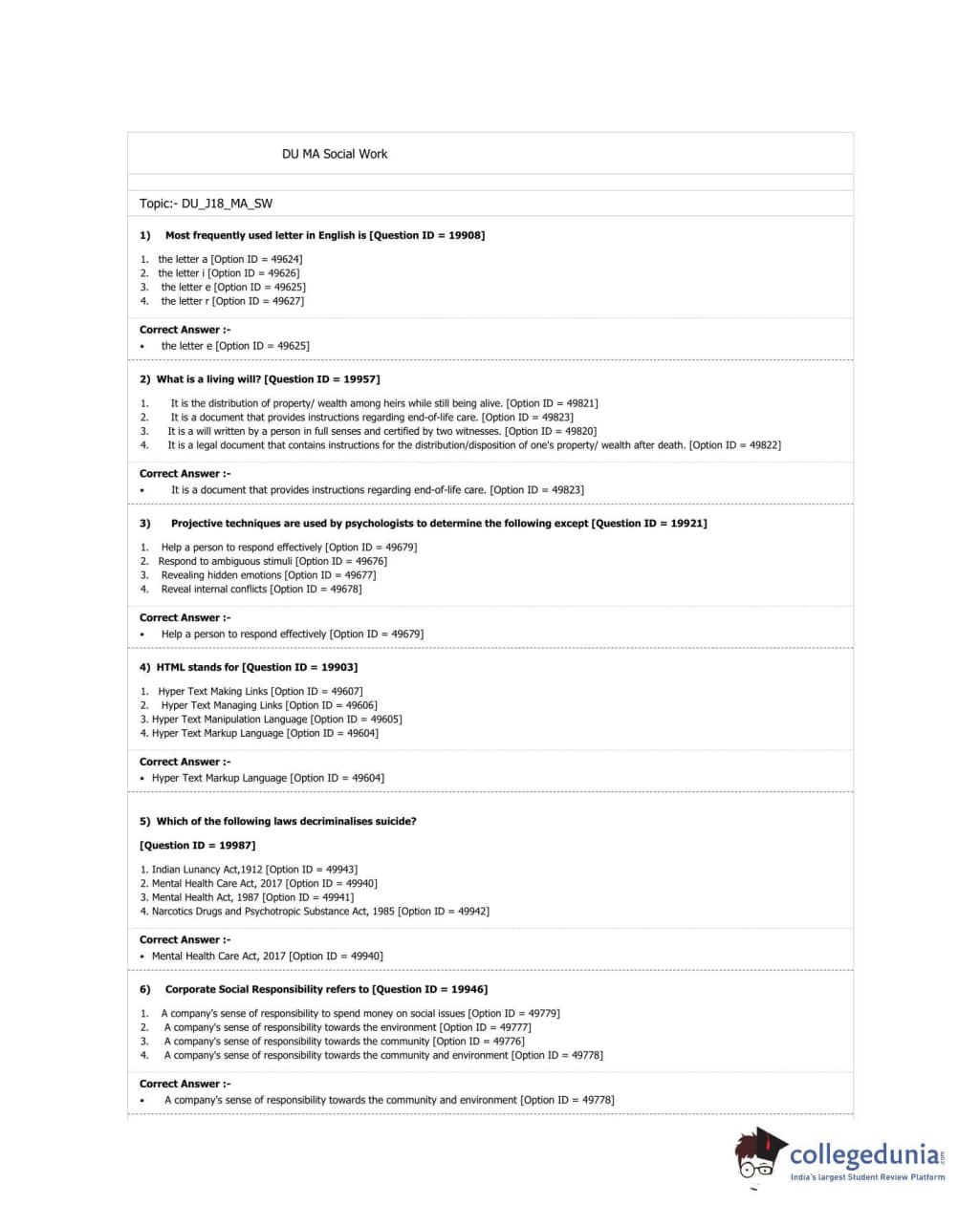 DUET 2018 M.A. Social Work Question paper with answer key pdf conducted on June 21, 2018 in Shift 1 is available for download. The exam was successfully organized by University of Delhi. The question paper comprised a total of 100 questions.