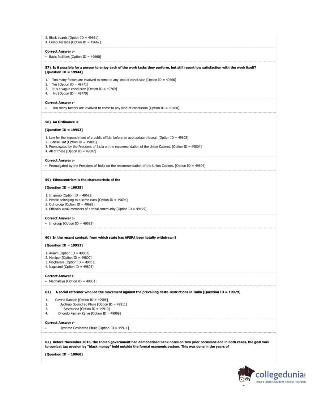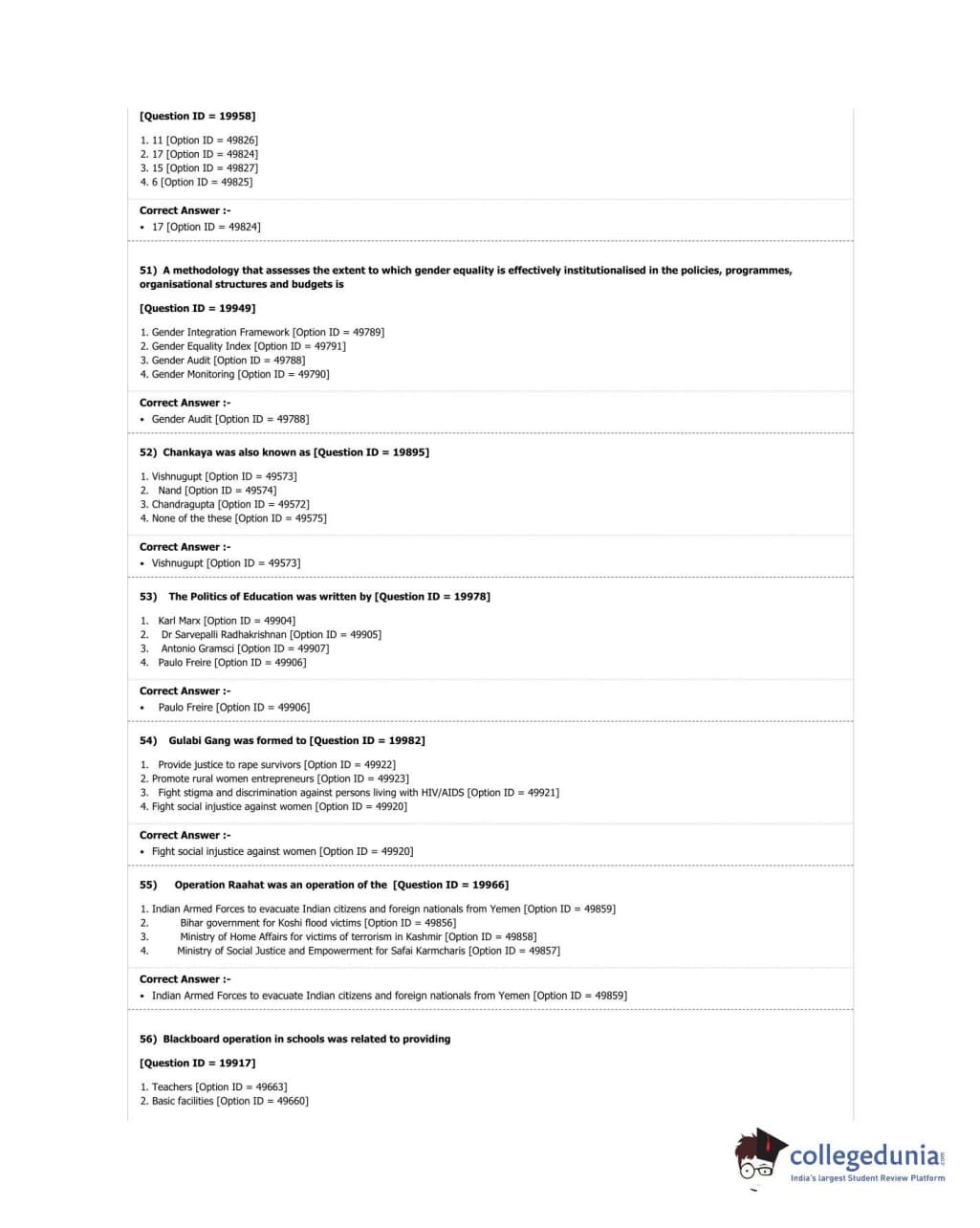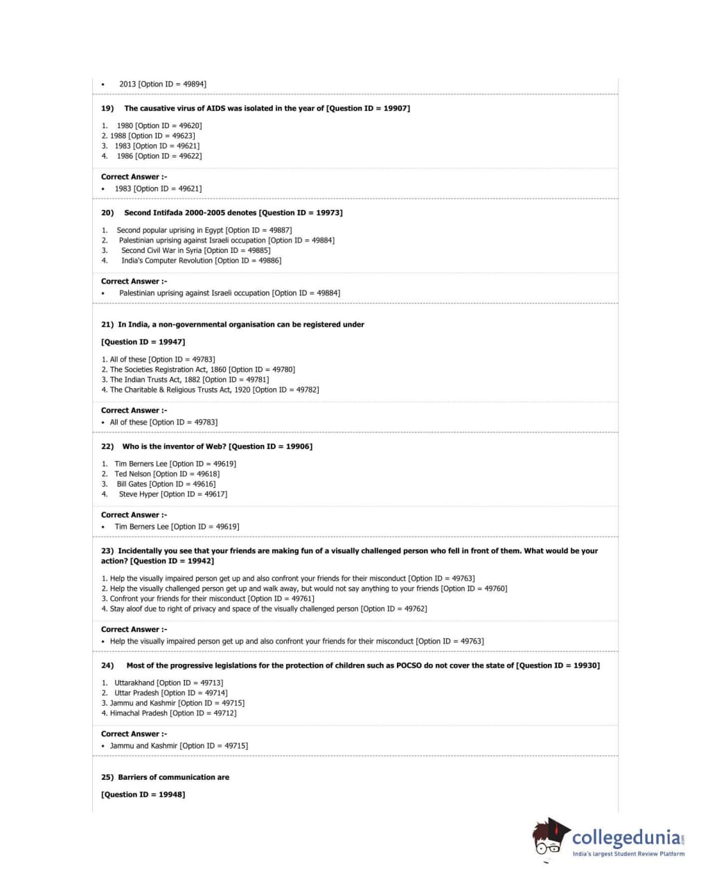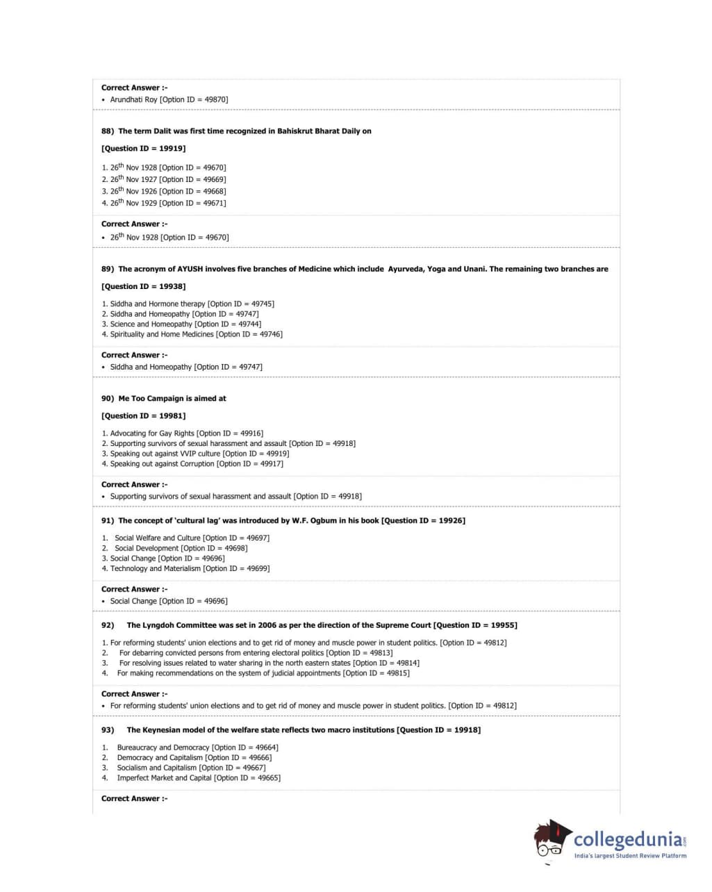DUET 2018 M.A. Social Work Question Paper with Answer Key PDF Shift 1
