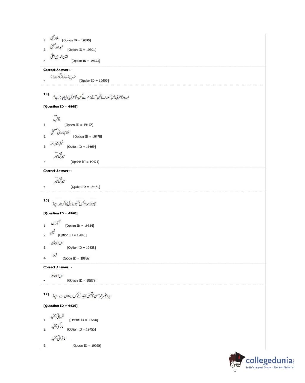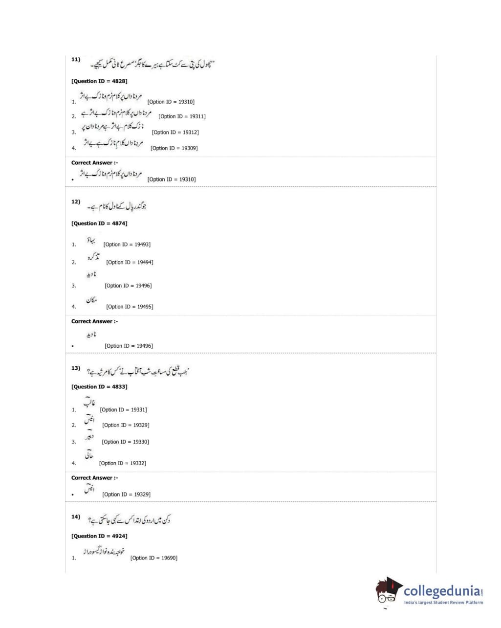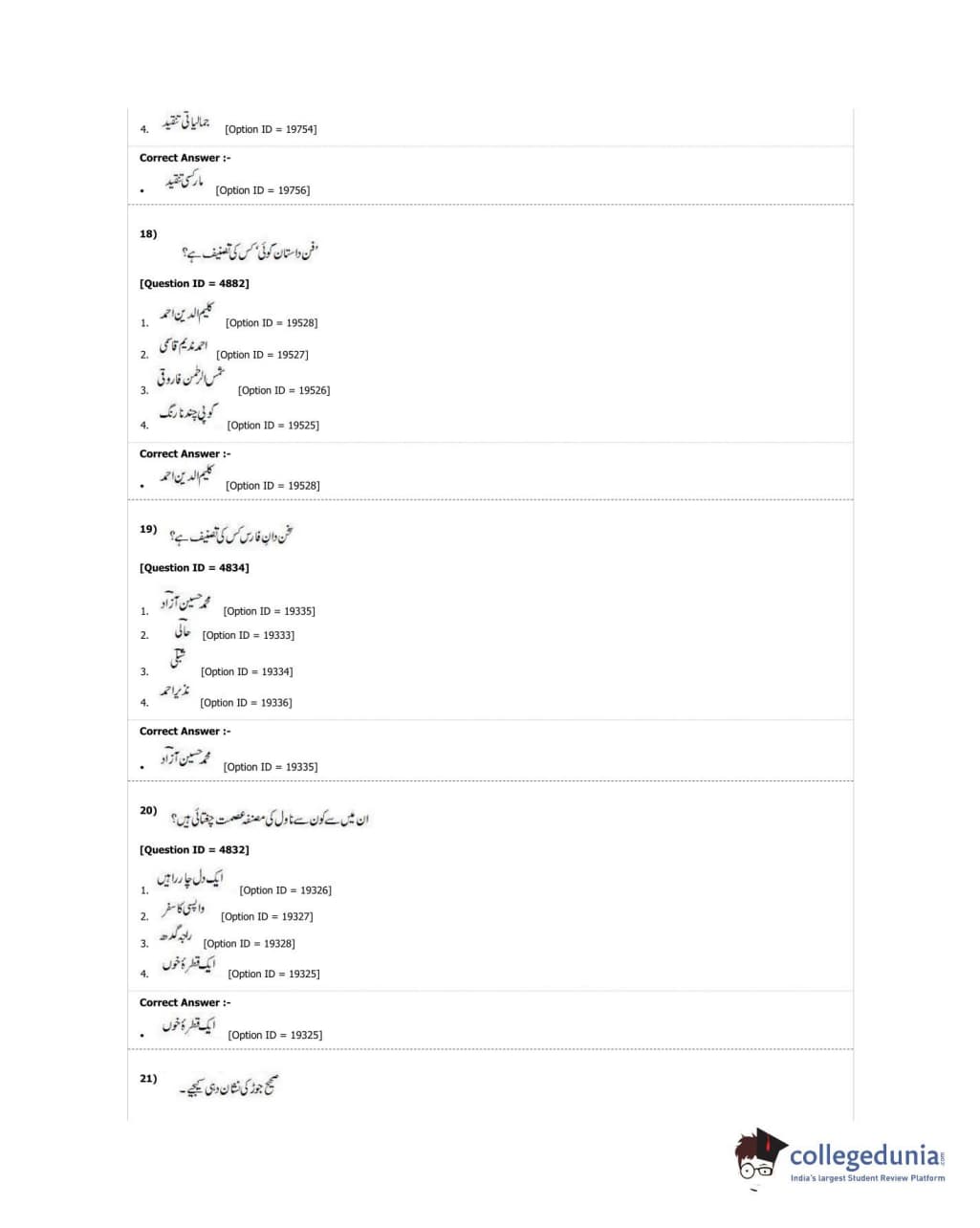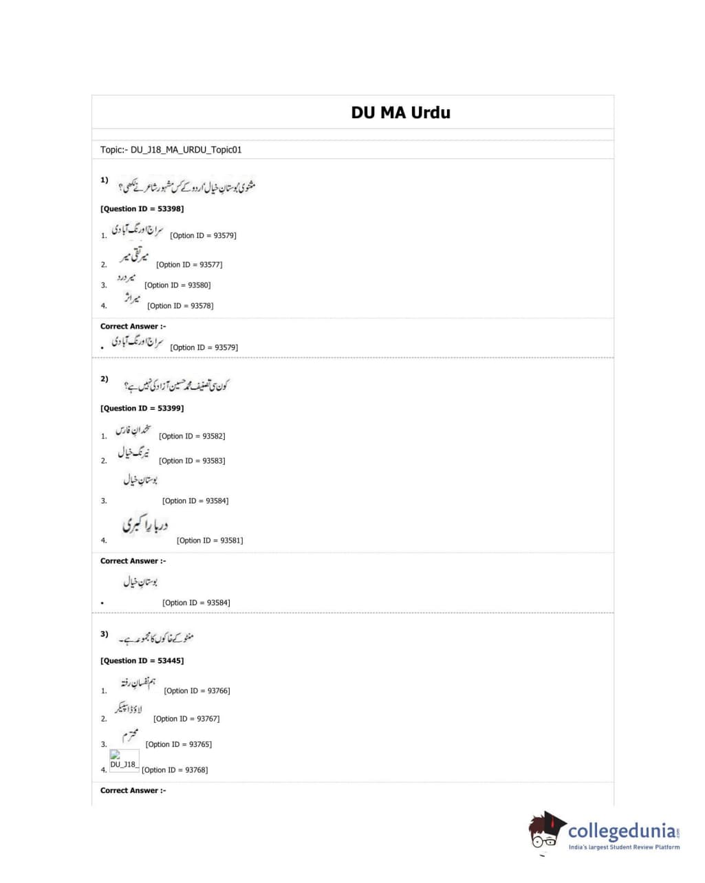 DUET 2018 M.A. Urdu Question Paper with Answer Key PDF Shift 3
