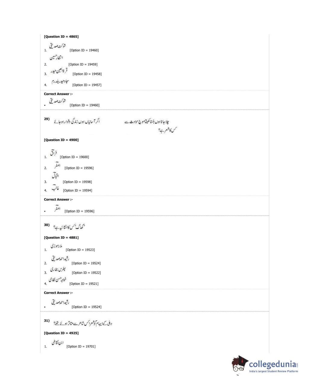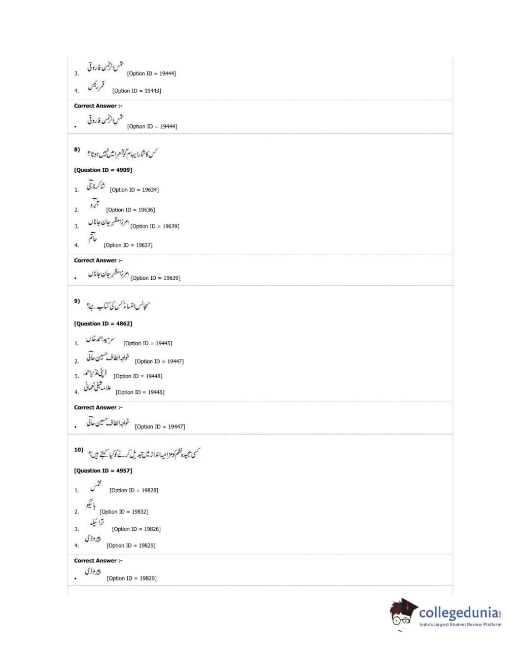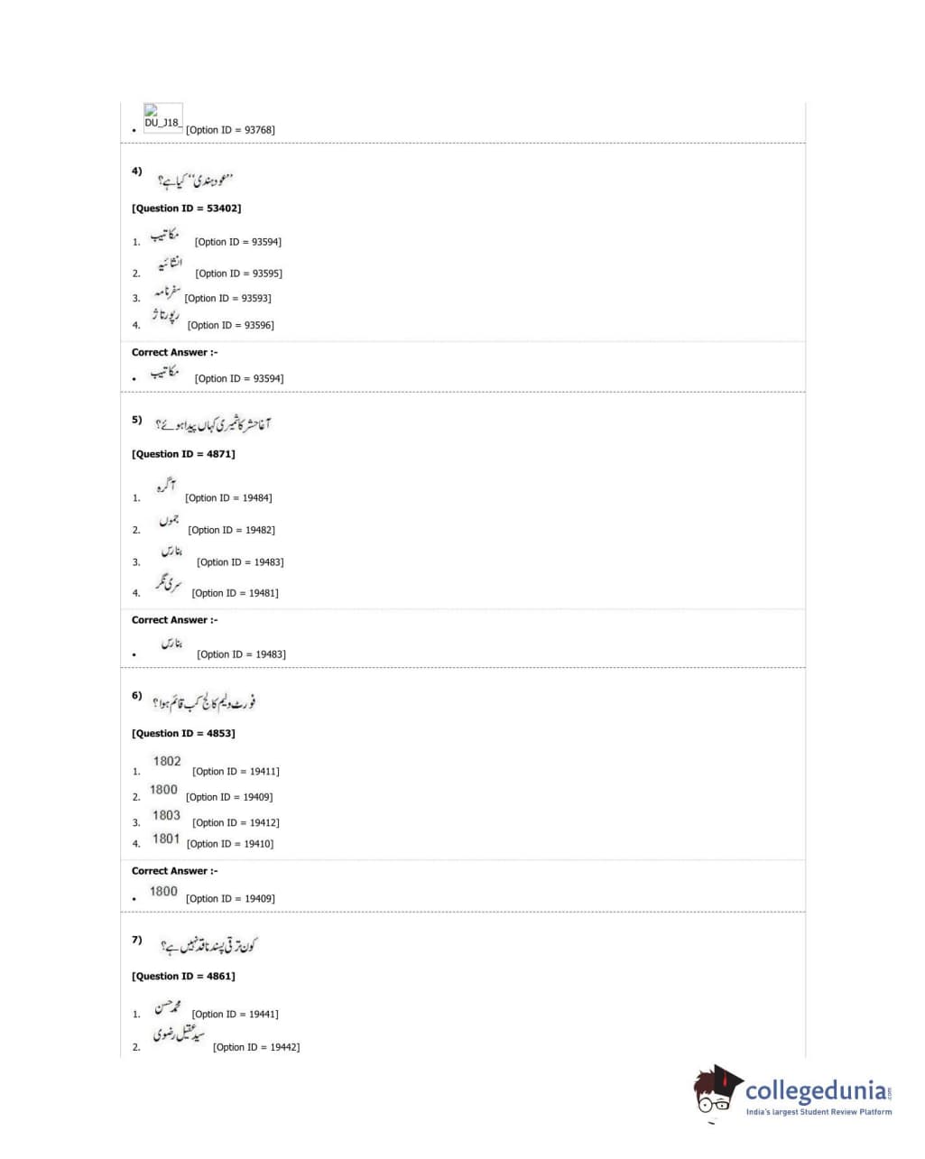 DUET 2018 M.A. Urdu Question Paper with Answer Key PDF Shift 3