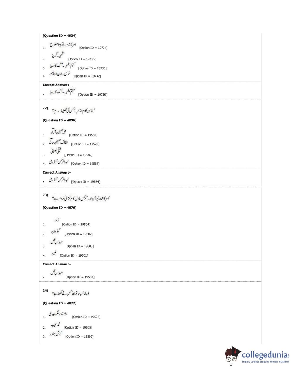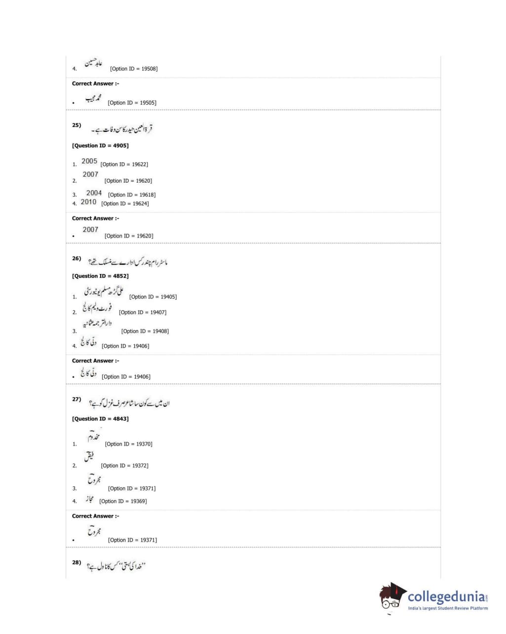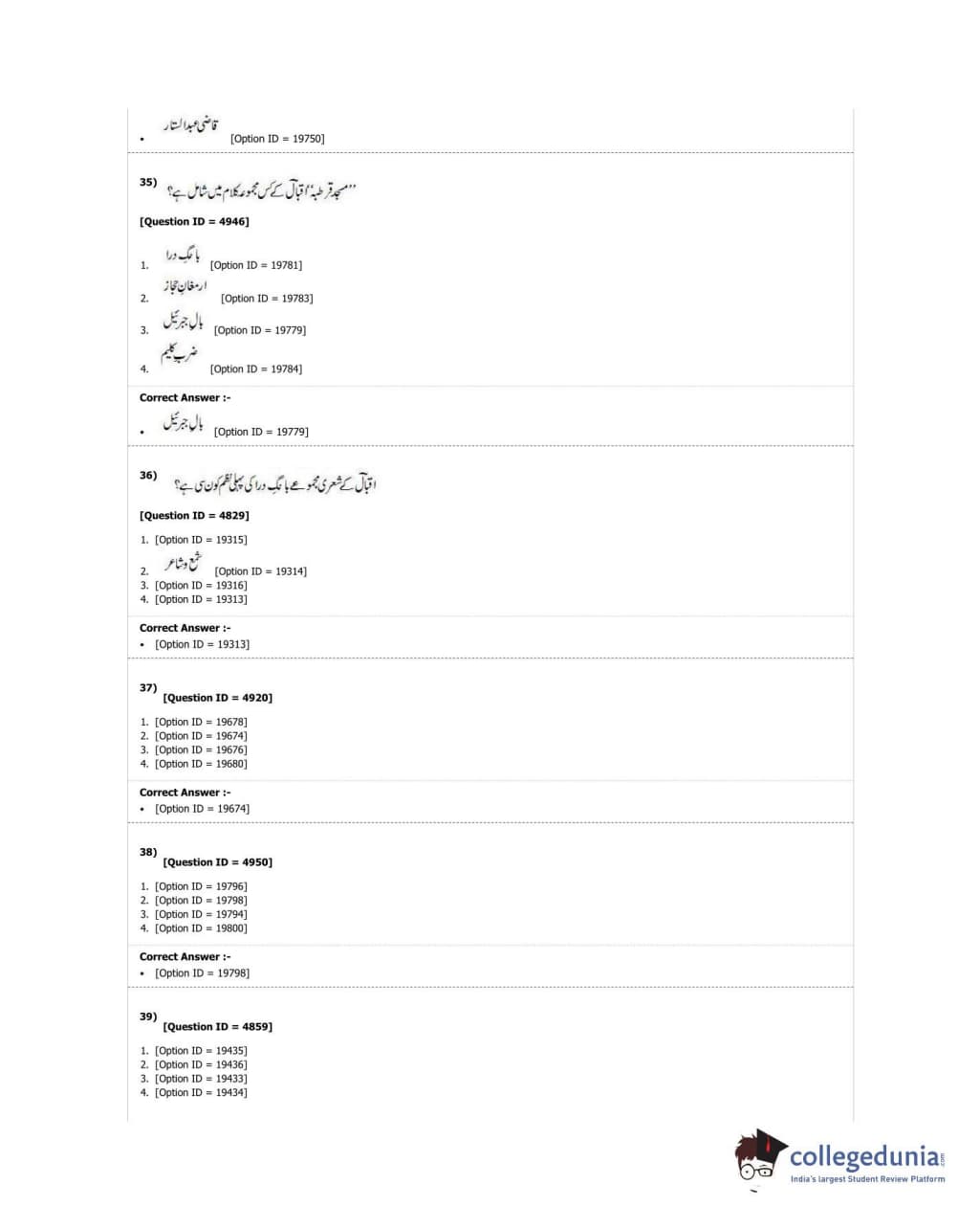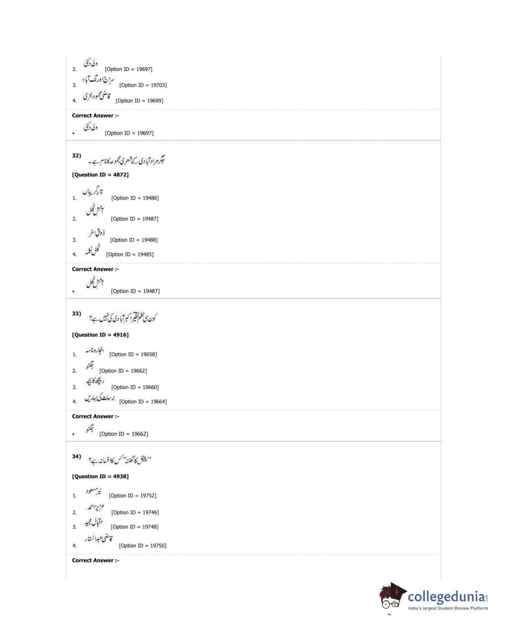 DUET 2018 M.A. Urdu Question Paper with Answer Key PDF Shift 3