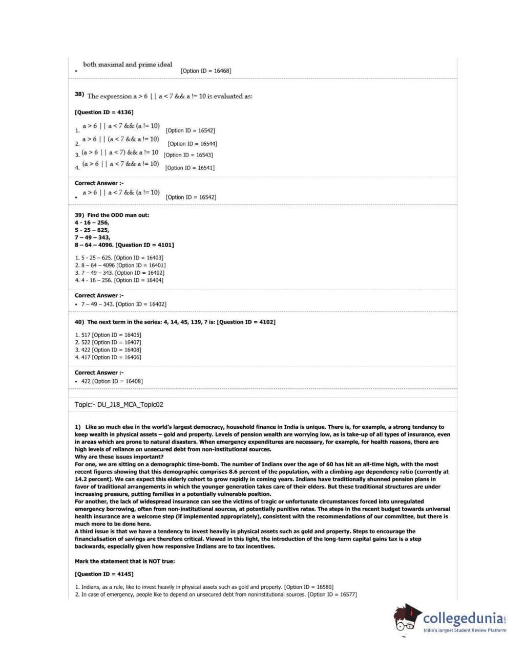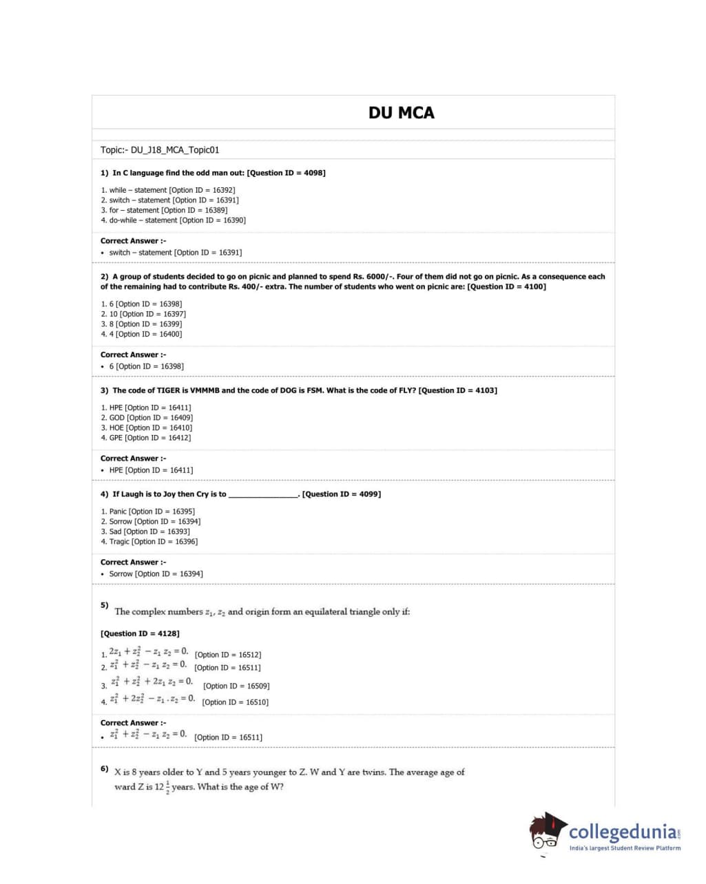 DUET 2018 M.C.A. Question paper with answer key pdf conducted on June 17, 2018 in Shift 3 is available for download. The exam was successfully organized by University of Delhi. The question paper comprised a total of 50 questions.