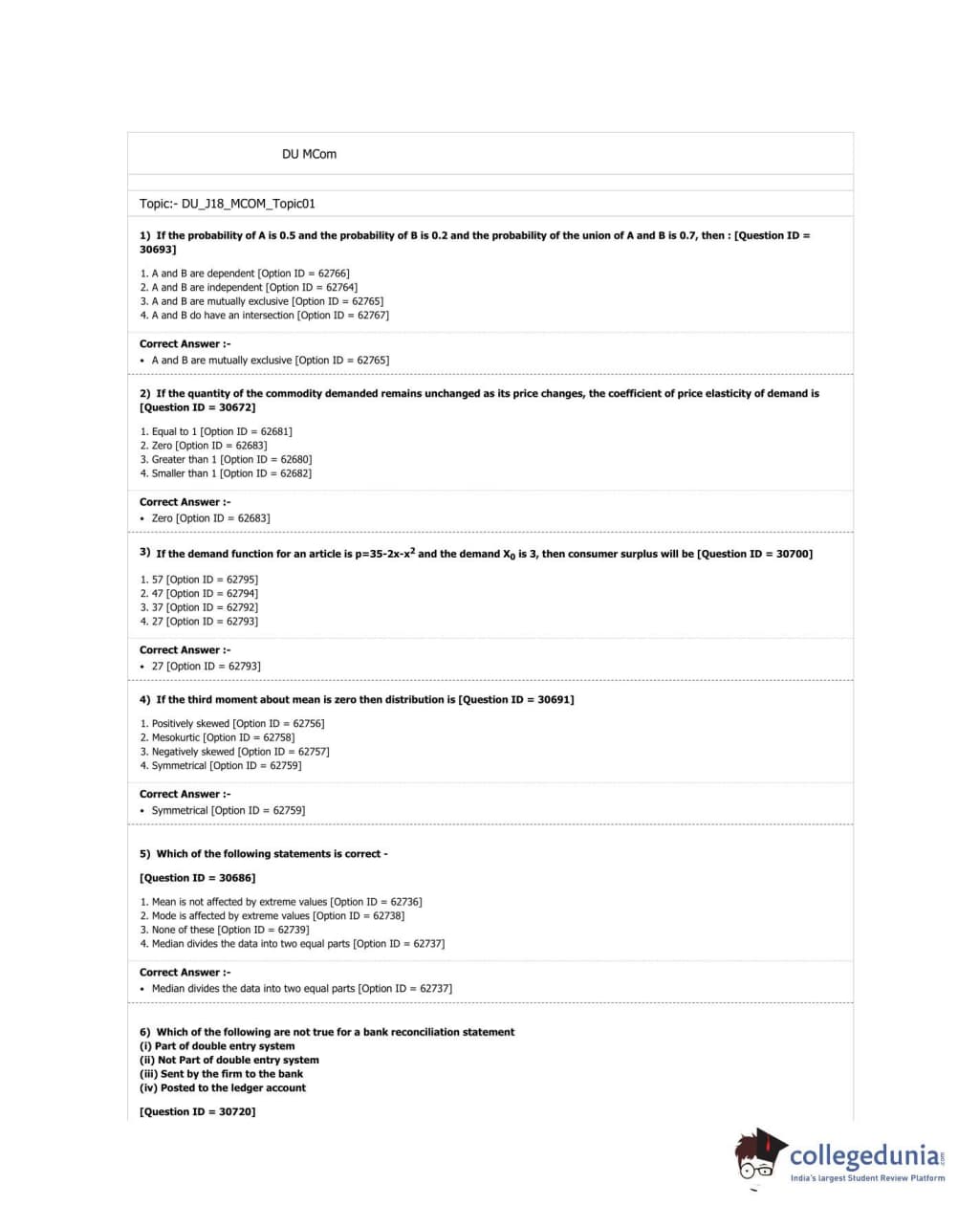 DUET 2018 M.Com. Question paper with answer key pdf conducted on June 20, 2018 in Shift 3 is available for download. The exam was successfully organized by University of Delhi. The question paper comprised a total of 100 questions.