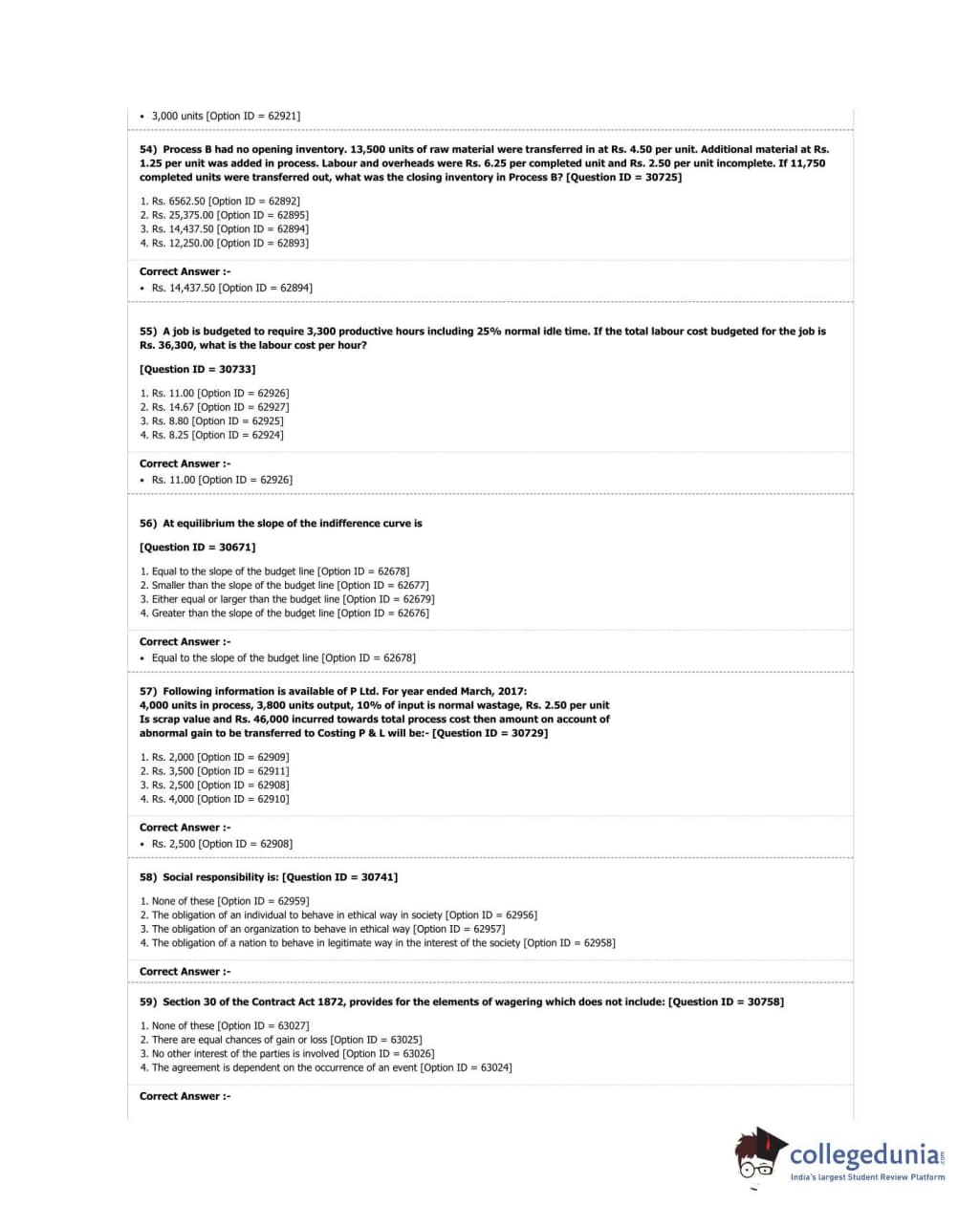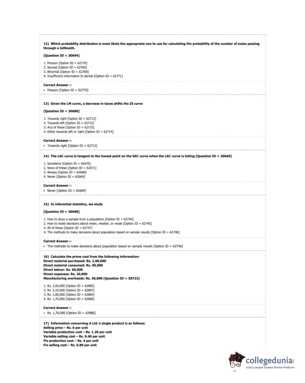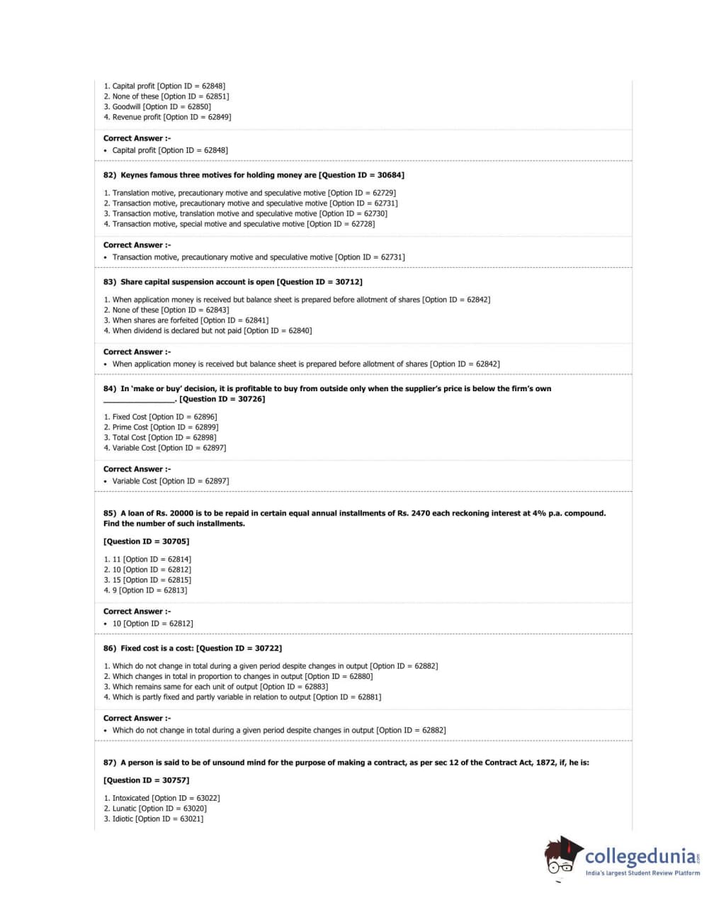DUET 2018 M.Com. Question Paper with Answer Key PDF Shift 3