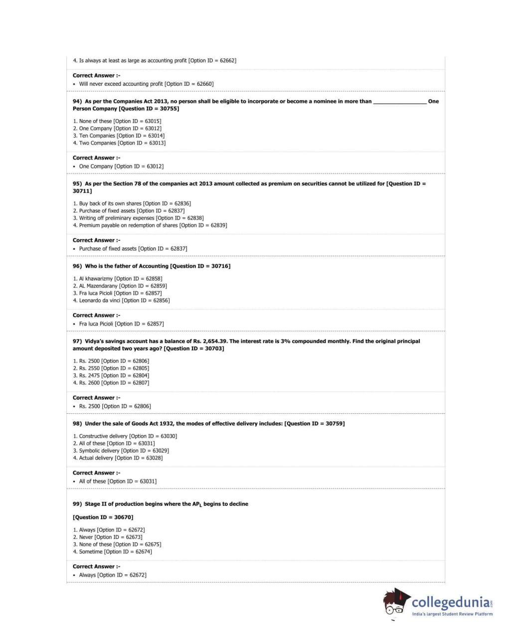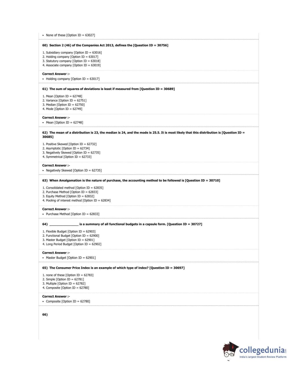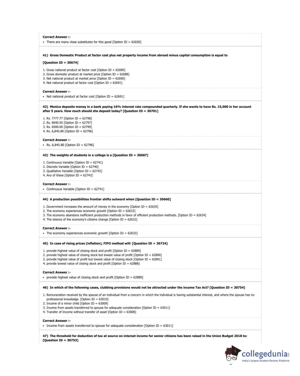 DUET 2018 M.Com. Question Paper with Answer Key PDF Shift 3