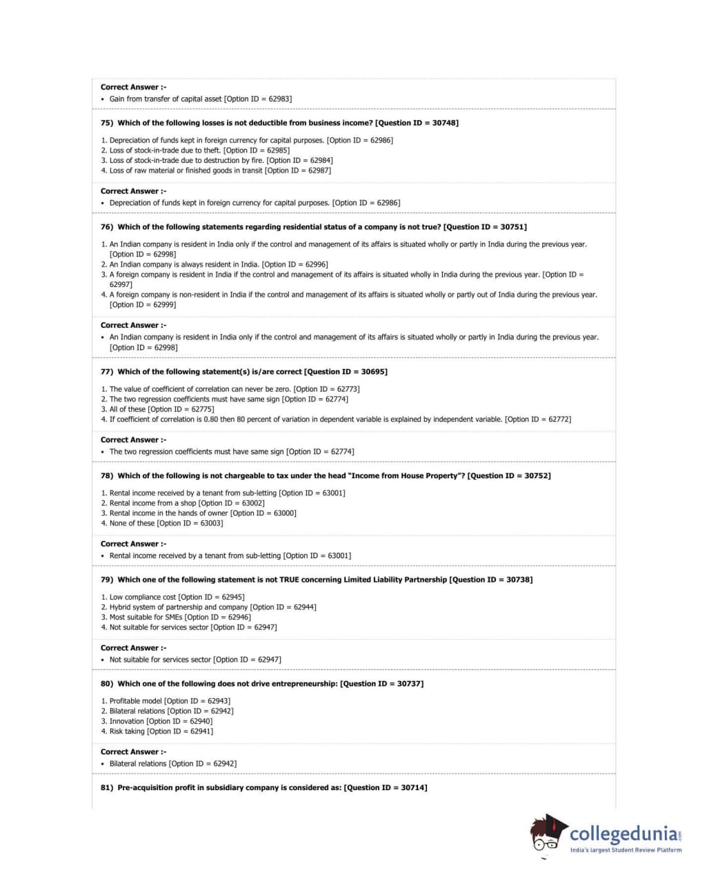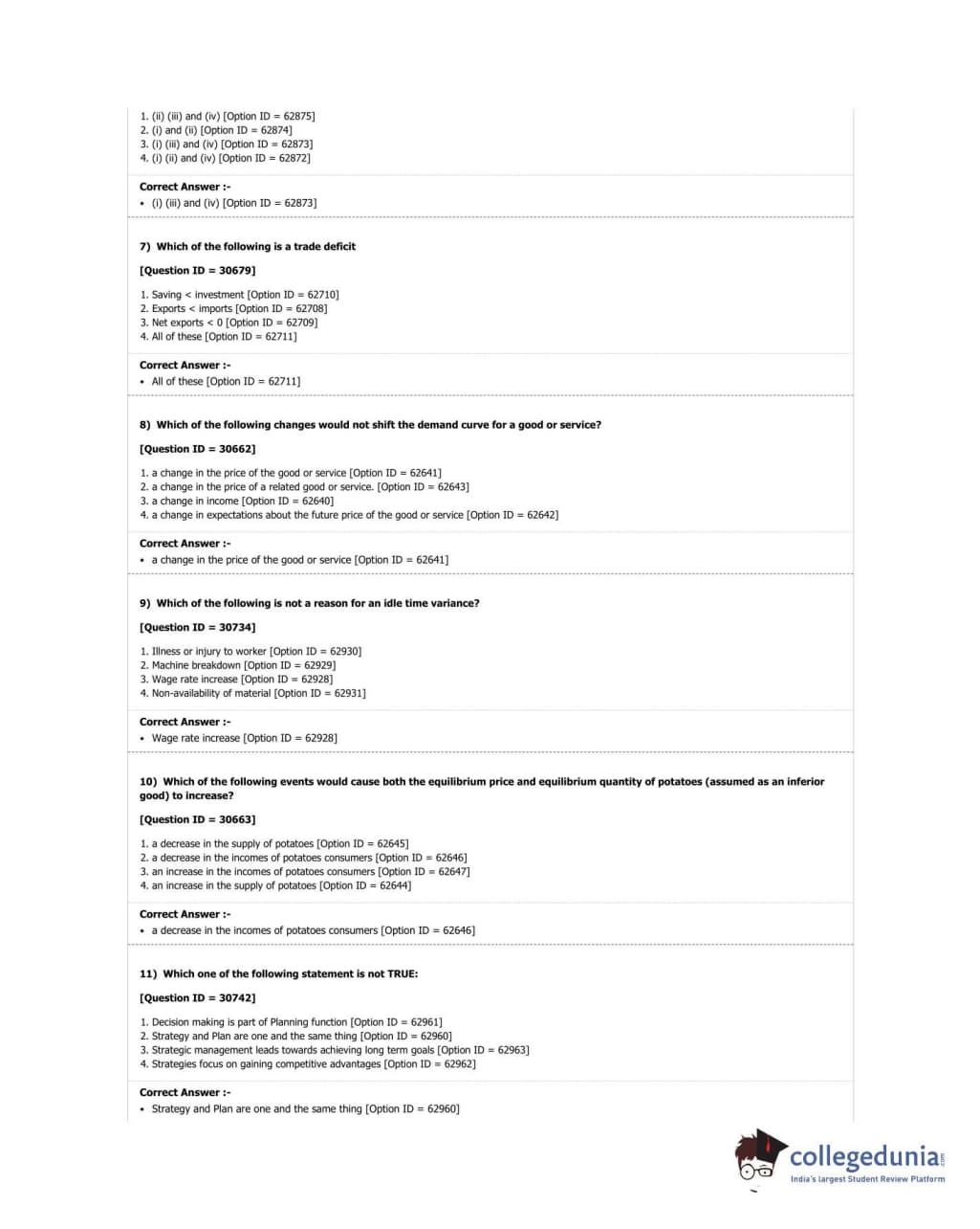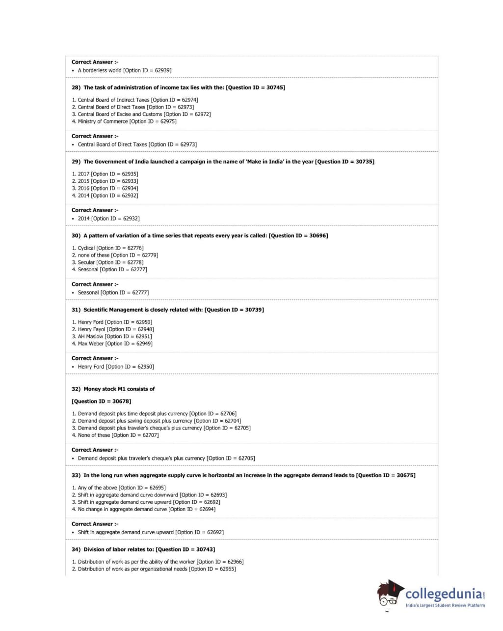 | DUET Subject | Question Paper with Answer Key PDF |