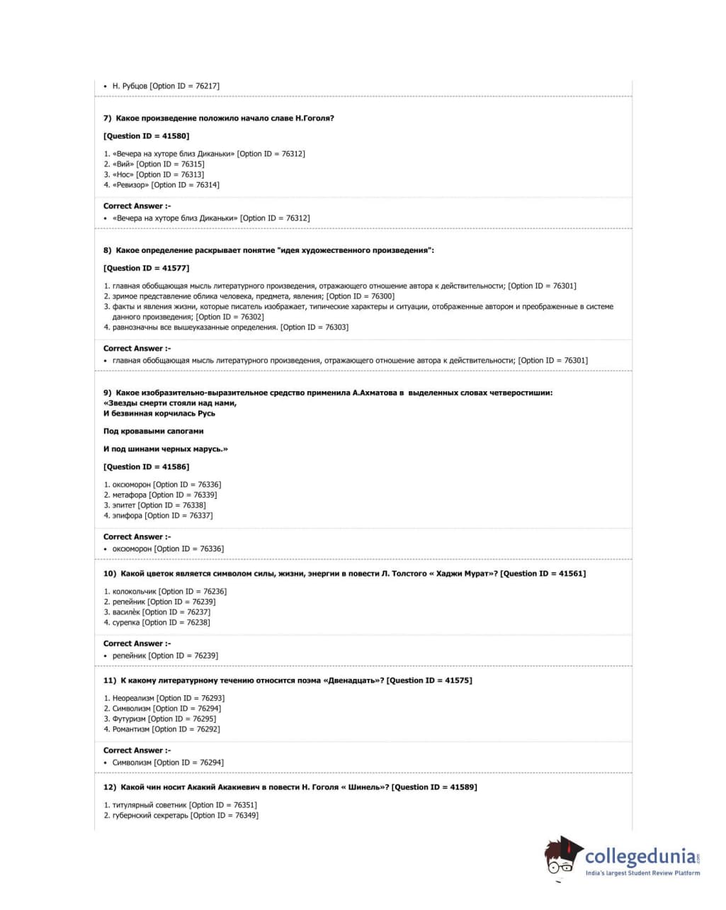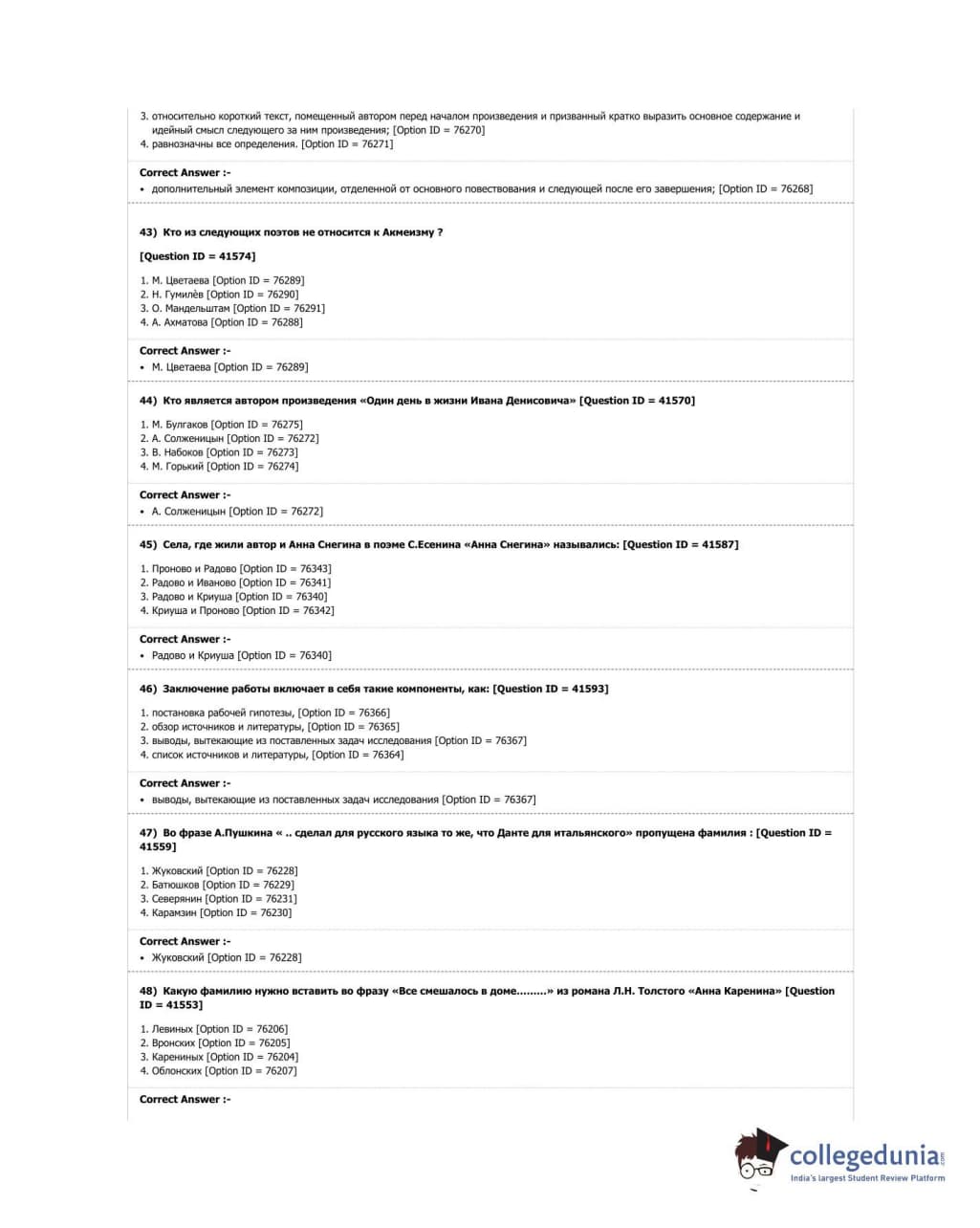 DUET 2018 M.Phil. in Russian Studies Question Paper with Answer Key PDF Shift 1