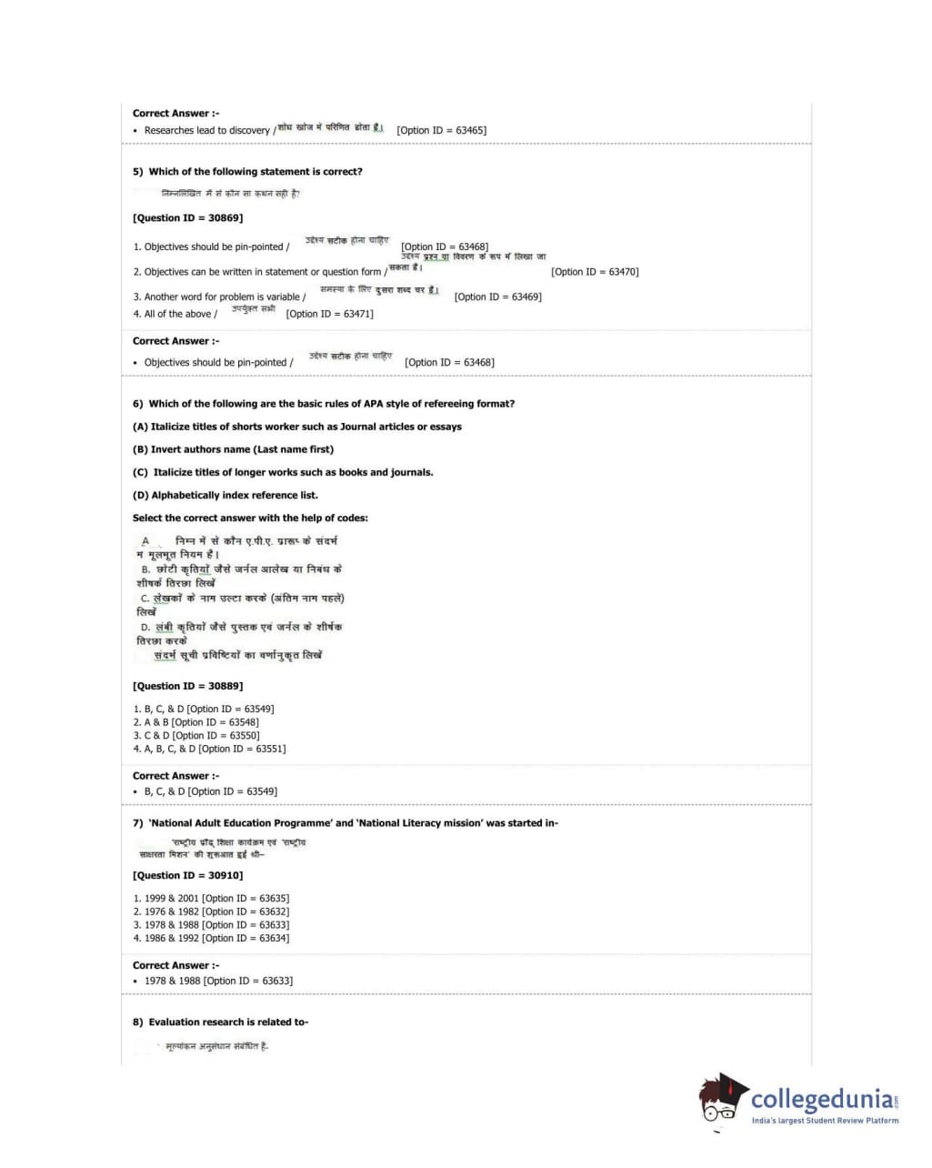 DUET 2018 M.Phil./Ph.D. in Adult Continuing Education & Extension Question Paper with Answer Key PDF Shift 3