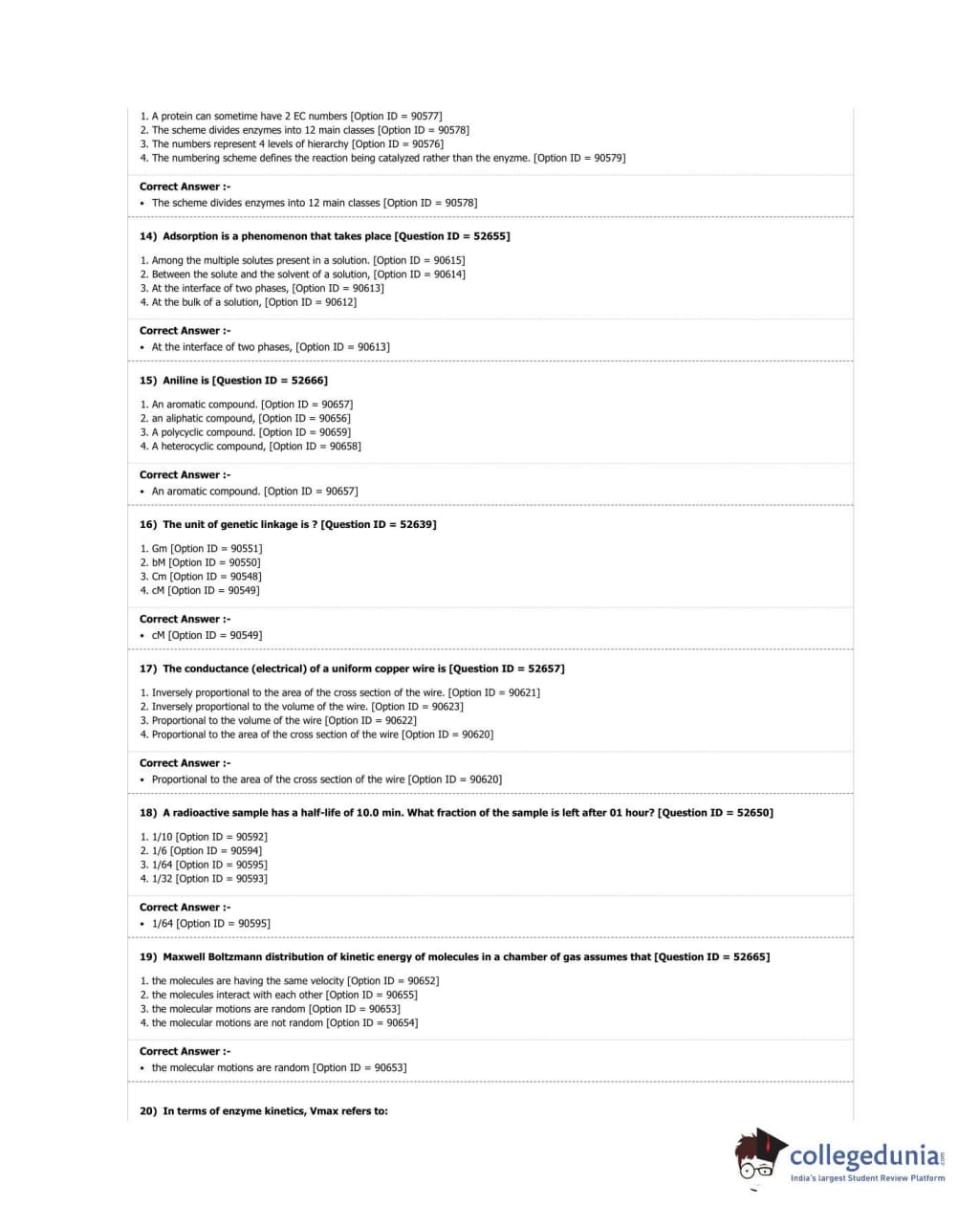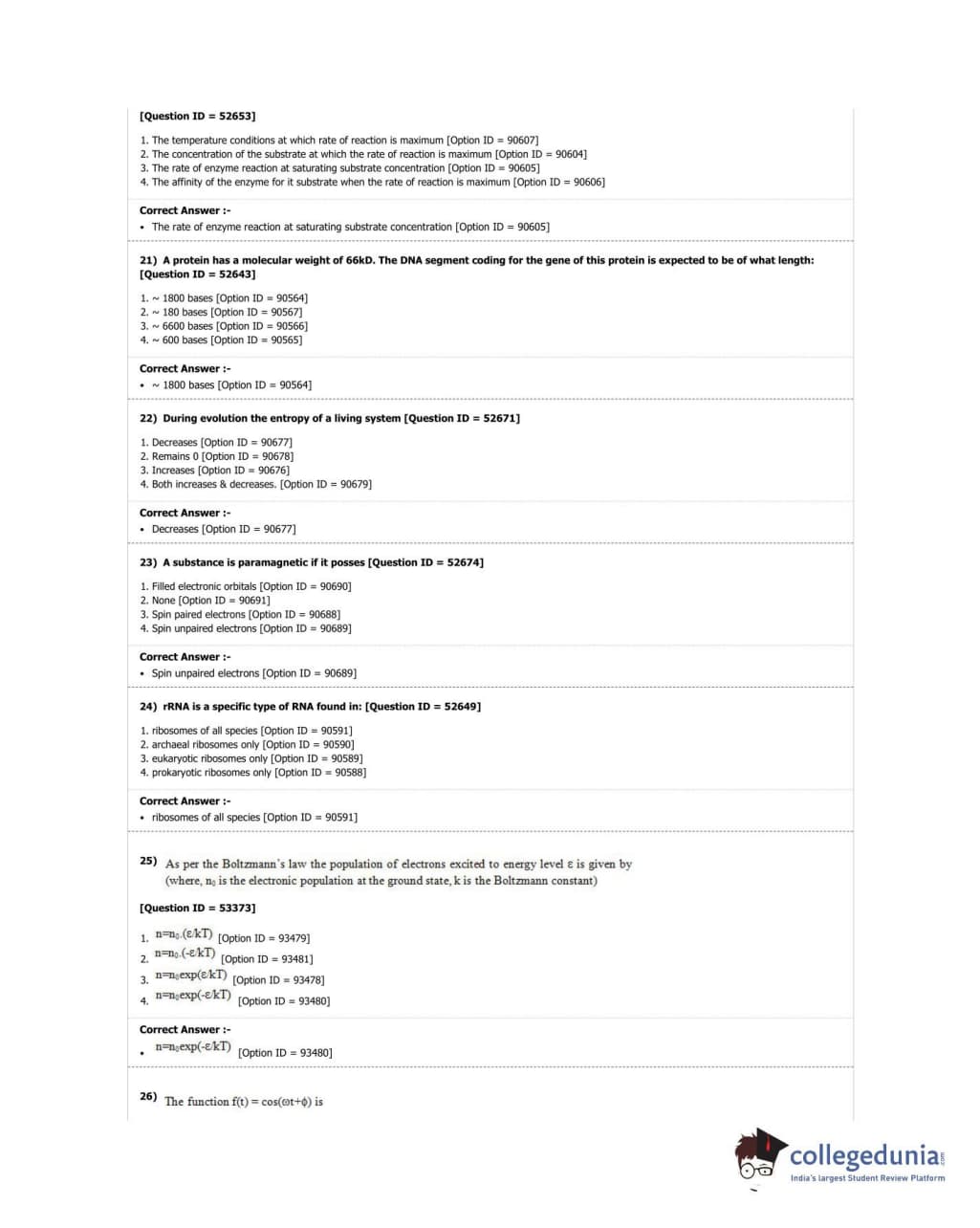 DUET 2018 M.Phil./Ph.D. in Bio-Physics Question Paper with Answer Key PDF Shift 1